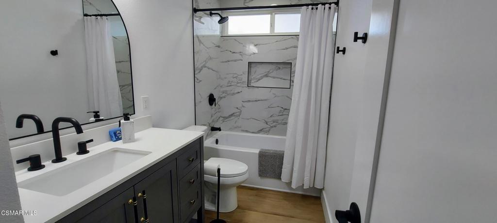 **FULLY FURNISHED Short or Long-Term Rental** Pretty as a Picture! Our 4 bedroom 2 bath single level home has just completed an extensive remodel and is ready for you to enjoy! The main living area consists of a large living and dining room combo and features lots of natural light and a 75'' Smart TV. We feature high ceilings, air conditioning and high-speed wifi. There are 4 bedrooms, 3 with desks and a large master bedroom with newly remodeled en suite bathroom and huge walk-in closet. The center island kitchen has both a breakfast bar and it's own dining set. It has plenty of storage and is fully stocked for your culinary endeavors. The large covered patio has plenty of space to enjoy the afternoon with 2 rocking chairs, a dining set and BBQ. Complete the picture with a quiet cul-de-sac location right in the heart of Simi Valley near parks, shopping, schools and more.