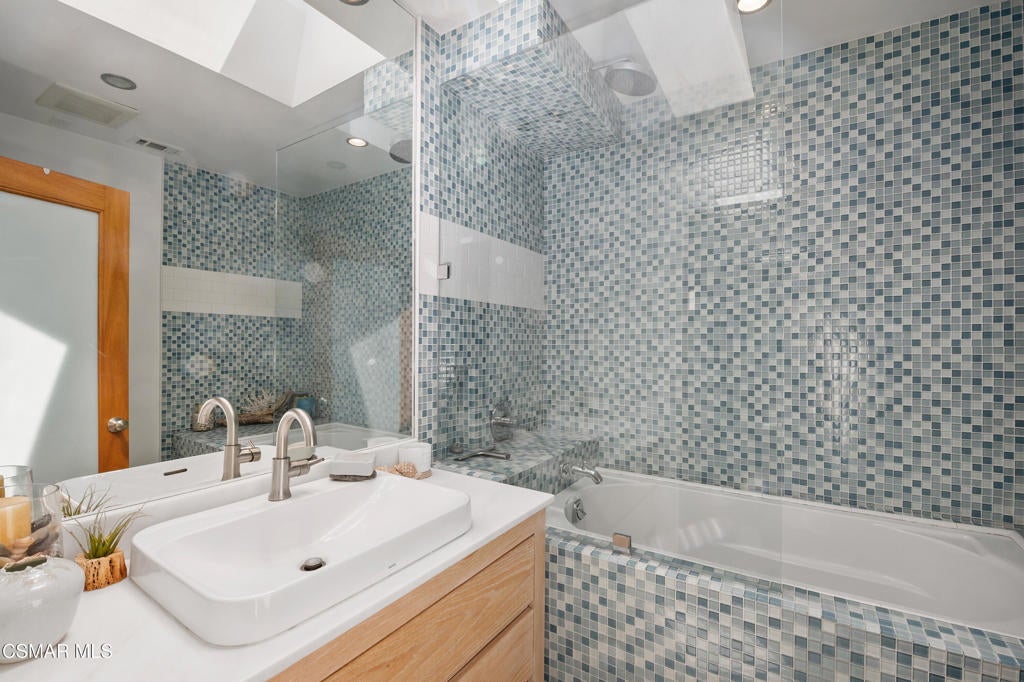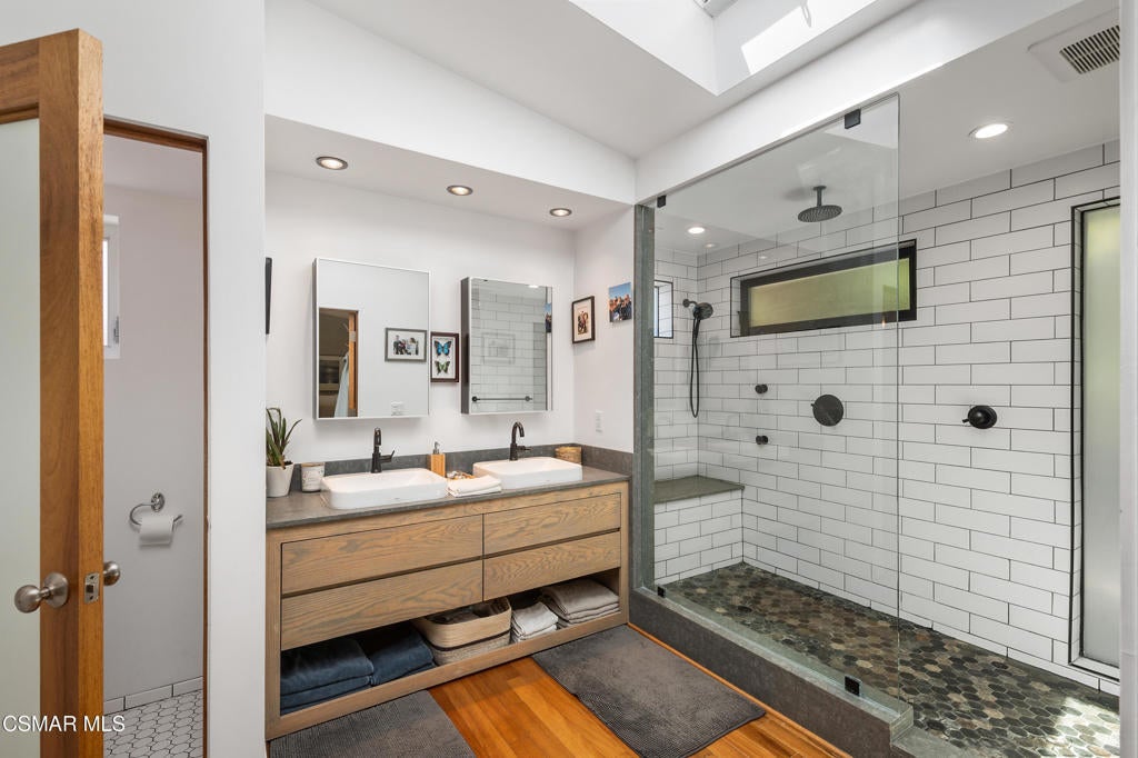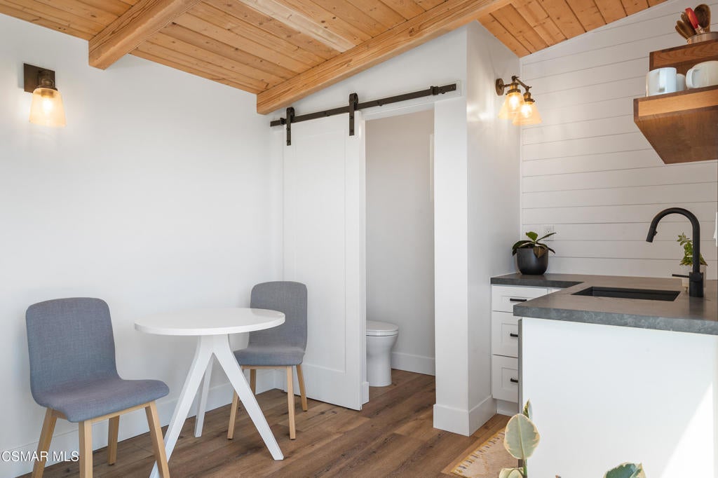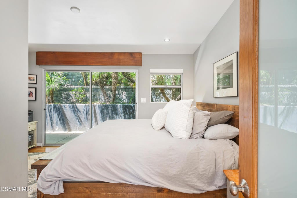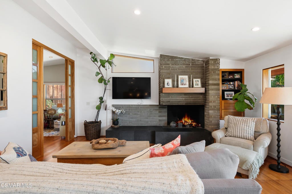 This modern California bungalow is set on the Ventura hillside providing cool ocean breezes and breathtaking views of the Pacific Ocean & Santa Cruz Island. Located at the end of a cul-de-sac you'll enjoy privacy and minimal traffic, but you are just minutes away from Ventura's happening Main Street and gorgeous beaches. The bright and open layout encompasses 3 bedrooms and 2 bathrooms - plus there is a detached guest studio with kitchenette, half bath, and outdoor shower. An owned solar system keeps electricity bills very low and there is EV charging. The gorgeous kitchen features newer stainless-steel appliances, honed black granite counters, wine fridge, and a corner window that frames the captivating views. A seamless flow from indoor-outdoor living makes entertaining and day to day life pure joy. The firepit, built-in BBQ, and enchanting landscaping enhance the expansive front deck - a wonderful space to entertain or relax. Start your day in the primary suite which has been impeccably remodeled with walk-in shower w/ rain head, dual vanity, and a generously sized walk-in closet. A bright and tastefully updated hall bathroom services the secondary bedrooms. You will find a recently built guest studio on the top tier of the lot which enjoys 180 ocean views and has a kitchenette, half bath, and outdoor shower. Other notable features of this exceptional home include 2 outdoor showers, beautiful fireplace, 2-car finished garage with storage, tankless water heater, and so much more. The upgrades, awe inspiring view, and the unbeatable Ventura lifestyle make this a wonderful place to call home.