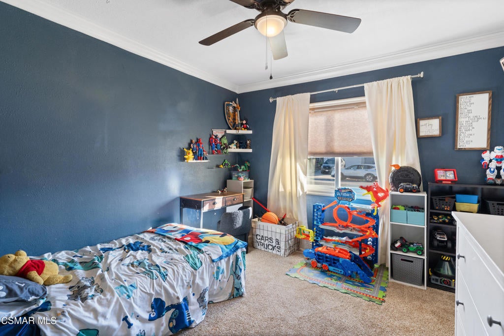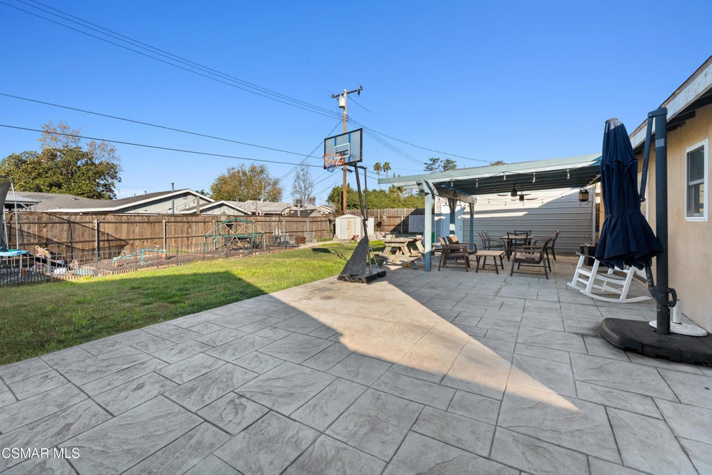 Perfect Home. 3 spacious bedrooms and 2 baths including a primary suite with an en-suite bath. Large family room and large dining room, both just off the kitchen. Good amount of cabinets and counter space. Direct access 2 car garage with indoor laundry area. The garage is a dream and has a unique special feature, a rear single car garage door that open directly into an additional garage / storage shed with 12 foot high ceilings. Imagine the possibilities of uses for this unique garage. Large covered custom patio, grass area and kids play area. Central air, wide driveway and more. Just up the street from Vista Elementary School, one of Simi's Fundamental Schools. Close to the heart of Simi, shopping, restaurants and more. Come see your new home.