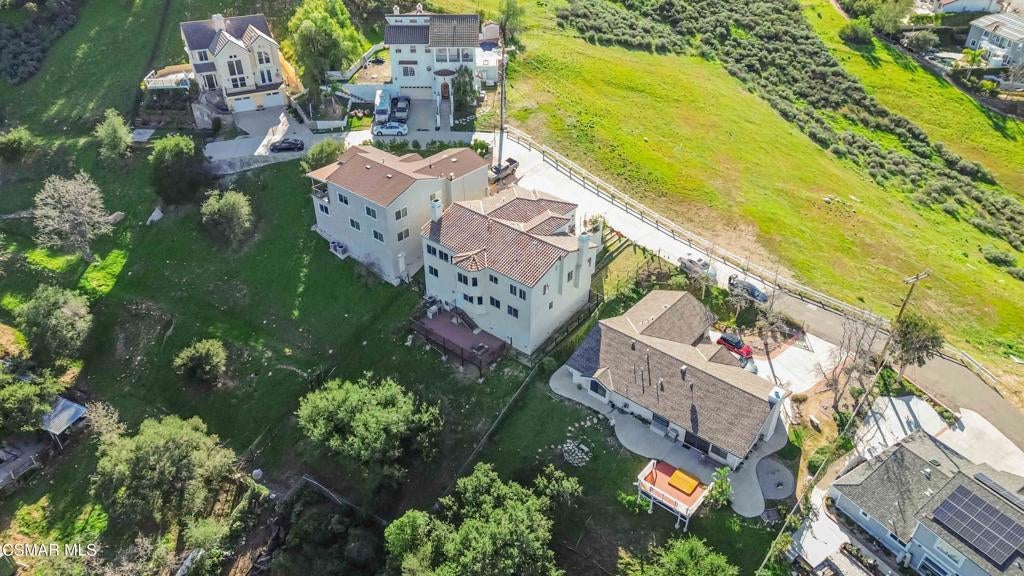 Discover this stunning hillside VIEW home in the Santa Susanna Knolls. Boasting over 3000 sqft, this property features four bedrooms, including a main-level bedroom perfect for guest or an office and 3 full baths all on a 10,000 sqft lot. The expansive kitchen is a chef's dream, with granite counters, stainless steel appliances, travertine tile floors and a cozy breakfast nook offering breathtaking views. The spacious family room , complete with fireplace and hardwood floors, opens up to panoramic city and mountain views. The inviting living room also features a fireplace, hardwood floors and more gorgeous vistas. The master suite is a true retreat, featuring a sitting area, luxurious master bath, and a large walk-in closet, all with those incredible views. Additional features include dual pane windows throughout, dual central air and heat system, three car garage, possible RV access, private deck overlooking the peaceful mountains. Designed with comfort and style for this area, this custom home was built with all concrete siding and an internal sprinkler system. Don't miss out on this exceptional property with BREATHTAKING VIEWS!