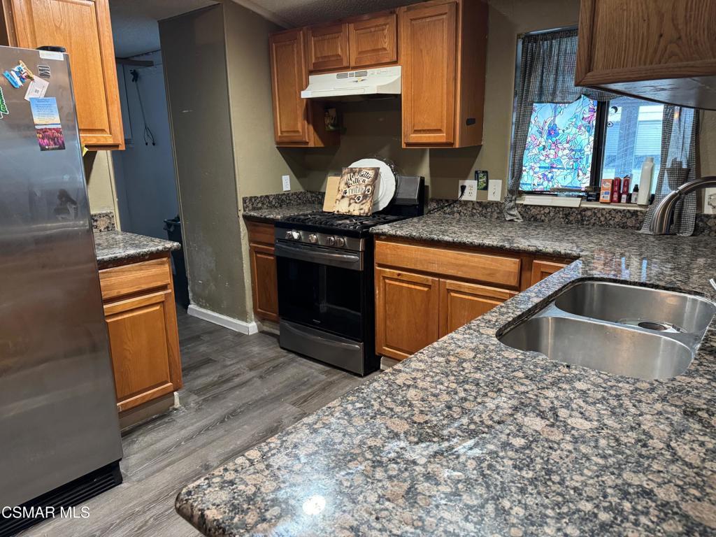 Welcome to 40701 Rancho Vista Blvd., Space 76, in Boulders, one of Antelope Valley's most desirable gated communities! This well-maintained 3 bedroom 2 bath home has a large covered front patio and is very spacious with laminate wood floors throughout, except 2 bedrooms that have carpet. Enter the great room with vaulted ceilings and fan, large kitchen with granite counters, stainless steel appliances, recessed lighting, and laundry hookups. Bedroom with recessed lighting, mirrored closet and crown moldings. Master suite is large with skylight, mirrored closet, stone counters and Roman tub/shower! Wraparound spacious yard has room for many toys and has a storage shed and covered carport for 2+ cars plus concrete pad! You'll also have access to resort-style amenities, including a sparkling community pool, tennis courts, basketball courts, and a fun play area for the kids. Experience the security and lifestyle and don't miss your chance to own this charming home in a prime Palmdale location!