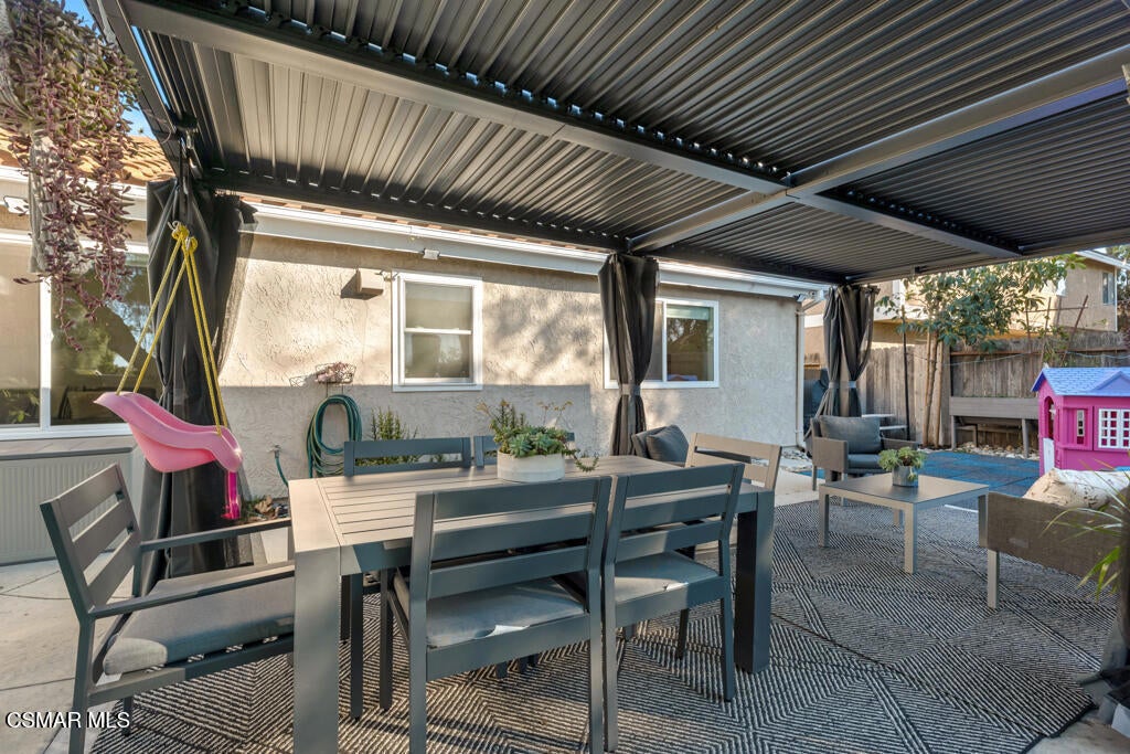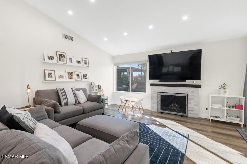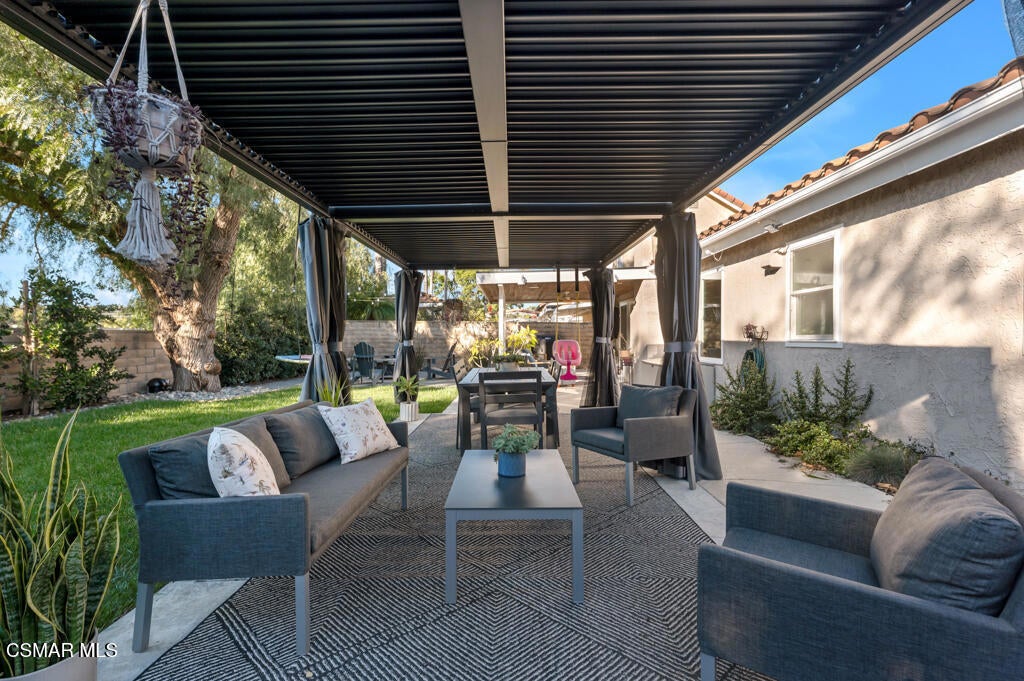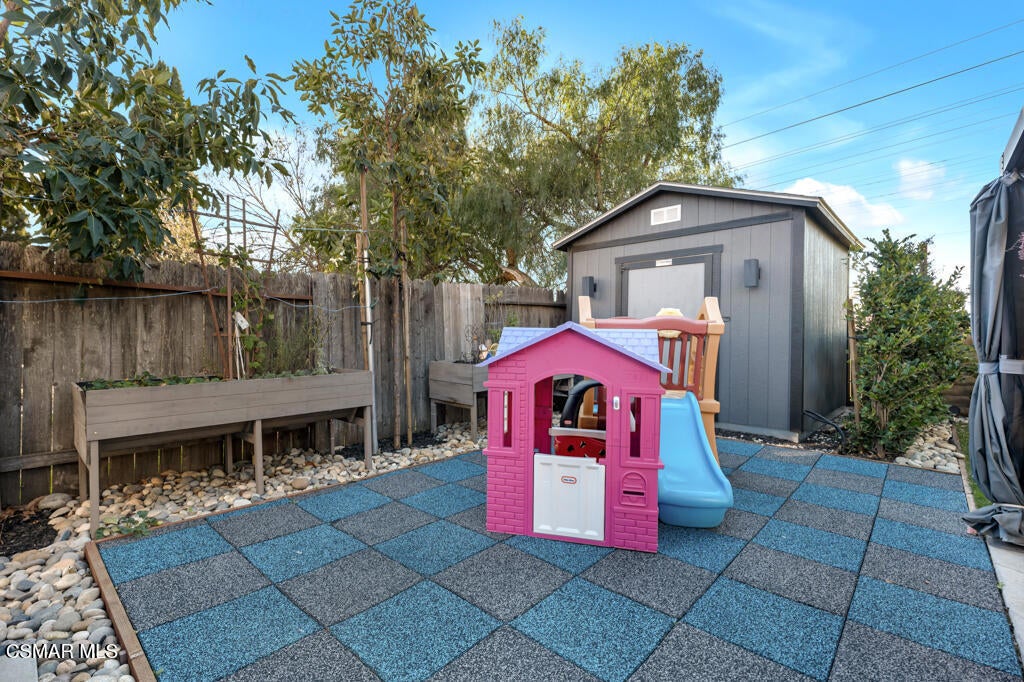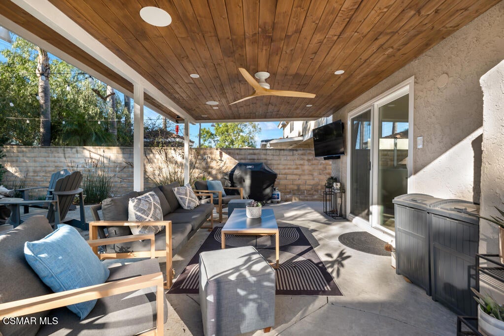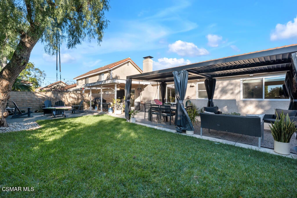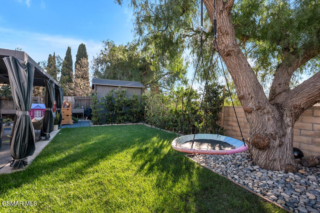 Welcome to this stunning single-story 3-bedroom, 2-bathroom home offering 1,238 square feet of beautifully updated living space on a 6,098 square foot entertainer's lot -- no HOA and tucked into a fantastic, quiet Moorpark neighborhood. Thoughtfully upgraded throughout, this home features new flooring, new windows and sliding glass doors, and new solid wood interior doors, creating a fresh, modern feel. The living area is anchored by a nicely refinished fireplace, complemented by all-new lighting with modern dimming switches throughout the home. Outside you will find an entertainer's dream backyard, complete with a fully roofed patio cover featuring an outdoor TV, recessed lighting, speakers, ceiling fan, and wiring for heaters -- perfect for year-round enjoyment. The yard also includes all-new landscaping and concrete, privacy hedges along the rear, a kids' play area, a new shed, and eye-catching under-eave Govee lighting. Additional highlights include a whole house fan, a direct-access two-car garage with ample storage, and additional RV or car parking along the side of the home. Conveniently located near shopping, restaurants, multiple parks, and Moorpark High School, this move-in-ready home truly offers the best of comfort, style, and location. Don't miss this exceptional single-story opportunity in the heart of Moorpark.