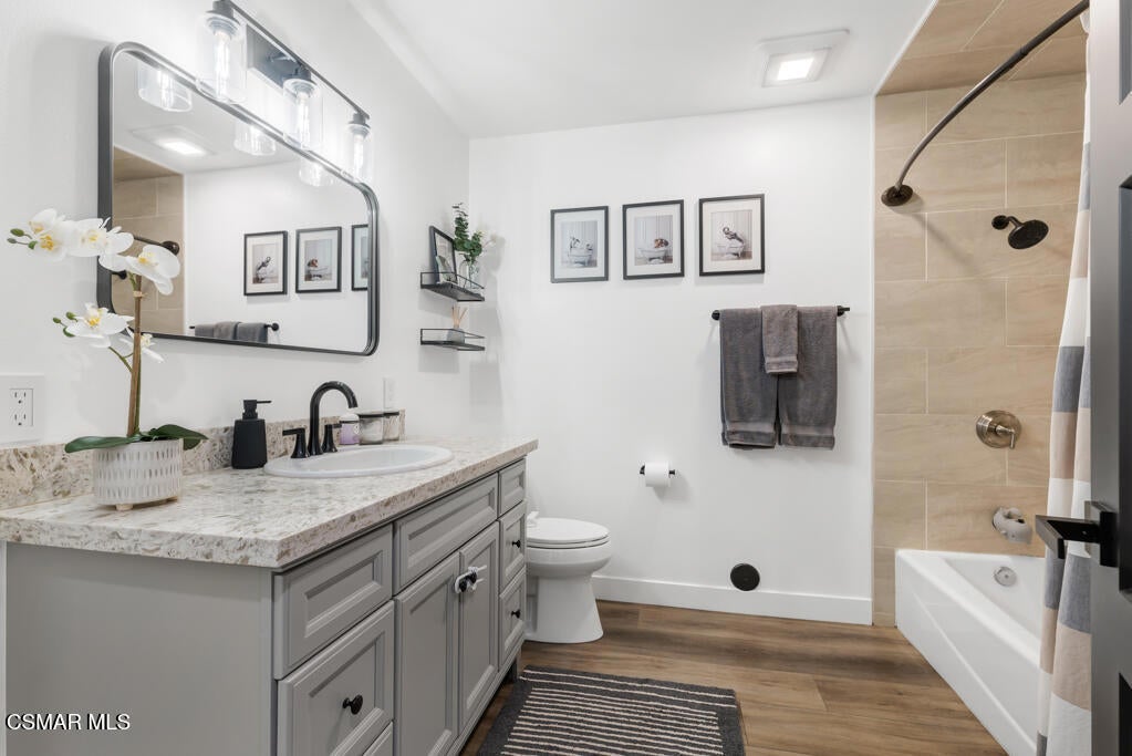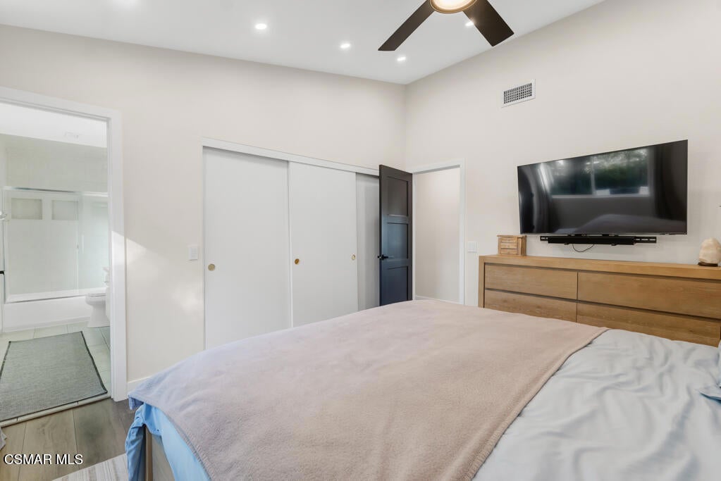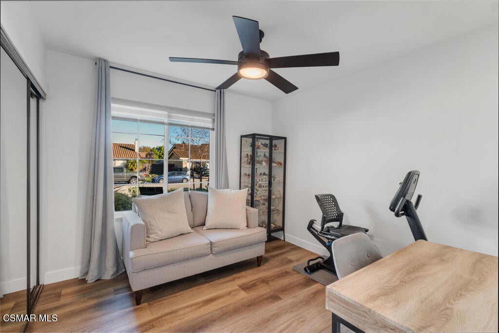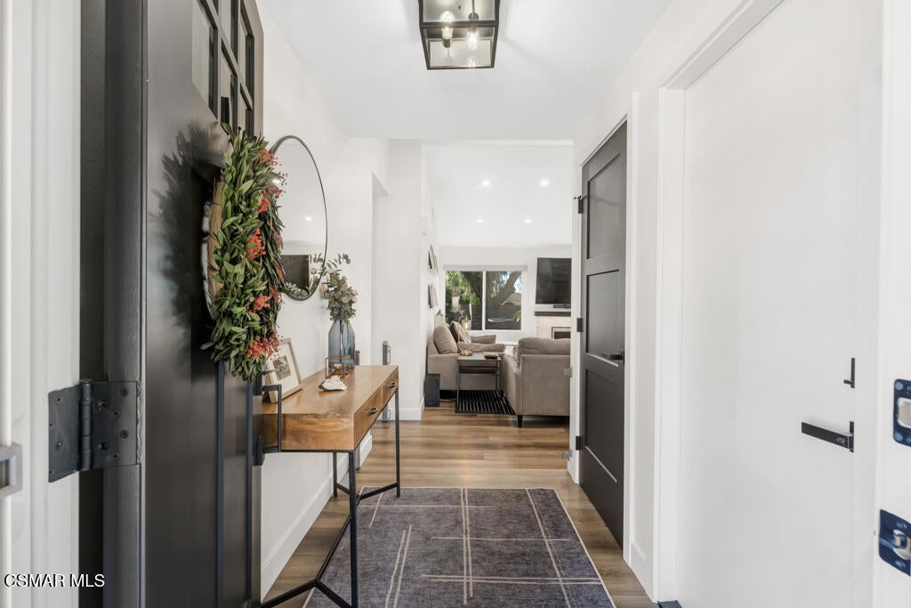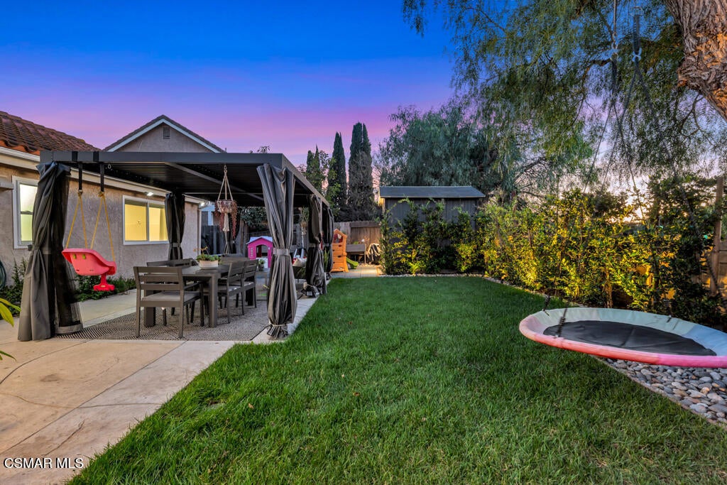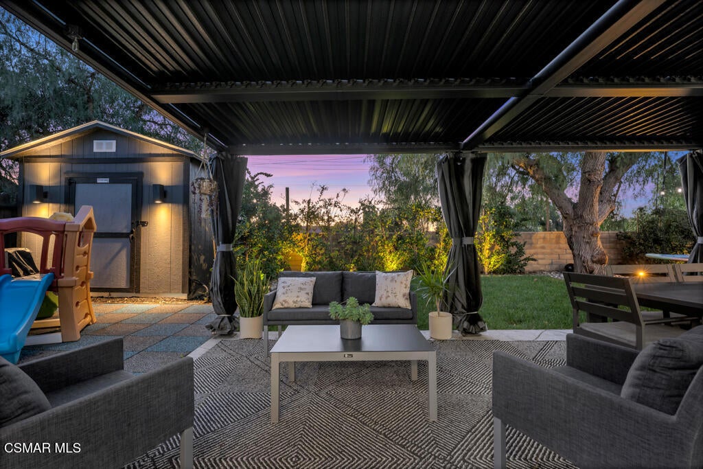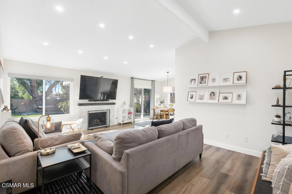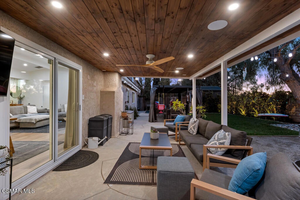 Welcome to this stunning single-story 3-bedroom, 2-bathroom home offering 1,238 square feet of beautifully updated living space on a 6,098 square foot entertainer's lot -- no HOA and tucked into a fantastic, quiet Moorpark neighborhood. Thoughtfully upgraded throughout, this home features new flooring, new windows and sliding glass doors, and new solid wood interior doors, creating a fresh, modern feel. The living area is anchored by a nicely refinished fireplace, complemented by all-new lighting with modern dimming switches throughout the home. Outside you will find an entertainer's dream backyard, complete with a fully roofed patio cover featuring an outdoor TV, recessed lighting, speakers, ceiling fan, and wiring for heaters -- perfect for year-round enjoyment. The yard also includes all-new landscaping and concrete, privacy hedges along the rear, a kids' play area, a new shed, and eye-catching under-eave Govee lighting. Additional highlights include a whole house fan, a direct-access two-car garage with ample storage, and additional RV or car parking along the side of the home. Conveniently located near shopping, restaurants, multiple parks, and Moorpark High School, this move-in-ready home truly offers the best of comfort, style, and location. Don't miss this exceptional single-story opportunity in the heart of Moorpark.