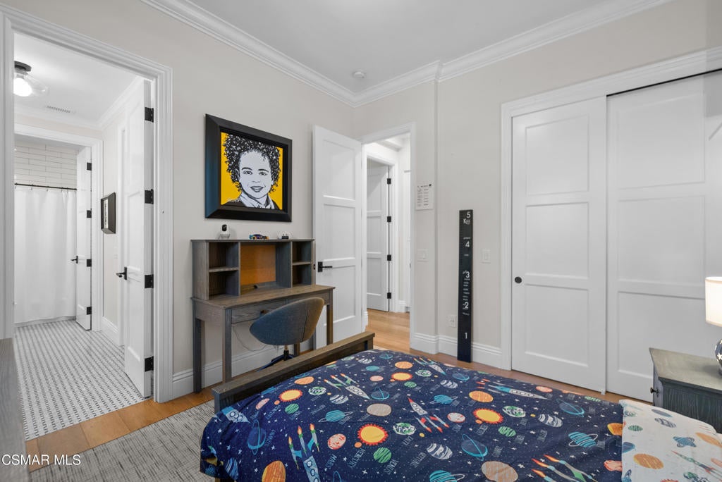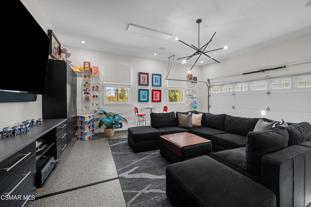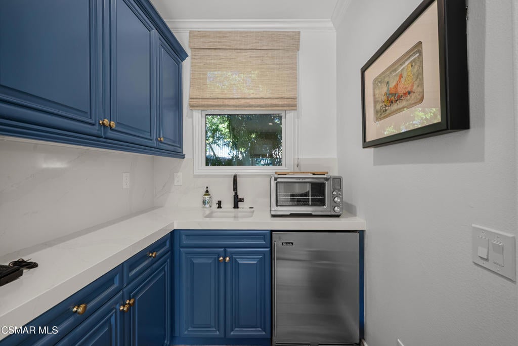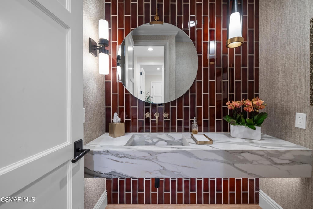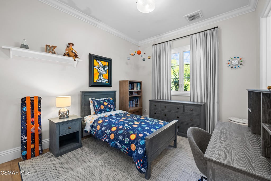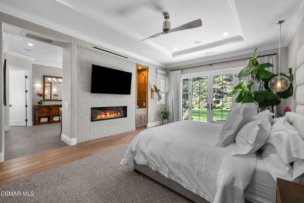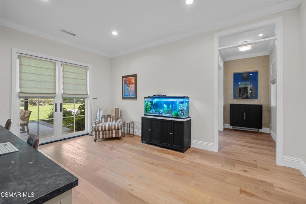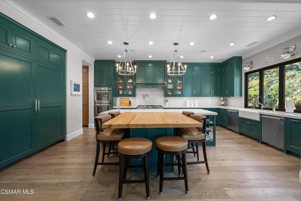 A refined blend of timeless design and true California indoor-outdoor living, set on nearly 1.5 acres at the end of a quiet cul-de-sac within the gated Palermo community of Dos Vientos.From the moment you arrive, this single-story estate makes a lasting impression. Step inside and be guided through light-filled spaces defined by wide-plank engineered wood flooring, custom crown molding throughout, new windows and doors, and carefully curated designer lighting all part of an extensive remodel that began in 2021.At the heart of the home is a statement kitchen, thoughtfully designed for both everyday living and effortless entertaining. Anchored by a generous center island, the kitchen features quartz countertops, a built-in refrigerator, dual dishwashers, two sinks, and soft-close cabinetry and drawers combining luxury with exceptional functionality. The kitchen flows seamlessly into the family room, where expansive accordion doors open wide to the covered patio, creating a true indoor-outdoor experience.The floor plan offers exceptional flexibility with two primary suites, allowing the future owner to decide which best fits their lifestyle. The original primary suite is generously sized and privately situated, while the second primary suite completed in 2023 is accessed through a den that can serve as a home office. This newer suite features a spacious walk-in closet and a well-appointed primary bath, creating a serene sanctuary within the home.In total, the main residence offers five bedrooms and four-and-a-half bathrooms, all thoughtfully laid out on a single level. The additional bedrooms and bathrooms have also been remodeled, maintaining the same level of quality and finish found throughout the home.A detached casita with its own bedroom and full bath offers a private, self-contained space separate from the main residence ideal for an in-law suite, nanny quarters, guest accommodations, or a flexible retreat tailored to the new owner's needs.Outdoors, a resort-style backyard unfolds, framed by mountain views and exceptional privacy. Completed in 2024, the outdoor kitchen features a built-in BBQ, two burners, a warming drawer, sink, and bar-height seating, all set beneath a wood pergola structure ideal for entertaining. A custom fire pit creates a natural gathering space for evenings under the stars. The grounds are further enhanced by mature citrus trees, including lemon, lime, orange, and pomegranate, adding both charm and a true California lifestyle element. Steps lead up the hillside to an elevated seating area and a private bocce ball court, creating a truly unique outdoor retreat.The two-car garage is finished with an epoxy floor and recessed can lighting, offering versatility beyond traditional parking. Whether used as a home gym, workshop, creative space, or casual hangout area, this space is designed to adapt to a variety of lifestyles.Additional highlights include an updated HVAC system with new ductwork, Tesla solar with four Tesla Powerwalls, a three-car garage, a striking temperature-controlled wine wall, and access to nearby hiking trails, parks, and the natural beauty that defines Dos Vientos.Spanning approximately 4,875 square feet and thoughtfully designed to accommodate a variety of lifestyles, this single-story estate is set within one of the area's most sought-after gated communities, offering an exceptional blend of space, privacy, and refined living.