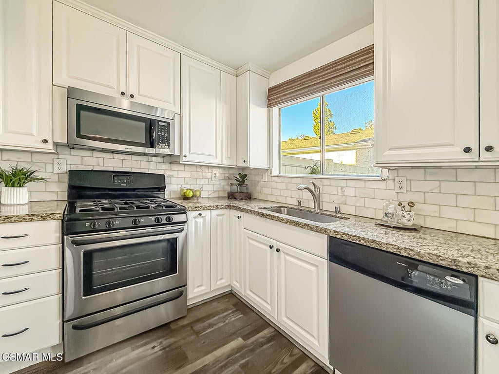 Welcome home to effortless style, space, and convenience in the heart of Moorpark.This beautifully positioned end-unit townhome offers the perfect blend of privacy, natural light, and easy living--ideal for both homeowners and savvy investors alike, just minutes from Moorpark College.With three spacious bedrooms and three bathrooms, this flexible floor plan truly delivers. The sun-filled living room makes an immediate impression with its soaring fireplace and sliding glass door that seamlessly connects indoor and outdoor living. Entertain with ease or relax in comfort--this space was designed to be enjoyed.The remodeled kitchen is both stylish and functional, featuring newer cabinetry, updated countertops, stainless steel appliances, and modern fixtures. Even better, the refrigerator, washer, and dryer are included, making this home move-in ready and especially appealing for first-time buyers.A full bedroom and 3/4 bathroom on the main level offer versatility for guests, extended family, or a home office. Upstairs, you'll find two additional bedrooms and baths, including a generous primary suite with dual closets and a private ensuite.Step outside to your private, oversized patio, a rare find that's perfect for summer BBQs, morning coffee, or evening unwinding. With access from both the kitchen and living room, this outdoor space connects directly to a dedicated two-car garage, plus an additional adjacent parking space and nearby guest parking for ultimate convenience.The community enhances the lifestyle with a sparkling pool and clubhouse, just steps away.Bright. Private. Move-in ready.This is the one you've been waiting for--come see why this townhome could be the perfect place to call home in the new year.