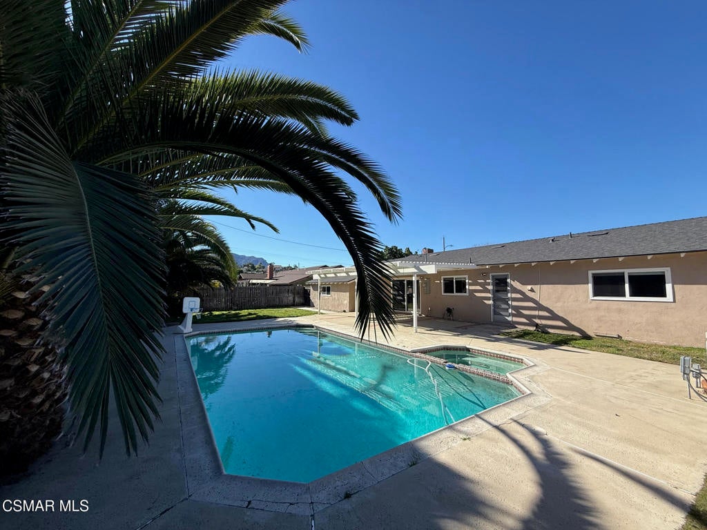 Beautifully upgraded single-story pool home offering privacy and comfort. The home features a newer kitchen with updated appliances and quartz countertops, smooth ceilings throughout, recessed lighting, and bull-nosed corners and luxury vinyl flooring in the kitchen, living room, dining room and hallway plus new carpeting in the bedrooms. Enjoy a dedicated laundry room, two tastefully updated bathrooms, double-pane windows, and a large fireplace. The extra-large two-car garage provides ample storage. Outdoors, the property is beautifully landscaped with grass in both the front and back yards, a pool and spa, and an extremely private backyard with no neighbors directly behind--perfect for relaxing or entertaining.