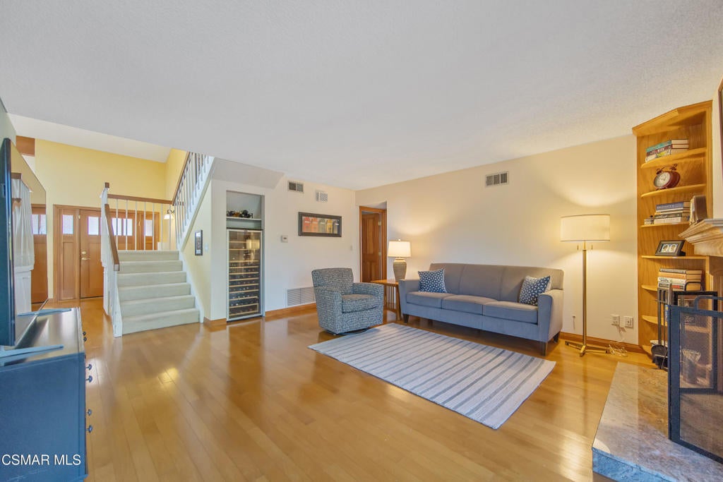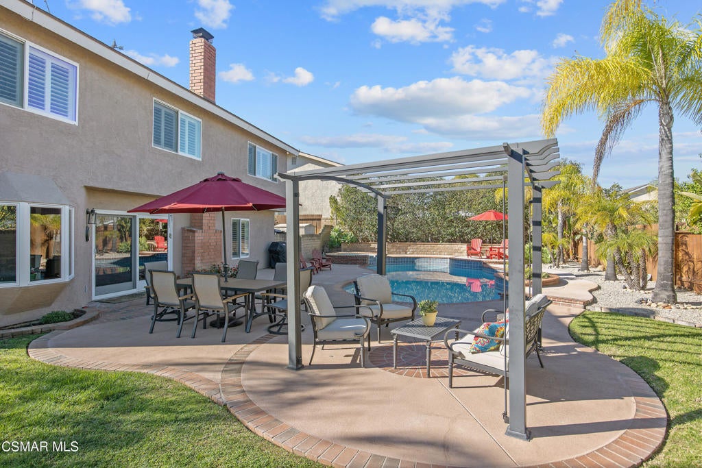 Welcome to a lifestyle of casual elegance in this updated two story home located in a highly desirable neighborhood. Offering four spacious bedrooms and three bathrooms, this versatile floor plan includes a convenient downstairs bedroom and bath, perfect for guests or multi-generational living. Bedroom is currently being used as an office. The home features a large living room and dining room, ideal for both everyday comfort and entertaining. Spacious family room features a wood-burning/gas fireplace. Enjoy an upgraded kitchen with stainless steel appliances, granite counters, and eating area. Bathrooms have been beautifully updated. Other amenities include warm wood flooring and plantation shutters. Step outside to your serene backyard retreat, complete with a sparkling pool and relaxing spa, perfect for enjoying sunny days and evenings year-round, while a generous patio area invites alfresco dining, lounging, or gatherings with family and friends. The yard is further enhanced by mature fruit trees (navel orange, Meyer lemon, and lime). A large grassy area creates abundant room for play, pets to roam, or yard games. The backyard combines versatility and privacy, making it a standout feature of this exceptional home. The property also offers generous RV access, adding valuable flexibility and storage. With easy maintenance landscaping and excellent curb appeal this home offers the perfect blend of beauty, comfort, and warmth.