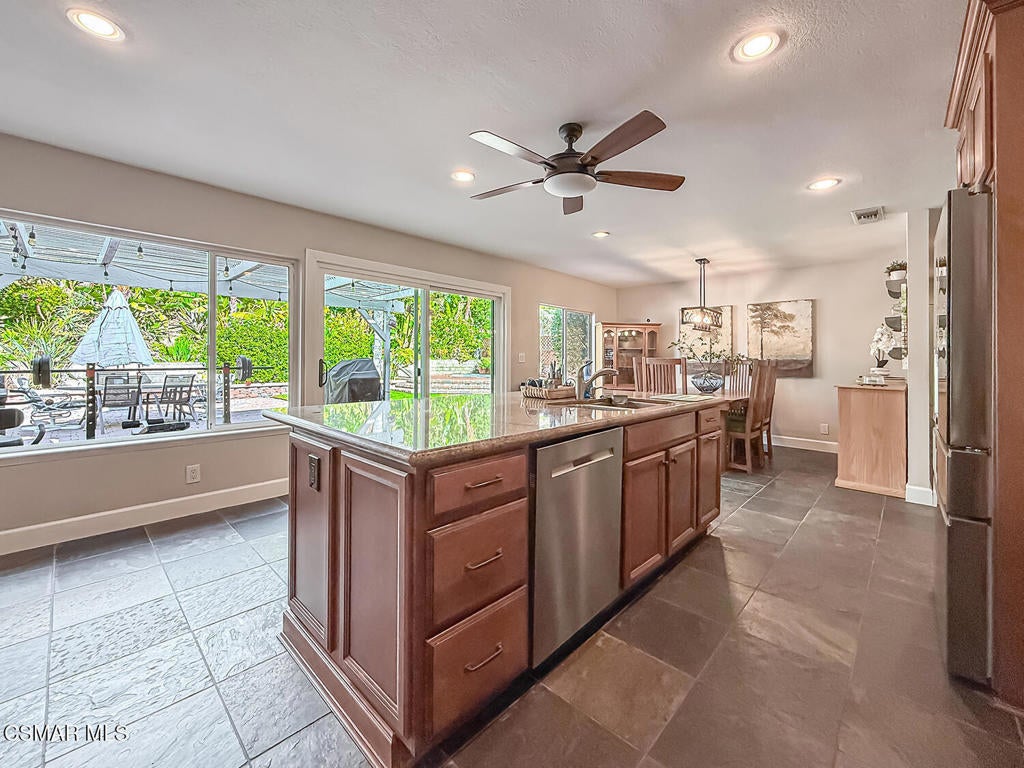 Welcome to this stunning single-story home located in a desirable neighborhood just north of Alamo, offering close proximity to parks, schools, shopping, and restaurants. This meticulously cared-for property features 4 spacious bedrooms, including two master suites, and 3 beautifully upgraded bathrooms, along with an additional bathroom in the garage, making it easy to explore various options for creating an Accessory Dwelling Unit (ADU). As you approach the home, you will be greeted by impressive curb appeal, highlighted by mature trees, a wide driveway suitable for possible RV parking, a freshly painted exterior, and a newer roof. Inside, the large family room welcomes you with wood-like flooring, a gorgeous fireplace, large baseboards, and plantation shutters that add an elegant touch. The remodeled kitchen is bright and airy, boasting an abundance of newer dual-paned windows, a slider, and recessed lighting. It comes equipped with a huge island, granite countertops, stainless steel appliances, and newer cabinetry. Each of the four bedrooms is generously sized and fitted with ceiling fans for comfort. Additionally, the property features an interior laundry area and upgraded bathrooms with modern tile and vanities. Sitting on over an 11,000 square foot lot, the backyard offers a beautiful escape, complete with a patio cover for a cozy sitting area, a large flat space covered in pavers, an in-ground Jacuzzi, and a landscaped hillside adorned with citrus, palm, and banana trees. This home not only perfectly combines modern comfort with a tranquil outdoor oasis but also offers endless possibilities for customization, including the potential for an ADU.