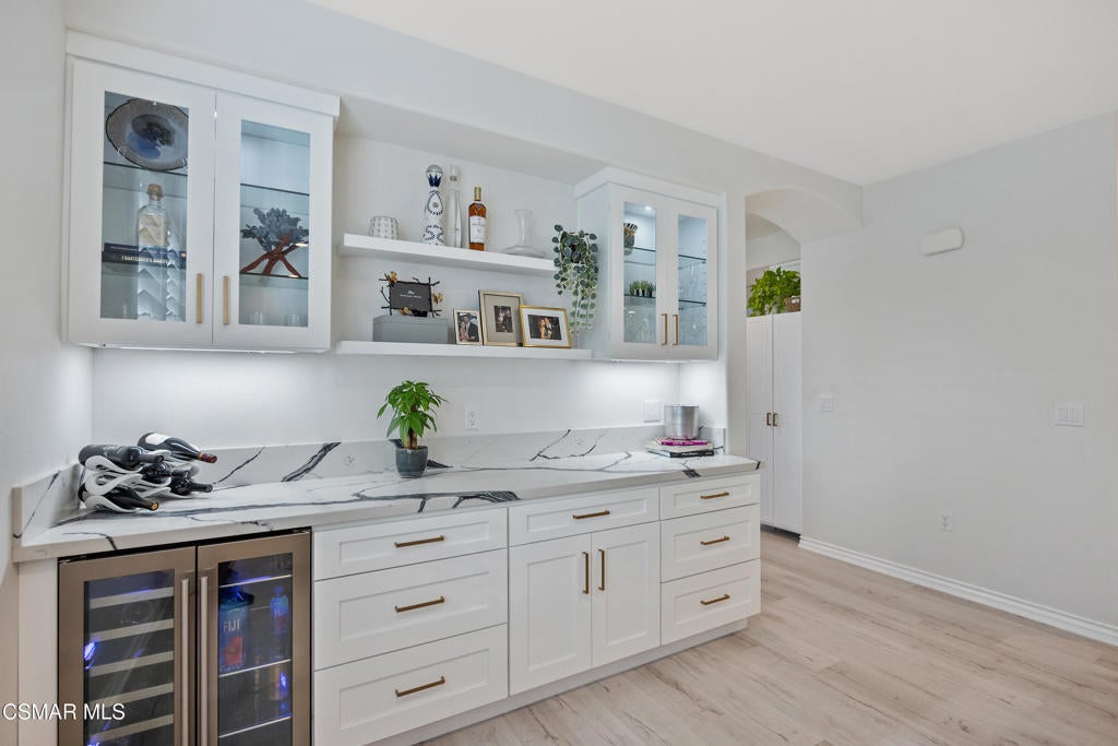 Welcome to 349 Newbury Vista Lane, Newbury Park -- a stunning end-unit townhome that perfectly blends modern comfort, privacy, and style. Built in 2017, this spacious 3-bedroom, 2.5-bathroom residence offers approximately 2,200 square feet of beautifully designed living space in one of the Conejo Valley's most desirable communities.As you step inside, you're greeted by a bright and open floor plan with high ceilings, recessed lighting, and plantation shutters throughout. The main level features a large, inviting living room centered around a cozy fireplace--ideal for entertaining or relaxing evenings at home. A custom built-in cabinet with a wine refrigerator and countertop adds an elegant touch, perfect for hosting guests or enjoying a quiet night in.The kitchen features granite countertops, subway tile backsplash, stainless steel appliances including a built-in microwave and sink, and counter bar seating area. The layout flows seamlessly into a large dining area--currently arranged as a formal dining space but originally designed to accommodate both a family room and a breakfast area. This flexible design allows you to tailor the space to your lifestyle and needs.Upstairs, the expansive primary suite is a true retreat. It features two walk-in closets, a private balcony and a luxurious en suite bathroom complete with dual sinks, a large shower, and soaking tub. Recent updates throughout all bathrooms give the home a fresh, designer-inspired feel. Two additional upstairs bedrooms share a beautifully remodeled full hall bathroom, perfect for family, guests, or a home office.Additional highlights include a main-level half bathroom, a convenient laundry room with storage, a tankless water heater, a whole-house water filtration system, and plenty of built-in storage in the attached two-car garage with direct access. Smart home features like light controls and nest thermostat are also featured.The private outdoor patio--finished with stylish concrete pavers--offers a peaceful place to unwind, enjoy a morning coffee, or take in the beautiful Conejo Valley sunsets. As a rare end unit, the home enjoys additional privacy and natural light, with only one shared wall.The community itself offers resort-style amenities, including a sparkling pool and well-maintained grounds, creating a relaxed and welcoming environment. The location is ideal--nestled in the heart of Newbury Park near top-rated schools, parks, shopping, dining, and easy freeway access for a convenient commute.From its thoughtful layout to its high-end finishes and serene setting, this exceptional townhome truly has it all. Whether you're seeking space, style, or a low-maintenance lifestyle, 349 Newbury Vista Lane offers the perfect blend of sophistication and comfort in one of Ventura County's most desirable neighborhoods.Don't miss this opportunity to own a move-in ready, beautifully upgraded home with every modern amenity and timeless appeal. Come experience the best of Newbury Park living today!