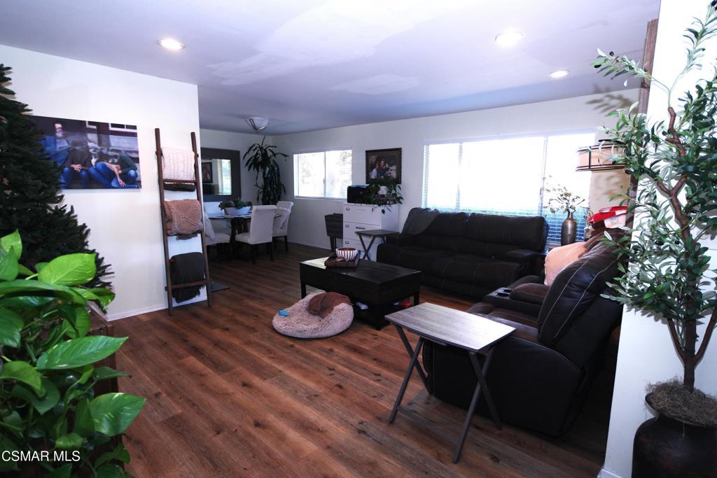Located on a cul-de-sac in Thousand Oaks, this well-maintained home offers neutral flooring and carpeting throughout, along with central heating and air conditioning. Updated light fixtures inside and out complement the stainless steel appliances in the kitchen. The home features extra-large bedrooms, including a downstairs primary suite with a walk-in closet. Enjoy a spacious living room with recessed lighting, a formal dining room, and an open-concept kitchen with a sit-at bar/countertop that flows seamlessly into the family room. The large family room includes a cozy fireplace, built-in bookcase, and abundant cabinetry. Step outside to a generous backyard with a large storage shed, perfect for extra storage. Additional highlights include direct access to the two-car garage with laundry hookups and gardener service included. Ideally located near award-winning schools, shopping, dining, and close to parks, hiking, and biking trails this home offers comfort, convenience, and an exceptional Thousand Oaks lifestyle.