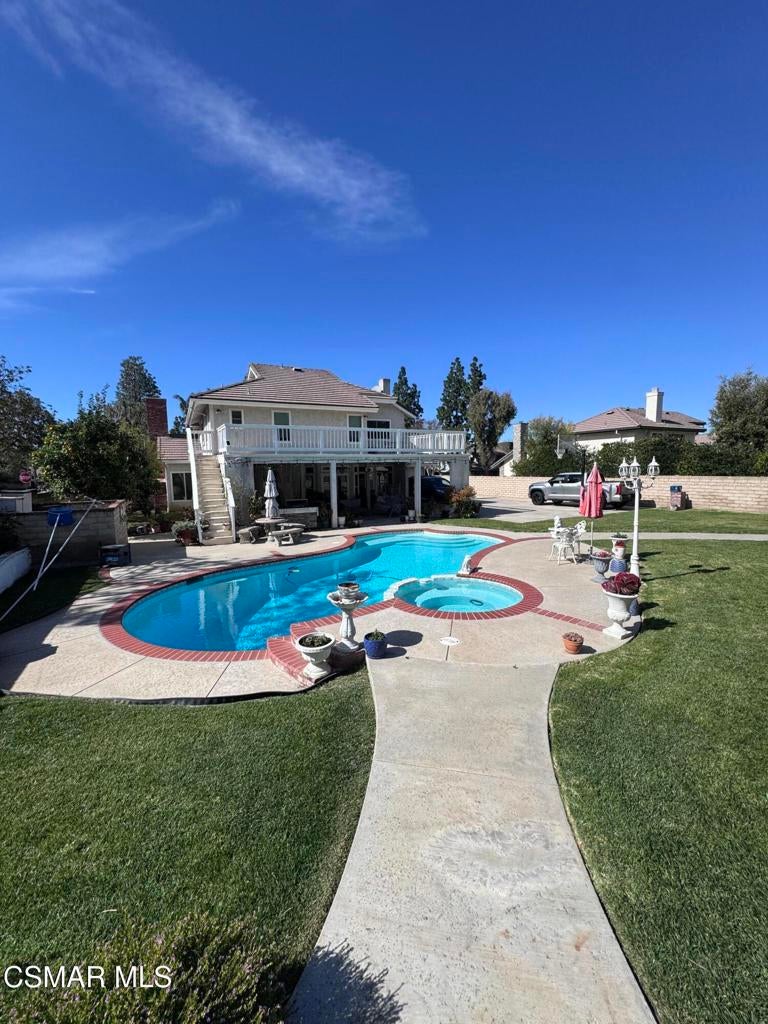This beautiful corner-lot home sits in a quiet, desirable horse property neighborhood and offers 4 bedrooms, 2.5 bathrooms, and 2,310 sq ft of comfortable living space on nearly half an acre. Built in 1990, the home features 3-car garage, all bedrooms upstairs, living room, family room, a welcoming kitchen, and large windows that fill the rooms with natural light. The well-designed kitchen flows seamlessly into the dining and family rooms with a backyard view. The backyard is an entertainer's dream--featuring a sparkling pool, landscaping, RV access, and plenty of room to relax or host gatherings. With so much space, you'll enjoy endless options for outdoor living, gardening, or even future expansion. Don't miss this rare opportunity to own a spacious home with a pool and oversized lot in one of Simi Valley's most sought-after neighborhoods.