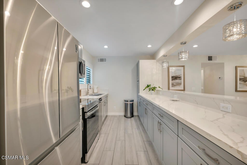 Step into effortless luxury in this beautifully renovated, ground-level corner condo designed for elevated living. Thoughtfully styled with designer finishes, the fully furnished, spacious two-bedroom, two-bath layout opens to a private patio, perfect for indoor-outdoor enjoyment.The remodeled kitchen features quartz countertops, newer appliances, and updated flooring, while newer windows and plantation shutters fill the home with natural light. Additional highlights include wood-look flooring, elegantly remodeled bathrooms, in-unit laundry, and two smart TVs, offering refined comfort and modern convenience.Residents enjoy resort-style amenities including a sparkling pool, fitness center, conference room, lush walking paths, and private key access to Calabasas Lake. With 24-hour on-site security, peace of mind comes standard. Ideally located near the lake, Saturday farmers market, and a wide selection of restaurants offering convenient takeout, the condo is also close to shopping at Warner Center, Trader Joe's, Ralphs, Erewhon, and Bristol Farms.