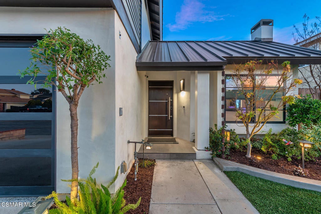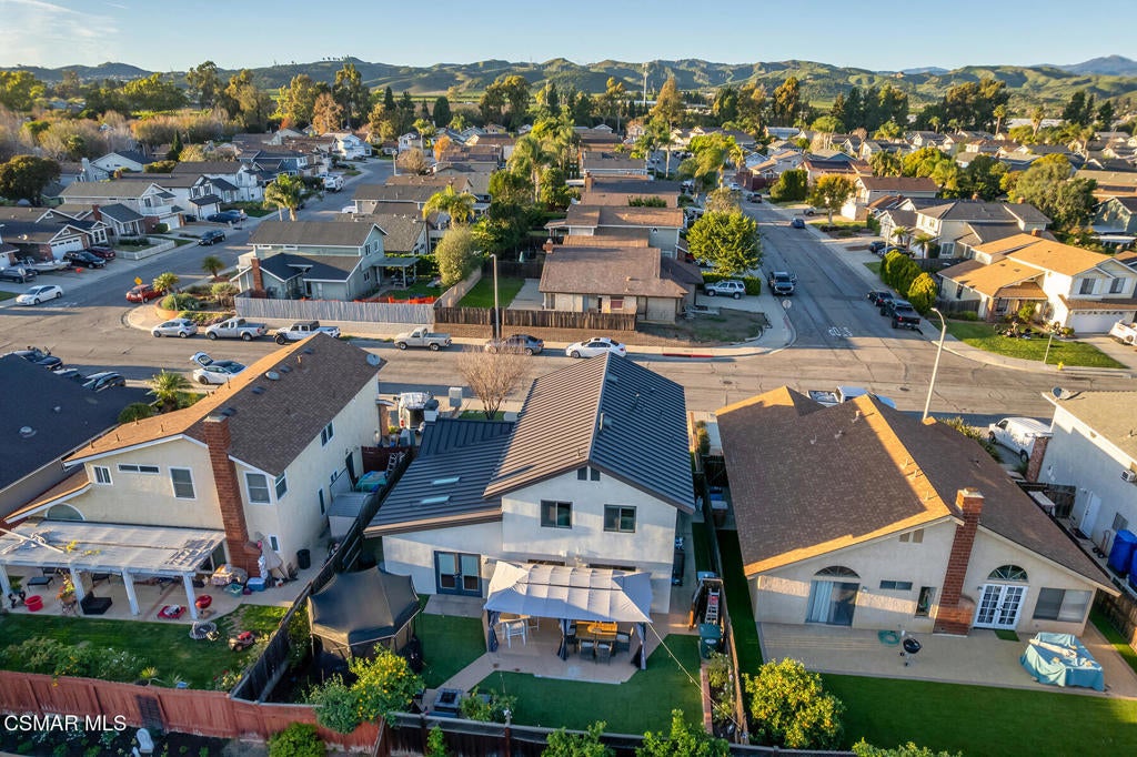 Welcome to a truly one-of-a-kind modern home in the heart of Ventura, where thoughtful design, high-end finishes, and effortless entertaining come together beautifully. Located at 9998 Jamestown, this exceptional residence blends contemporary luxury with everyday comfort in a desirable, established neighborhood. From the sleek smooth-stucco exterior and metal roof to the landscaped front yard with synthetic turf, low-voltage lighting, and a serene Buddha water feature, every detail has been carefully curated to create a striking first impression. Inside, the open great room impresses with large-format concrete tile floors, skylights that flood the space with natural light, base lighting, a dramatic custom onyx fireplace, and a built-in Dolby Atmos sound system. French doors with built-in shades and blackout blinds create a seamless indoor-outdoor flow and a comfortable, modern ambiance. The gourmet kitchen is both stylish and functional, featuring custom two-tone cabinetry, a Wolf range, built-in JennAir refrigerator, Fisher & Paykel drawer dishwasher, microwave drawer, and striking Golden Spectrolite granite countertops with waterfall edges. An extended dining area with wraparound cabinetry and built-in storage adds to the home's effortless entertaining appeal. A custom bar elevates the space even further, offering a Sub-Zero mini fridge, Viking ice maker, onyx bar top, and ambient accent lighting, perfect for hosting or unwinding at the end of the day. The primary suite is a private retreat with real wood floors, a smoked mirror feature wall, and a spa-inspired bathroom complete with marble countertops, a Toto toilet, zero-threshold drains, custom glass enclosures, and a luxurious steam shower.Step outside to a backyard designed for memorable gatherings, featuring synthetic turf, citrus trees, low-voltage lighting, and a pergola with curtains and soft lighting for relaxed evenings under the stars. The garage is a true bonus space with showroom-style epoxy floors, custom cabinetry, a mini-split system, built-in speakers, a washer and dryer, and premium lighting, ideal for a home gym, studio, or ultimate hangout zone. With smart features, upgraded electrical, a tankless water heater, soft-water system, Milgard windows and doors, and a glass garage door, this exceptional home at 9998 Jamestown, Ventura, CA delivers modern luxury, comfort, and turnkey living at its finest.