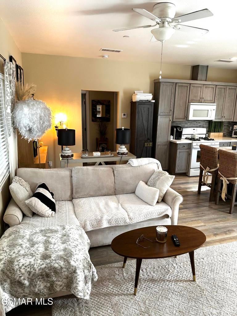 Adorable, private tranquil home on large lot settled in the Santa Susana Knolls! Gorgeous wood flooring, newer cabinets with quartz counter tops through out. Tank less water heater, central heat and air. Great little move in ready home!I Included with home are stackable washer/dryer and refrigerator.