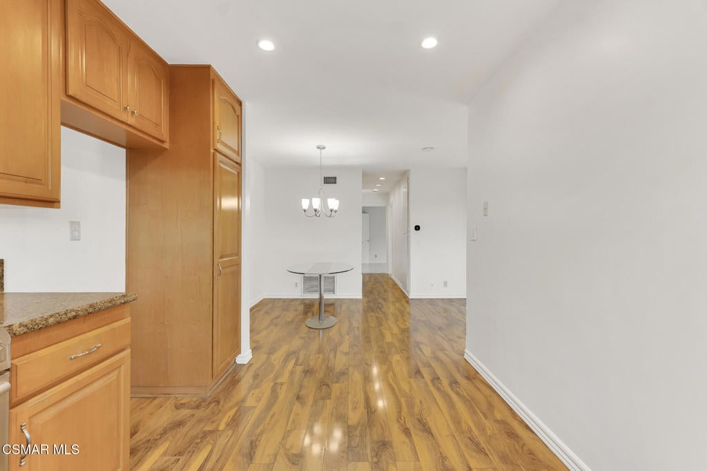 Sunset Views & Serene Wildwood Living AwaitWelcome home to this charming 2nd floor 2-bedroom, 1-bath condo, in an ideal central Thousand Oaks location. Step onto the large, tranquil front porch and take in sweeping vistas of rolling hills and breathtaking sunsets. Inside, thoughtful upgrades shine throughout. The family room is light and bright and feathures a gas fireplace. The kitchen has been remodeled with refaced cabinetry, rich granite countertops, and stainless steel appliances, blending style and functionality. Laminate flooring, smooth ceilings, crisp, fresh interior and exterior paint create a light, modern feel. Every detail has been carefully considered, from the remodeled bathroom with walk-in shower, upgraded front and interior doors, dual-paned vinyl windows, and Hunter Douglas blinds. Enjoy year-round comfort with an updated HVAC system and ducting, ensuring efficiency and peace of mind. Living in Wildwood comes with nearby access to beautiful parks, open space, hiking and biking trails, top-rated schools, and a variety of shopping options. HOA includes paid trash, community pool and clubhouse, and 2 reserved parking spots (one in the carport), making this home an exceptional value.