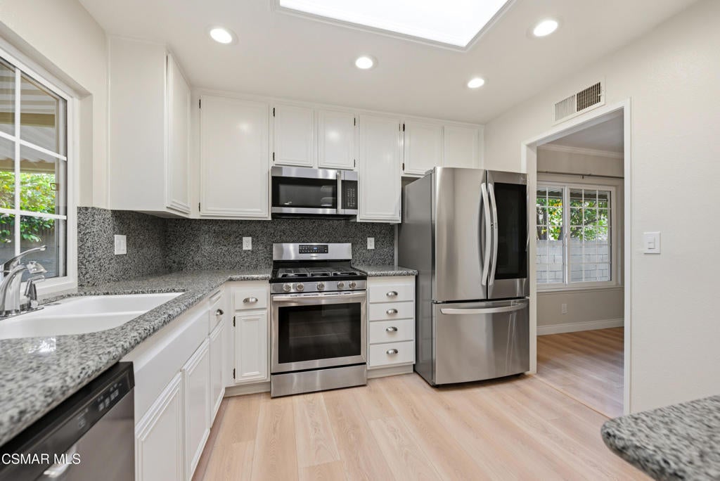 Bright, cheerful, and full of charm, this inviting home offers wood-like flooring throughout and an abundance of natural light that creates a warm, airy feel. The living area features a cozy fireplace, perfect for relaxed evenings and effortless entertaining.The kitchen is both stylish and functional, showcasing stainless steel appliances and a clean, welcoming layout. Outdoors, the gorgeous front yard adds standout curb appeal, while the backyard is designed for easy enjoyment with a covered concrete patio and a grassy area, ideal for dining, lounging, or play. Citrus trees and colorful flowers enhance the space with a fresh, garden-inspired vibe.Additional highlights include street parking, a driveway, and a garage, offering plenty of convenience. A truly sweet home with thoughtful details and lovely indoor-outdoor living.