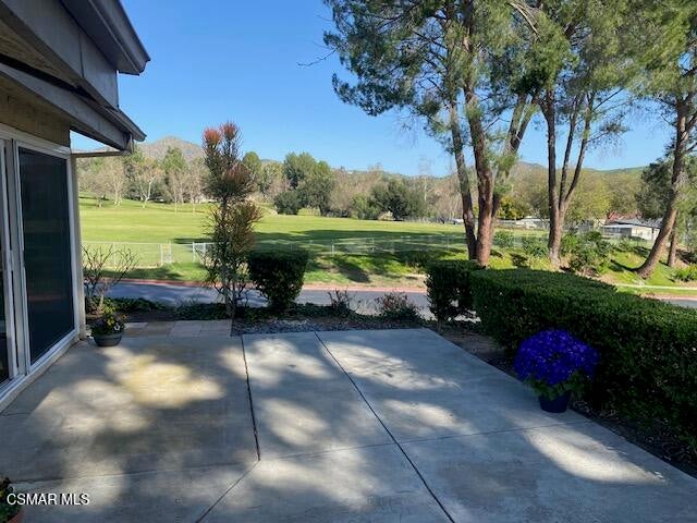 Single story end unit townhome in this highly desired quiet Oak Park neighborhood! Rarely available end unit with only 1 attached wall & 2 car garage. Pets accepted. Loads of guest parking across from this unit. Light & open floor plan with vaulted ceiling, wood-like floor, neutral carpeting & replaced windows. Living room with fireplace, formal dining area. Upgraded kitchen with recessed lighting, travertine counters and floor and new refrigerator. Primary bedroom with vaulted ceiling. Primary bath with upgraded stone tile shower & walk-in closet. Second bedroom has an adjoining upgraded bath with travertine tub & shower surround. Large patio with mountain views. Great location overlooking a park. Community pool, spa & 2 tennis/sports courts. Award Winning Oak Park Schools! Hiking, parks, schools this beautiful neighborhood has it all!