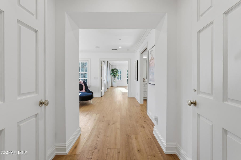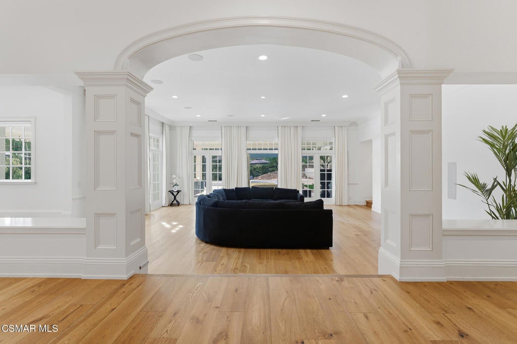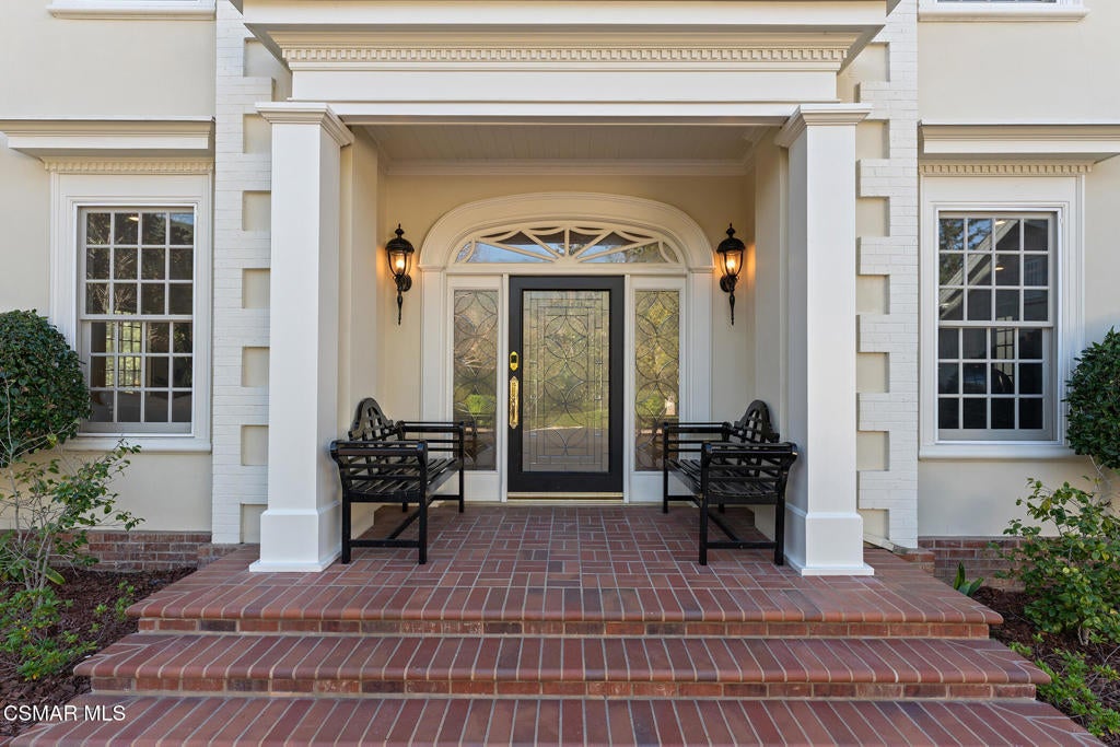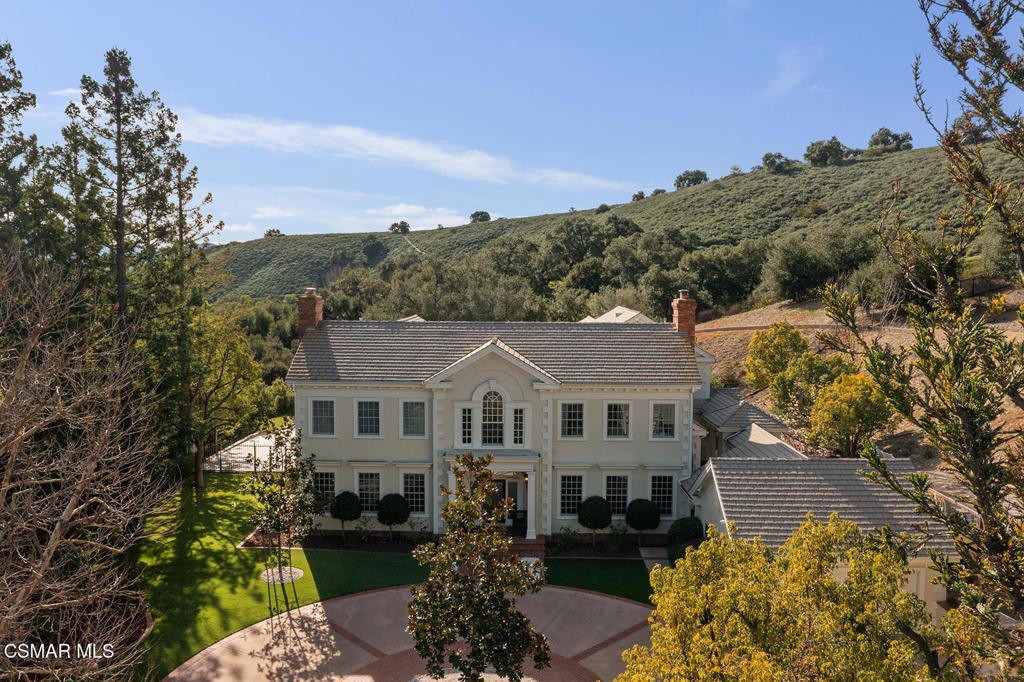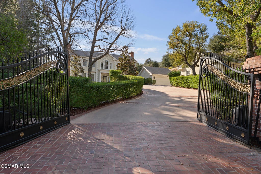 Welcome to 517 Lakeview Canyon Road. Set behind guarded gates in the prestigious enclave of North Ranch Country Club Estates, this one-of-a-kind East Coast traditional inspired estate offers an extraordinary level of privacy, scale, and refinement. Accessed through its own private gates and bridge across a tranquil, flowing stream, the property unfolds across 10 acres of lush grounds. Spanning 8,890 square feet, the residence has been completely remodeled and thoughtfully updated. The home is distinguished by tall ceilings that bring a sense of openness and architectural drama to every room. Multiple fireplaces serve as elegant focal points. Custom crown molding highlights the craftsmanship and attention to detail, while beautiful wood flooring throughout lends warmth and continuity. The kitchen is both refined and functional, anchored by a substantial marble center island that serves as a striking focal point for the space. Marble accents are carried throughout, adding a sense of understated elegance. A custom Sub-Zero refrigerator integrates seamlessly into the cabinetry, while professional grade Viking appliances elevate the kitchen's performance. The home features six generously sized bedrooms all with en-suite bathrooms and walk-in closets, as well as two additional bathrooms. The property also features four additional separate rooms that can be used as an office, study, media room, playroom, all with endless possibilities, each room designed with elevated finishes and timeless appeal. Grand yet welcoming living spaces flow seamlessly throughout. The backyard has been fully reimagined, offering resort-style outdoor living with expansive lawns, serene views, and multiple spaces. Features include a built in state of the art projector system, custom surround sound throughout the property, a built in hidden tv, and ceiling heaters. Every element of the property reflects intentional design and meticulous craftsmanship. Equipped with state-of-the-art security and comprehensive smart-home technology, including Control4 and Creston functionality, the estate delivers modern convenience without compromising its traditional character. The property also features its own orchard with 50 fruit trees. Rarely does a property combine this level of privacy, acreage, architectural presence, and turnkey condition behind guard gates. Ideally located, the home offers convenient access to award-winning schools, top-tier shopping and dining, parks, beaches and easy freeway access. A truly exceptional offering - an irreplaceable North Ranch estate. Close to