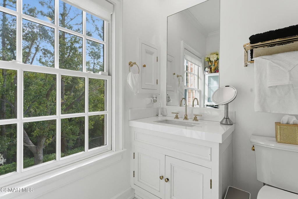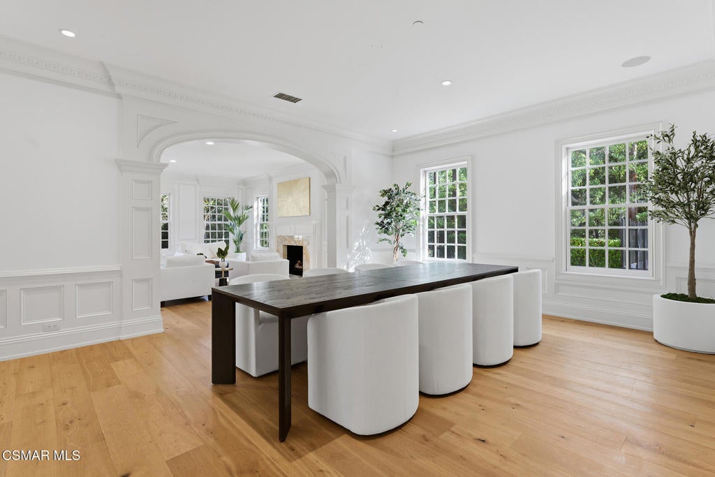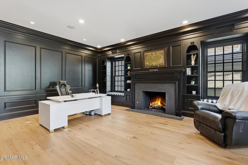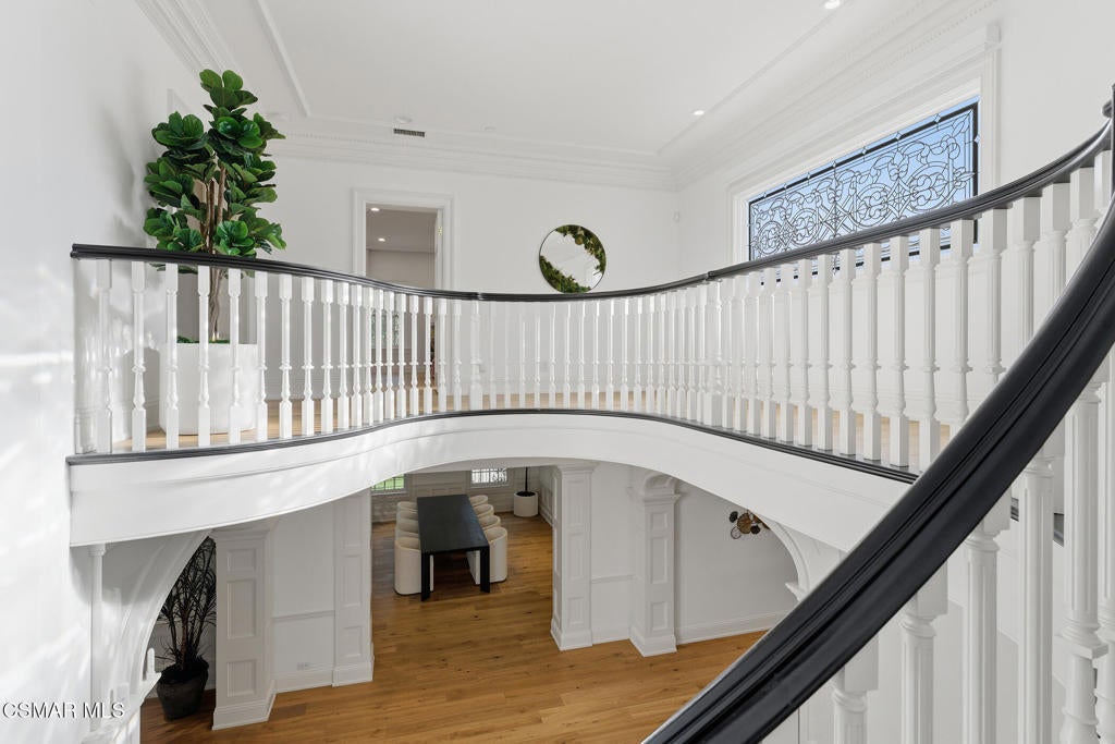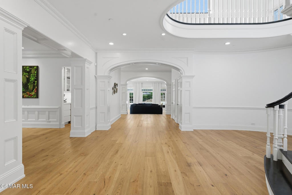 Welcome to 517 Lakeview Canyon Road. Set behind guarded gates in the prestigious enclave of North Ranch Country Club Estates, this one-of-a-kind East Coast traditional inspired estate offers an extraordinary level of privacy, scale, and refinement. Accessed through its own private gates and bridge across a tranquil, flowing stream, the property unfolds across 10 acres of lush grounds. Spanning 8,890 square feet, the residence has been completely remodeled and thoughtfully updated. The home is distinguished by tall ceilings that bring a sense of openness and architectural drama to every room. Multiple fireplaces serve as elegant focal points. Custom crown molding highlights the craftsmanship and attention to detail, while beautiful wood flooring throughout lends warmth and continuity. The kitchen is both refined and functional, anchored by a substantial marble center island that serves as a striking focal point for the space. Marble accents are carried throughout, adding a sense of understated elegance. A custom Sub-Zero refrigerator integrates seamlessly into the cabinetry, while professional grade Viking appliances elevate the kitchen's performance. The home features six generously sized bedrooms all with en-suite bathrooms and walk-in closets, as well as two additional bathrooms. The property also features four additional separate rooms that can be used as an office, study, media room, playroom, all with endless possibilities, each room designed with elevated finishes and timeless appeal. Grand yet welcoming living spaces flow seamlessly throughout. The backyard has been fully reimagined, offering resort-style outdoor living with expansive lawns, serene views, and multiple spaces. Features include a built in state of the art projector system, custom surround sound throughout the property, a built in hidden tv, and ceiling heaters. Every element of the property reflects intentional design and meticulous craftsmanship. Equipped with state-of-the-art security and comprehensive smart-home technology, including Control4 and Creston functionality, the estate delivers modern convenience without compromising its traditional character. The property also features its own orchard with 50 fruit trees. Rarely does a property combine this level of privacy, acreage, architectural presence, and turnkey condition behind guard gates. Ideally located, the home offers convenient access to award-winning schools, top-tier shopping and dining, parks, beaches and easy freeway access. A truly exceptional offering - an irreplaceable North Ranch estate. Close to