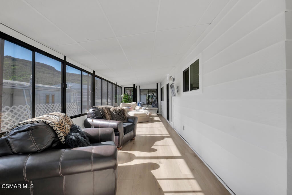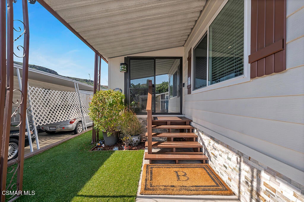 Located in the well-established Vallecito 55+ gated community, 68 La Palma offers serene, low-maintenance living in the heart of Newbury Park--with NO PROPERTY TAXES and access to wonderful community amenities.This single-story, 1,681 sq. ft. home has been fully updated and features beautiful newer vinyl flooring throughout, smooth ceilings, upgraded baseboards, designer paint tones, recessed lighting, and dual-pane windows installed in 2022 throughout the home (excluding the enclosed porch). The open, light-filled floor plan creates a seamless flow between the living, kitchen dining, and dining areas, ideal for both everyday living and entertaining.The updated kitchen showcases modern finishes including quartz countertops, a stainless refrigerator, generous cabinetry, a center island with gas cooktop and included stylish kitchen island bar stools! The adjacent dining room is highlighted by a skylight that fills the space with natural light.The fully enclosed porch, complete with matching flooring and a mounted TV, creates a perfect space for entertaining and enjoying the California lifestyle. The home also features a convenient indoor laundry area with a full-size washer and dryer.The primary suite offers a comfortable space with a nicely sized bedroom with dual closets and a beautifully updated en-suite bathroom featuring a large walk-in shower and linen storage. The second bedroom, ideal for guests or a multi-use space, includes a queen-size Murphy bed and is paired with a second updated bathroom featuring a tub/shower combination--perfect for flexibility and convenience.Outdoor living is equally impressive, featuring artificial turf, irrigation, and well-maintained landscaping. A charming vineyard with a variety of grape vines and a mature Meyer lemon tree create a peaceful and unique outdoor retreat. The exterior has been thoughtfully enhanced with updated siding and stacked-stone accents, refreshed front steps and stonework, a retaining wall, widened driveway improvements, and an updated carport with new skirting.Major system upgrades include a new furnace and air conditioning, roof repairs, and numerous interior and exterior improvements--providing peace of mind for years to come.Vallecito Mobile Home Park is a well-maintained, gated community offering a pool, spa, clubhouse, gym, BBQ area, putting green, a community dog run, and a library--designed for active and social living. Residents enjoy access to a gated entry, and a friendly, walkable neighborhood, conveniently located near shopping, dining, parks, and local trails.This move-in-ready and well-cared for home offers comfort, style, and ease of living in one of Newbury Park's most desirable 55+ communities.