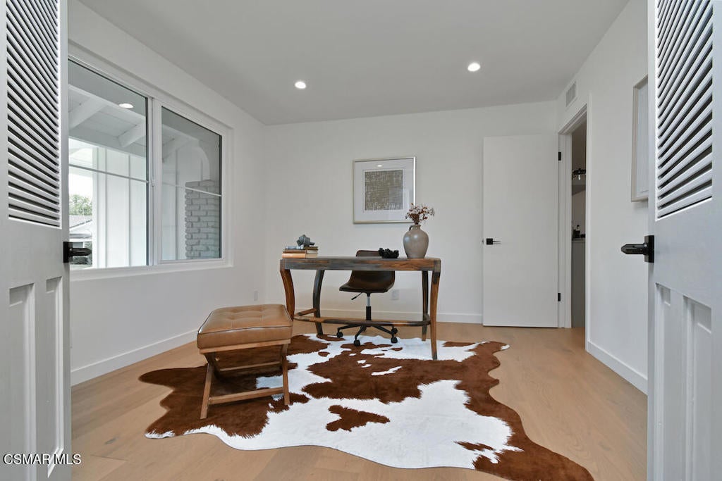 Welcome to this completely renovated 4-bedroom, 3-bath residence offering 2,401 sq ft of beautifully reimagined living space on an expansive 13,000+ sq ft corner lot, tucked away on a quaint cul-de-sac of four well- manicured homes. Thoughtfully redesigned from top to bottom, the home features smooth skim-coated walls, new European white oak wood flooring, and upgraded Alpine windows throughout, creating a light, modern, and cohesive aesthetic. The open, upgraded kitchen is a true standout, featuring a unique vaulted ceiling, luxuriously finished custom millwork with paneled appliances, a picture window over the sink, and Del Quartz countertops by Arizona Tile. Seamlessly situated between the dining room, family room, and living room, the kitchen is perfect for everyday living and entertaining alike. Entertain with ease at the custom bar complete with a refrigerator and sink, while enjoying the warmth and character of the nearby fireplace. A downstairs bedroom and full bath offer ideal flexibility for guests, multigenerational living, or a private home office. Upstairs, the primary suite is a true retreat, showcasing a reconfigured spa-like bathroom with an oversized walk-in shower and natural Calcutta Gris stone on the walls and flooring. Additional highlights include indoor laundry, a 2-car garage, a new Presidential two-layer roof, a new heating and air system, and a completely renovated pool featuring a 400,000 BTU heater, auto-fill, overflow, and shut-off valves. Uniquely situated on a rare four-home cul-de-sac, this property offers exceptional privacy, generous outdoor space, and standout curb appeal. This turnkey home blends modern luxury with thoughtful design and is truly move-in ready. Not just a pretty face, you can leave your toolbox behind.Compass is a licensed real estate broker (01991628) in the State of California and abides by Equal Housing Opportunity laws. All material presented herein is intended for informational purposes only. Information is compiled from sources deemed reliable but is subject to errors, omissions, changes in price, condition, sale, or withdraw without notice. No statement is made as to accuracy of any description. All measurements and square footages are approximate. Buyers should not rely on any advertised or disclosed square footage measurements and should retain their own experts to measure structural size and/or square footage during their inspection period. This is not intended to solicit property already listed. Nothing herein shall be construed as legal, accounting or other professional advice outside the realm of real estate brokerage.