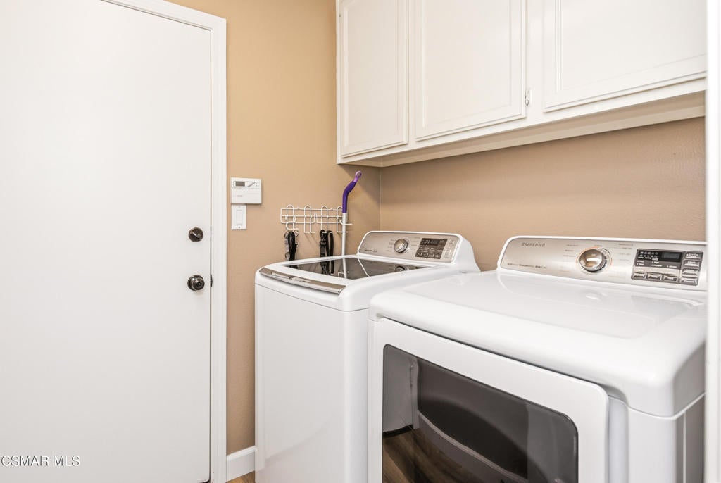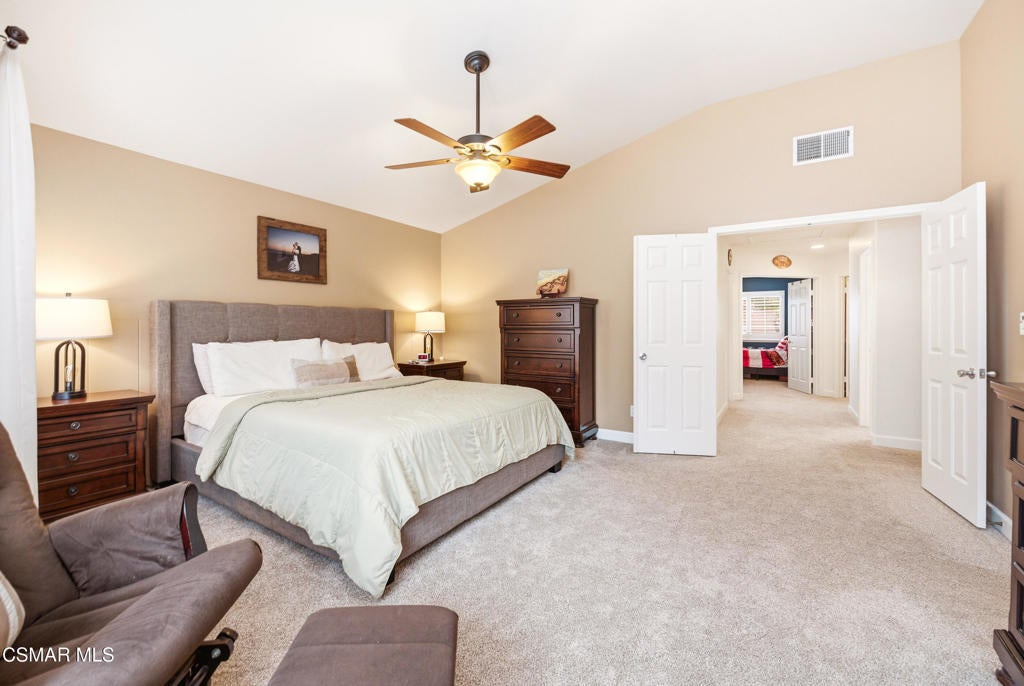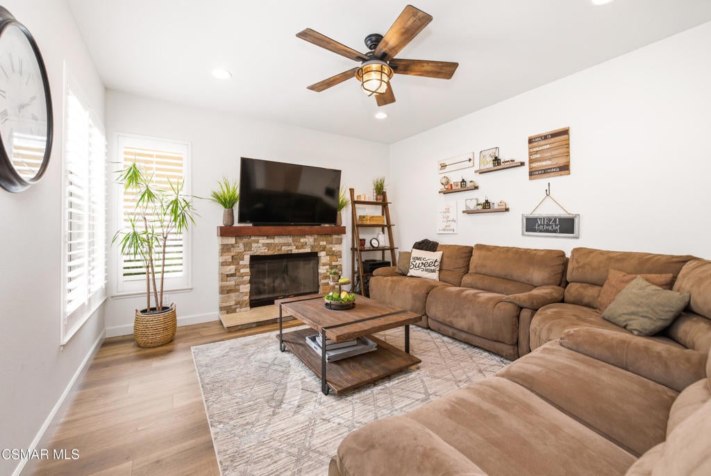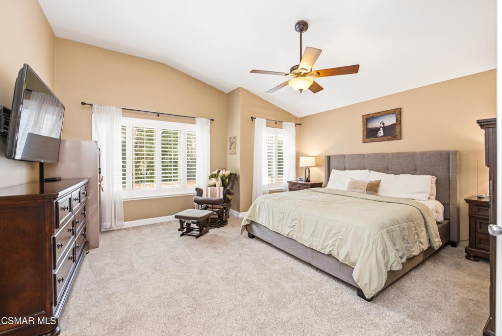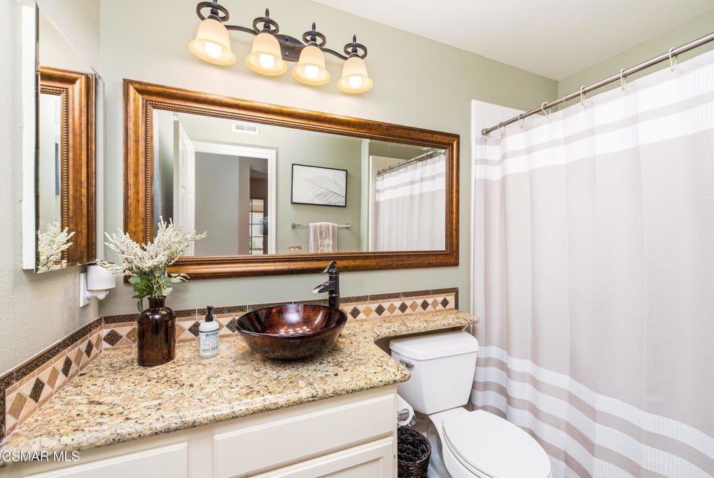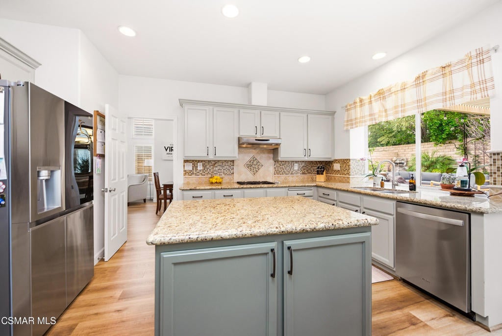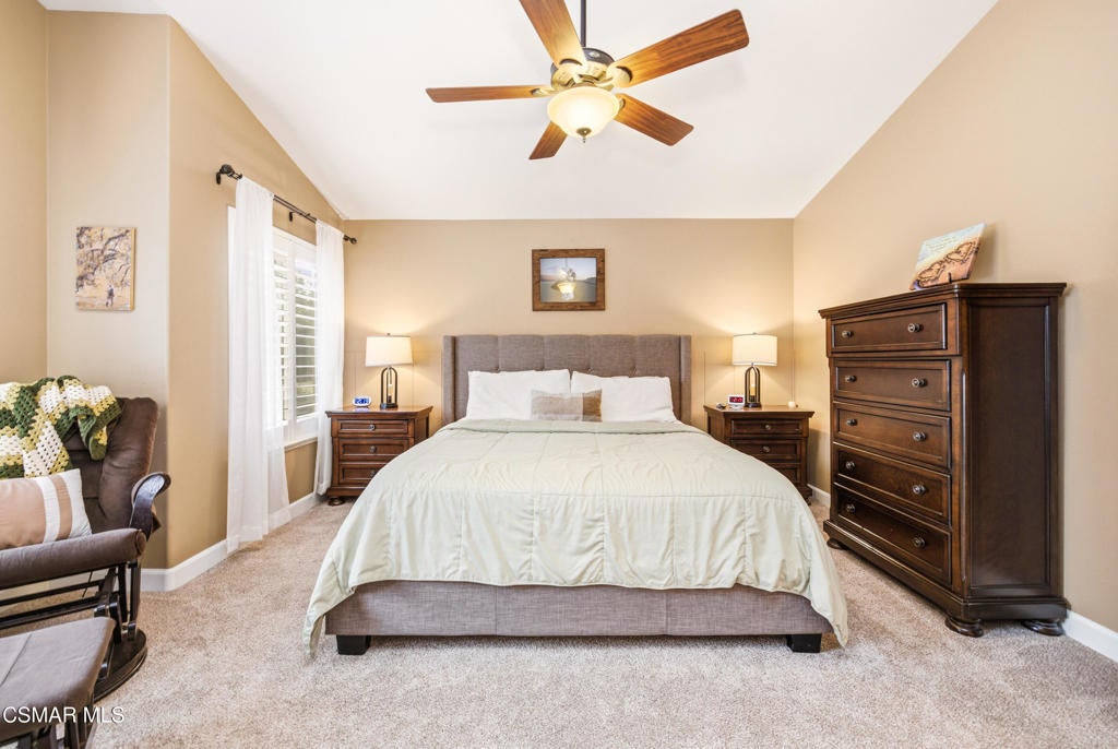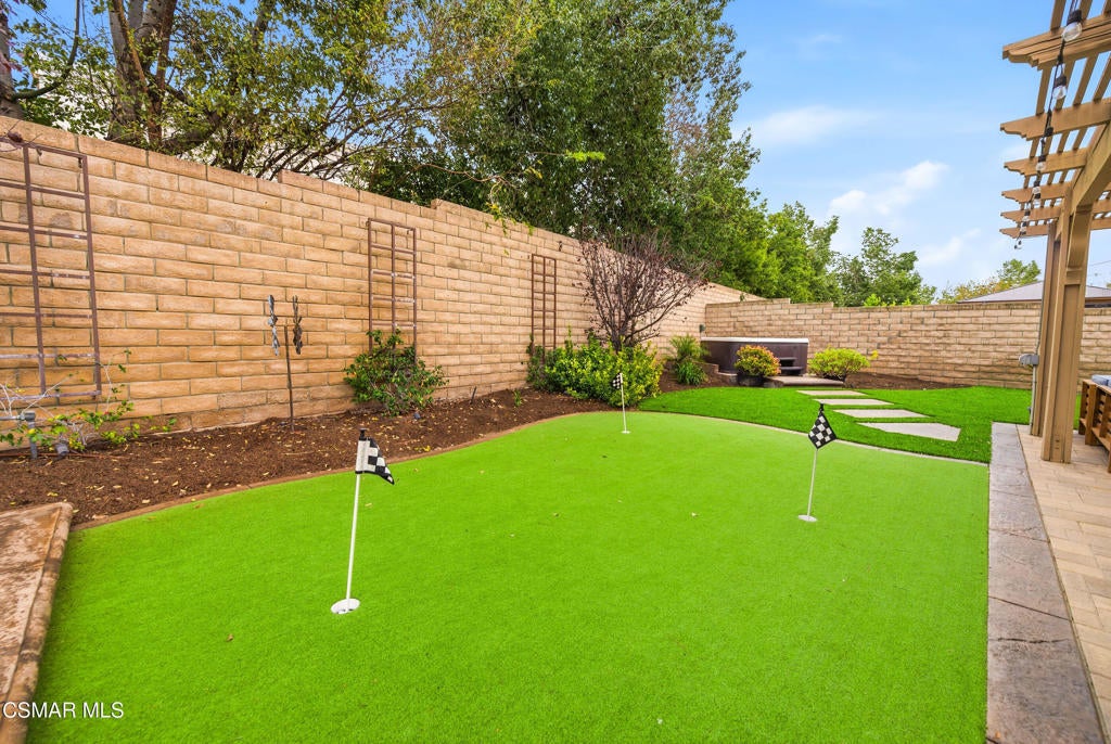 Refined Luxury Living with Owned Solar in the Heart of Simi Valley! Welcome to 2696 Santa Ynez Avenue, an exceptional 5-bedroom, 3-bathroom residence with a DOWNSTAIRS Bedroom and Bath offering 2,608 square feet of thoughtfully designed living space on a beautifully curated 7,000 square foot lot. This home blends comfort, sophistication, and effortless California indoor-outdoor living. From the moment you arrive, the custom stamped concrete and meticulously designed hardscapes create striking curb appeal and set the tone for what awaits inside. Step through the doors to discover a light-filled, expansive floor plan enhanced by vaulted ceilings and newer water-resistant laminate flooring throughout, delivering a fresh, modern aesthetic with seamless flow from room to room. The spacious living areas are designed for both elevated entertaining and everyday comfort. Home boasts a separate living and family room containing a beautiful stone fireplace with custom mantle, ceiling fan, and access to the rear yard. The well-appointed kitchen opens effortlessly to the main gathering spaces, creating an inviting atmosphere ideal for hosting. Kitchen hi-lights include modern light fixtures, stainless steel appliances (including double ovens), loads of cabinet and storage space, a center island, granite countertops with attractive tile backsplash, and a large eat in kitchen area. The downstairs is finished off by a bedroom currently used as an office, laundry area with cabinetry and an upgraded full bathroom. Bathroom has large vanity with beautiful sink and finishes, and a shower over tub set up. Upstairs and beyond, generously sized bedrooms provide privacy and flexibility, while the primary suite offers a serene retreat with ample space to unwind. Upstairs you will find newer carpeting with a long hallway separating the primary and secondary bedrooms. Primary bedroom is good-sized with a ceiling fan, room for a sitting area, walk in closet and direct access to your en-suite bathroom. Gorgeous bathroom has dual vanities with tons of counter space, tile flooring and separate soaking tub and standalone shower accentuated by the tile work. Secondary bedrooms are all good-sized containing ceiling fans, and mirrored closet doors. Hallway bath has dual vanities and a separate bath area. The backyard is a true private oasis. Enjoy evenings under the stars in the above-ground jacuzzi, entertain guests around the built-in BBQ, and appreciate the beautifully finished stamped concrete and hardscape design that transforms the outdoor space into a resort-inspired setting. Backyard also includes a covered patio space, putting green, fountain, and citrus trees. Adding to the home's value and efficiency is an owned solar system, offering sustainable living and long-term energy savings without compromise. Upgrades also include newer water heater, 220 electric in garage for car charging, shutters throughout the home. Ideally located near parks, schools, shopping, and dining, this exceptional residence offers the perfect balance of luxury, functionality, and lifestyle.