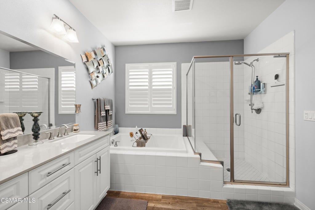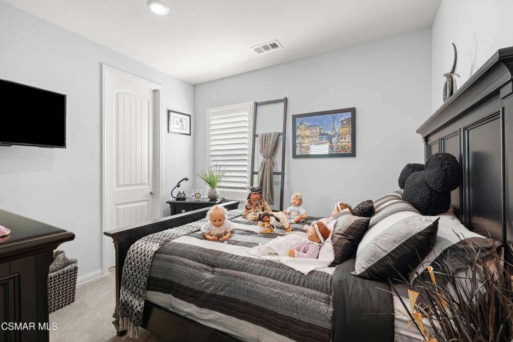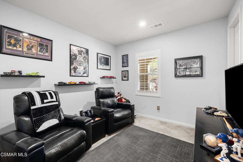 Welcome to 417 White Bark Lane, beautifully nestled against the foothills in the highly sought-after Woodlands community of Simi Valley. Built in 2016, this desirable single-story home offers owned, energy-saving solar panels and a light-filled open floor plan featuring 3 bedrooms, 2 bathrooms, plus a dedicated office that can easily be converted into a 4th bedroom. With over 2,400 sq. ft. of comfortable living space on a 7,400+ sq. ft. lot, the home enjoys scenic open-space views and no neighbors directly across the street. The open-concept great room flows seamlessly into the dining area and showcases a stunning center-island kitchen complete with granite countertops, abundant cabinetry, stainless steel appliances, a walk-in pantry, and a breakfast bar, ideal for both everyday living and easy entertaining. The spacious primary suite features his & her walk-in closets and a private en-suite bathroom with a dual-sink quartz vanity, soaking tub, and separate shower. Secondary bedrooms are generously sized with ample closet space and share a full hall bathroom. The low maintenance backyard includes a refreshing above-ground pool, patio area, and tranquil mountain views. Additional amenities include a direct access two-car garage, indoor laundry room, plantation shutters, recessed lighting, security system, and more. This is a wonderful opportunity to own a beautiful home in an exceptional community.