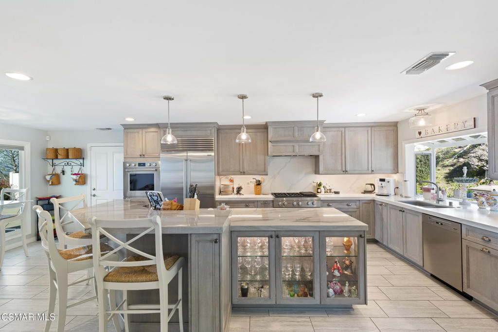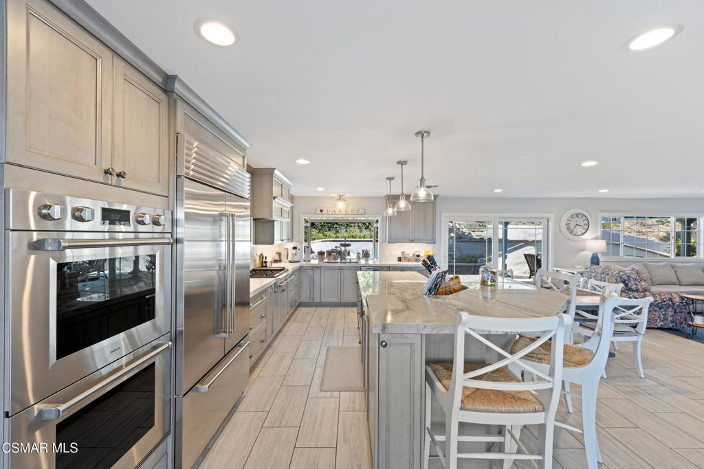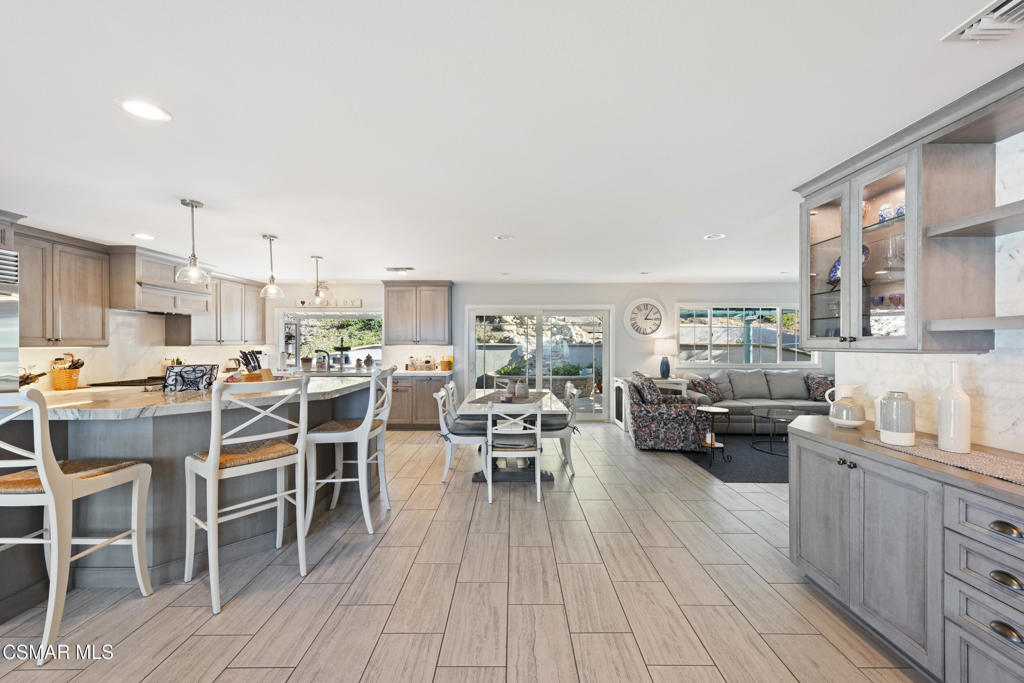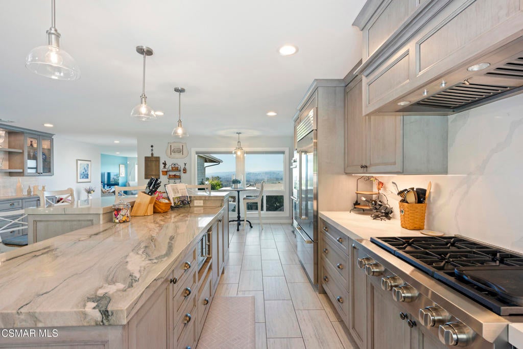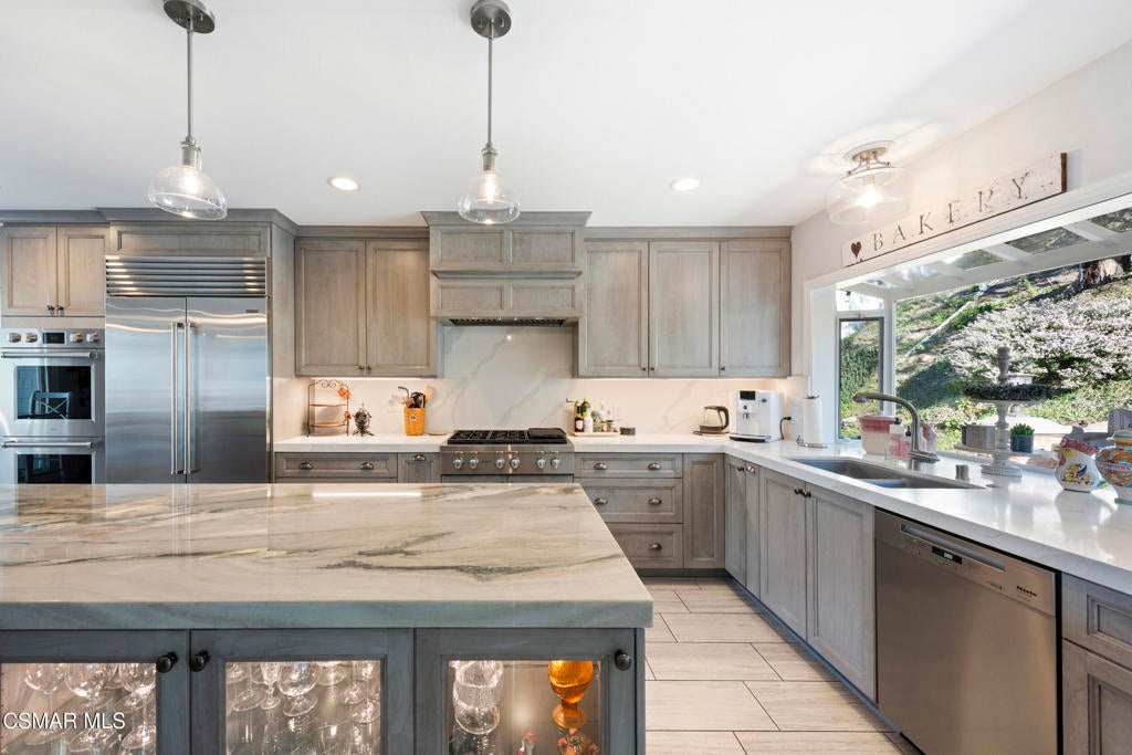 Magnifico! Sensational Craftsman single story with panoramic views is remodeled and turnkey and with no interior steps you won't believe your eyes! What an opportunity! Located in the coveted hillside neighborhood of Kevington, sits this glorious one story 3 bed/2 bath Craftsman masterpiece. Nestled atop a long driveway, rests over 2,200 SF of gorgeous remodel. The shake siding is absolutely stunning and the privacy, sublime. Inside, you'll find a great room open concept with a true gourmet kitchen. Quartz counters, Wolf cooking and a subzero refrigerator, what more could you ask for? The huge island features bar style eating and is food preparation perfection. The nook is ideal for the bistro table, while rectory style dining room can seat many. The living room in front features two walls of glass to enjoy the sunsets, a lovely fireplace and wonderful seating space. Just off the living room is the primary with a double door entry. Incredible views are yours from your bed and lest you fret over the primary suite size, don't! Both the bed and bath are very spacious with a monster steam shower, HEATED bathroom floors, and a massive walk in closet. The secondary bedrooms are perfect and the laundry room has a door to the large grassy yard. The patio is great for entertaining and the sunsets are beyond words. A newer HVAC system, plumbing, a two car garage - just bring your toothbrush - it's like a resort place here! Not to mention, great schools including nearby proximity to M.A.T.E.S. charter, wonderful shopping and close to The Lakes and The Thousand Oaks Civic Arts Plaza. Easy living with incredible mountain and skyline views and if you look hard, you can see the ocean.