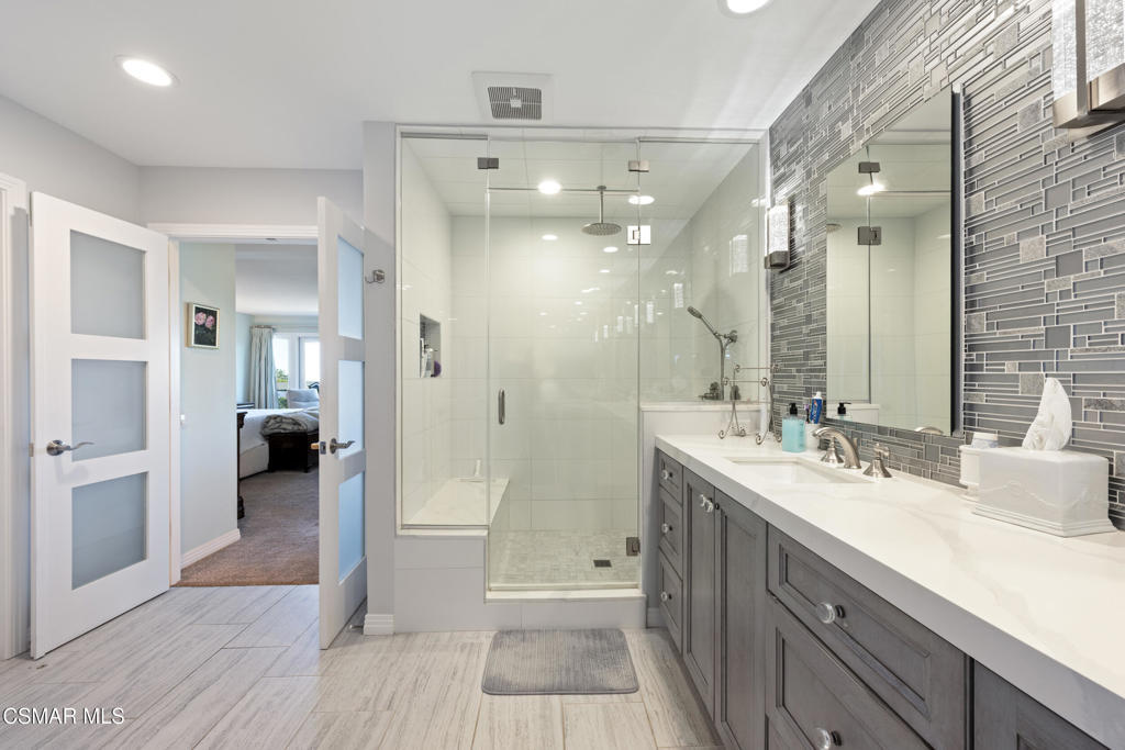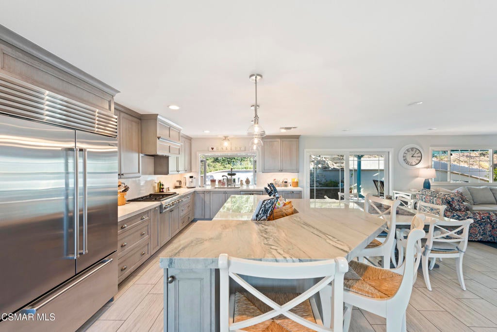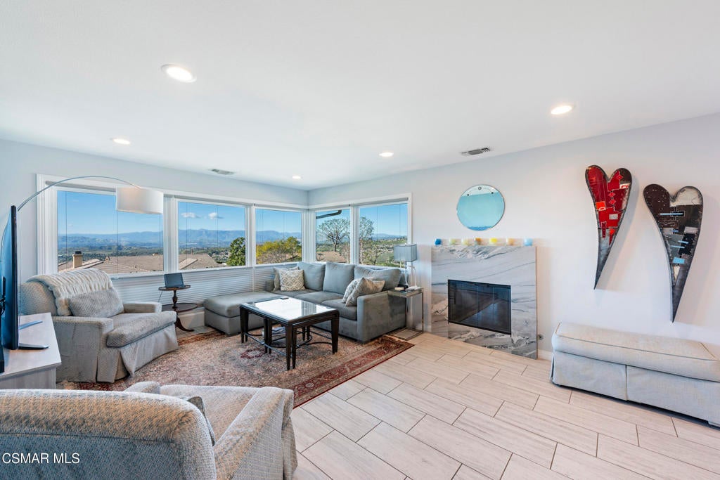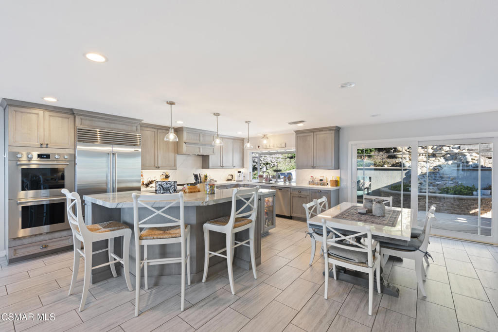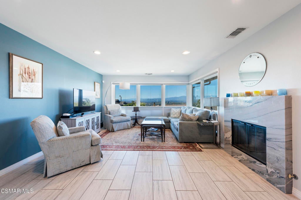 Magnifico! Sensational Craftsman single story with panoramic views is remodeled and turnkey and with no interior steps you won't believe your eyes! What an opportunity! Located in the coveted hillside neighborhood of Kevington, sits this glorious one story 3 bed/2 bath Craftsman masterpiece. Nestled atop a long driveway, rests over 2,200 SF of gorgeous remodel. The shake siding is absolutely stunning and the privacy, sublime. Inside, you'll find a great room open concept with a true gourmet kitchen. Quartz counters, Wolf cooking and a subzero refrigerator, what more could you ask for? The huge island features bar style eating and is food preparation perfection. The nook is ideal for the bistro table, while rectory style dining room can seat many. The living room in front features two walls of glass to enjoy the sunsets, a lovely fireplace and wonderful seating space. Just off the living room is the primary with a double door entry. Incredible views are yours from your bed and lest you fret over the primary suite size, don't! Both the bed and bath are very spacious with a monster steam shower, HEATED bathroom floors, and a massive walk in closet. The secondary bedrooms are perfect and the laundry room has a door to the large grassy yard. The patio is great for entertaining and the sunsets are beyond words. A newer HVAC system, plumbing, a two car garage - just bring your toothbrush - it's like a resort place here! Not to mention, great schools including nearby proximity to M.A.T.E.S. charter, wonderful shopping and close to The Lakes and The Thousand Oaks Civic Arts Plaza. Easy living with incredible mountain and skyline views and if you look hard, you can see the ocean.