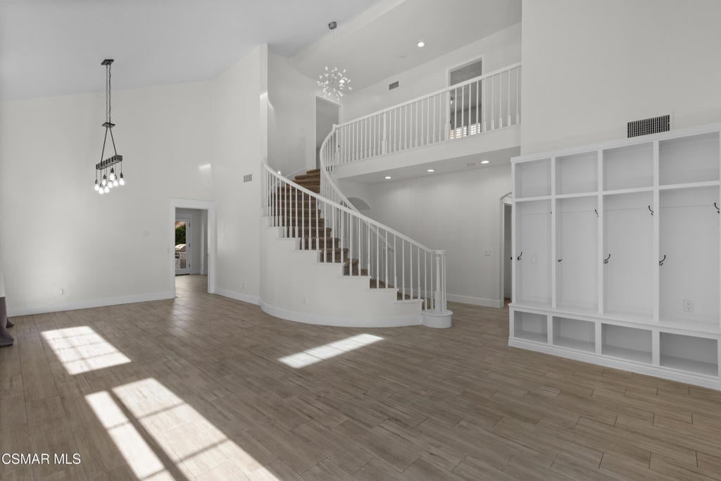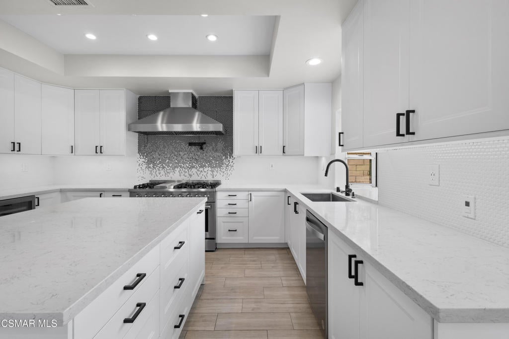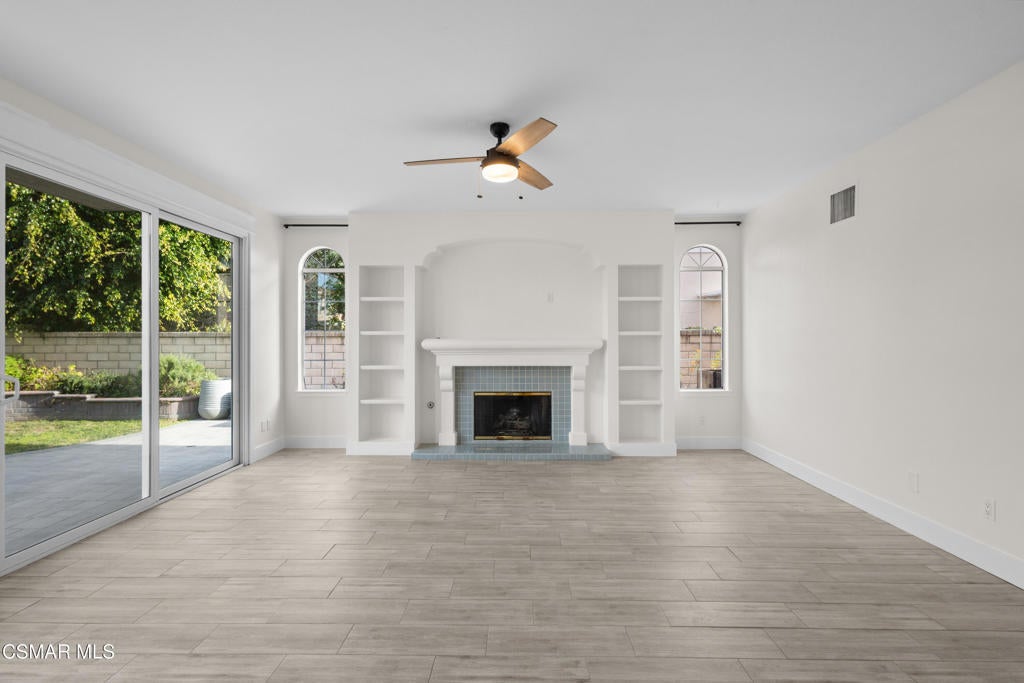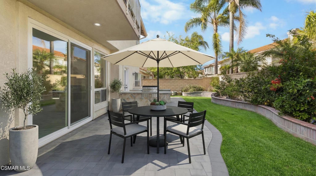 Nestled within the prestigious 24/7 guard-gated Rancho Conejo community, this beautifully remodeled home offers over 3,000 SF of thoughtfully designed living space in a serene and highly coveted setting. Owned Tesla solar panels with a battery wall provide exceptional energy efficiency, long-term savings, and peace of mind, complementing the home's extensive upgrades and turnkey appeal.Newly landscaped drought-tolerant grounds create strong curb appeal and welcome you inside, where soaring ceilings, expansive windows, and abundant natural light set an inviting tone. Custom lighting and built-ins at the entry make a striking first impression, while fresh interior paint and recently serviced appliances enhance the home's move-in-ready feel. The flexible floorplan features 4 bedrooms plus an oversized bonus room, offering ideal spaces for work, play, or guests. A downstairs bedroom with a built-in Murphy bed and an adjacent remodeled bathroom with walk-in shower provide excellent functionality for visitors or a home office.The fully renovated chef's kitchen is both beautiful and functional, showcasing quartz countertops, custom backsplash tilework, abundant cabinetry and pantry storage, and a large center island with built-in microwave. A Thor professional gas range with matching vent hood and pot filler anchors the stainless-steel appliance suite, while a bright window above the sink overlooks the backyard. The kitchen opens seamlessly to the family room with fireplace and direct patio access, creating an effortless flow for everyday living and entertaining.Upstairs, the primary suite is a private retreat with wood-like flooring, a designer painted accent wall, a private balcony, and 2 separate walk-in closets. The spa-inspired primary bathroom features custom tilework, an oversized walk-in shower, freestanding soaking tub, dual-sink vanity, towel warmer, and elegant fixtures. 2 additional upstairs bedrooms share a beautifully renovated hall bathroom, and an oversized bonus room with custom built-ins offers flexible and fun space for media, work, or play.The backyard is designed for entertaining, complete with a built-in BBQ area, 2 side yards, fruiting trees, and raised garden beds. An attached 3-car garage with direct access adds everyday convenience. Residents enjoy access to resort-style pools, a nearby park, and a prime location close to hiking and biking trails, shopping, dining, and acclaimed CVUSD schools. 1721 Blossom Court is truly the perfect place to call your home.