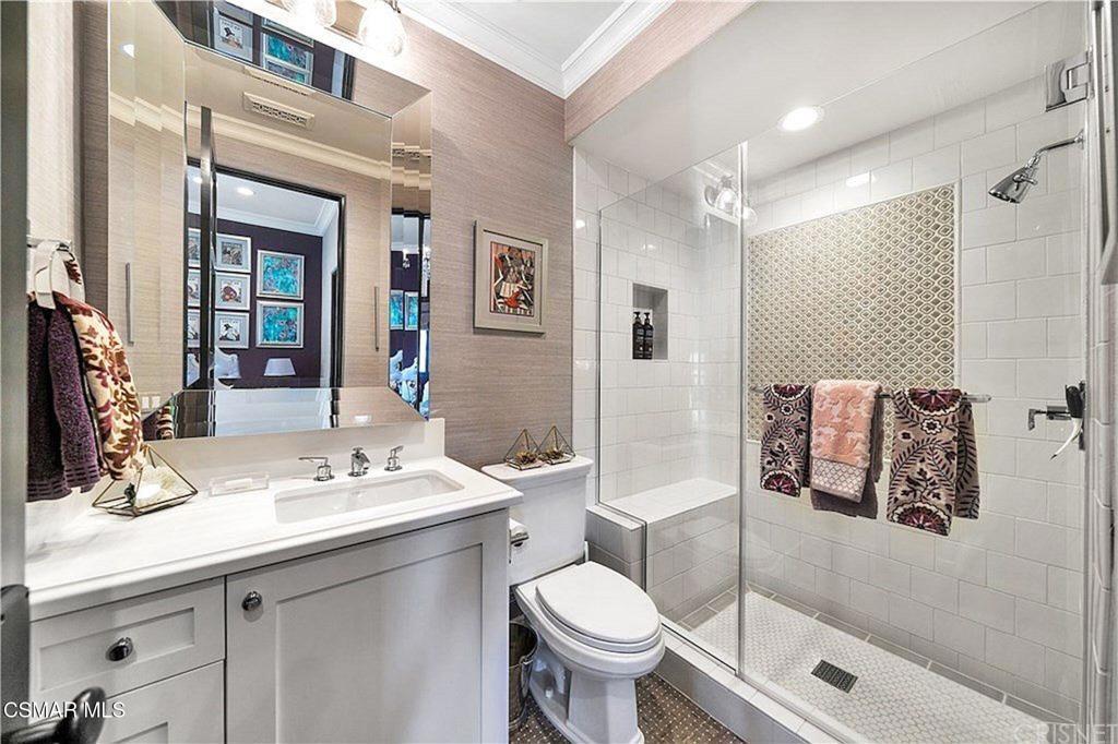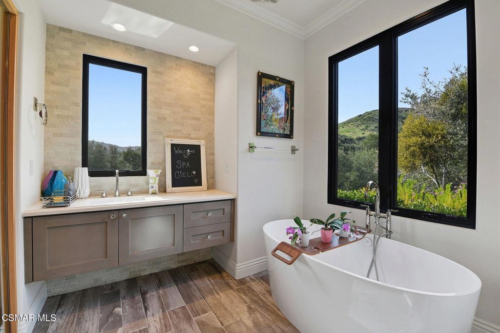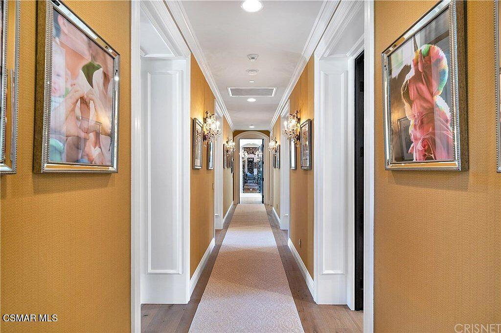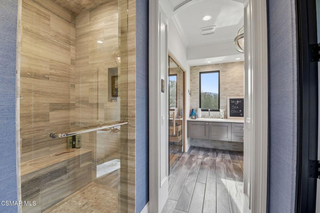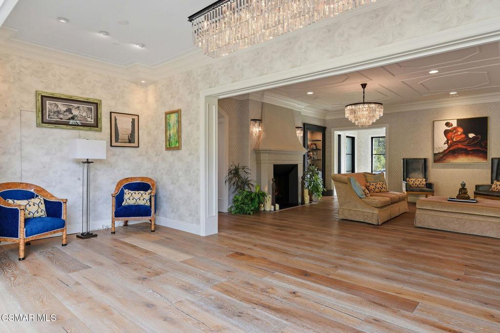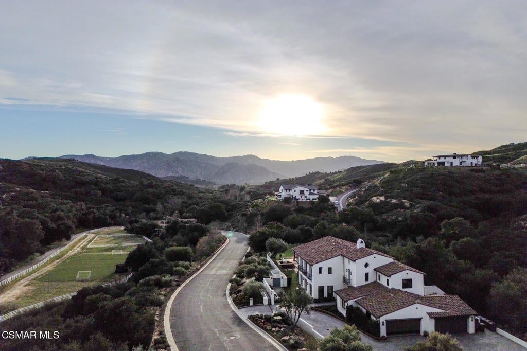 Within the ultra-private, guard-gated enclave of Country Ridge--comprised of only seven distinguished estates--this exceptional residence offers a rare blend of discretion, design, and natural beauty. Set on 8.74 acres of scenic mountainside terrain, the property provides a meaningful sense of space and separation while remaining thoughtfully integrated into its surroundings. Ideally located just moments from the 101 freeway for effortless access, yet tucked quietly behind two separate gates--including its own private entry--the estate delivers the level of privacy sought by those who value true retreat.Resting against the foothills of the Santa Monica Mountains, the home enjoys a dramatic natural backdrop, where rolling landscape and canyon views create a feeling of calm and permanence. The setting offers the beauty and serenity of mountain living while remaining close to the refined dining, boutiques, and conveniences of Calabasas, as well as the coastline of Malibu.Designed as a sanctuary, the estate was conceived to foster tranquility and elevated daily living. The grounds unfold organically around the residence, with serene Zen gardens, curated outdoor spaces, and peaceful pathways that complement the natural topography. Rather than overwhelming, the acreage enhances privacy and frames the home in a way that feels intentional and harmonious.Inside, the interiors--masterfully curated by a renowned celebrity designer--reflect a sophisticated yet livable old hollywood aesthetic. Rich textures, custom finishes, and architectural detailing create warmth and refinement throughout. Every material selection and design element was deliberately chosen; nothing was overlooked in achieving a cohesive and elevated result. The main living areas balance scale with intimacy, anchored by a striking fireplace feature and enhanced by custom ceiling treatments and millwork. Formal entertaining spaces transition effortlessly into relaxed gathering areas, all opening to terraces that capture expansive views and invite seamless indoor-outdoor living.At the heart of the home, the chef's kitchen combines beauty with performance. Appointed with premium Wolf, Sub-Zero, and ASKO appliances, and supported by a full catering kitchen and butler's pantry, it is designed to accommodate both refined entertaining and everyday ease. Adjacent living spaces extend naturally to the outdoor areas, reinforcing the relaxed sophistication of the estate.Upstairs, five ensuite bedrooms offer comfort and privacy, along with a library and additional lounge space. The primary suite is a peaceful retreat, featuring a private balcony overlooking the surrounding hills and a spa-inspired bath with soaking tub, steam shower, and curated stone finishes.Outdoors, a resort-style pool anchors the experience, accompanied by a built-in BBQ pavilion, manicured turf, and multiple seating areas positioned to embrace the mountain backdrop. The setting feels secluded and grounded--an environment that offers both openness and protection.This is not simply a residence--it is a mountainside sanctuary where architecture and landscape exist in quiet balance. A private, gated retreat designed for those who seek refined living, natural beauty, and uncompromising discretion.