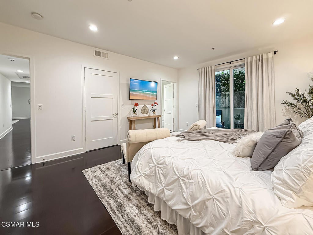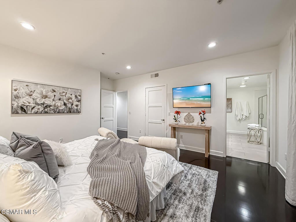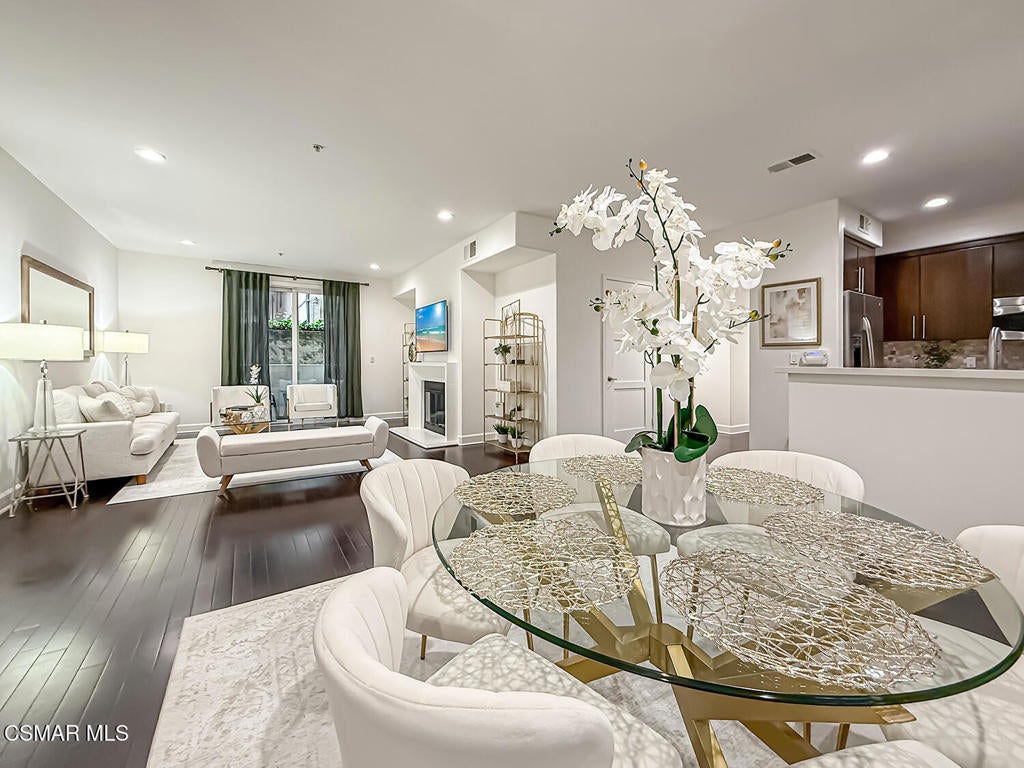 Tucked into a prime pocket of Studio City, this stylish 2009-built condominium offers the best of convenience and comfort--just moments from Whole Foods, Erewhon, the Shops at Sportsmen's Lodge, and Beeman Park. With only one shared wall, the home lives more like a private residence than a typical condo.Step inside to an expansive open-concept layout where the living, dining, and kitchen areas flow seamlessly together--ideal for entertaining or simply enjoying everyday life. Soaring ceilings, recessed lighting, oversized doors, and generous windows create an airy, light-filled atmosphere that enhances the home's spacious feel.The modern U-shaped kitchen is both functional and refined, featuring Caesarstone countertops, stainless steel appliances, abundant prep space, and ample cabinetry for storage. Rich wood flooring runs throughout, leading to a beautifully appointed primary suite complete with a large walk-in closet and a spa-inspired bath offering dual vanities, a jetted soaking tub, and a separate walk-in shower.Two additional bedrooms provide comfortable space for guests, family, or a home office, along with a well-sized shared bathroom. A dedicated in-unit laundry room adds everyday convenience and extra storage--an often-overlooked luxury.Outside your front door, a private entry courtyard creates the feeling of your own personal retreat--perfect for morning coffee or winding down in the evening. The building also features secure lobby access, subterranean tandem parking with EV charging capability in the garage, a private storage locker, and abundant guest parking for visitors.All of this, just minutes from Ventura Boulevard's dining, shopping, and entertainment. A rare opportunity to enjoy privacy, location, and modern amenities in the heart of Studio City.