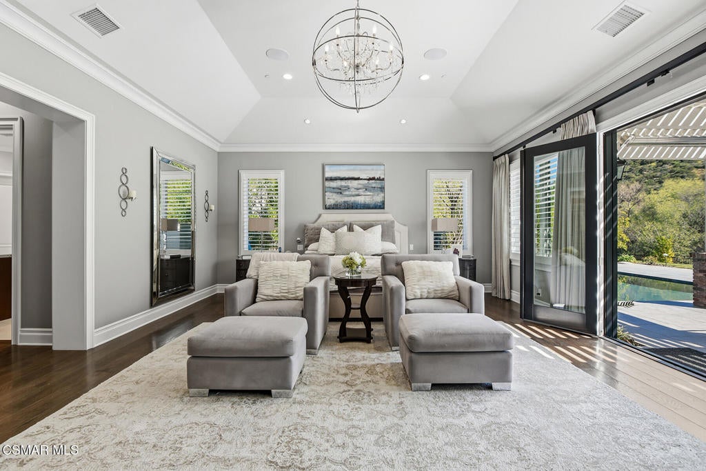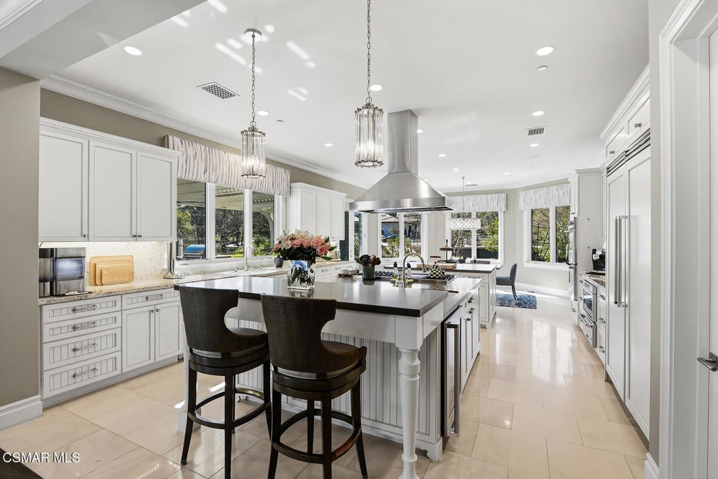 Set along the tranquil Lake Sherwood inlet, behind the guard gates of Sherwood Country Club, this single-story California Ranch residence offers a lifestyle few ever experience. With the lake, golf course, and the Santa Monica Mountains as its backdrop, the setting feels private, peaceful, and completely one of a kind.Built in 2016 and spanning nearly 5,000 square feet, the home features four bedrooms and four and one-half baths, all thoughtfully designed on one level. Light-filled living spaces flow effortlessly from the gourmet kitchen and breakfast room to the expansive great room, where breathtaking inlet, lake, and golf course views become part of everyday life. The primary suite serves as a serene retreat, offering comfort, privacy, and a true sense of escape.Designed for exceptional indoor-outdoor living, the property includes a resort-style pool and spa, a grassy yard, and a fully equipped outdoor kitchen and fireplace--perfect for entertaining or quiet evenings at home. A shared dock provides direct access to Lake Sherwood, ideal for boating, paddleboarding, kayaking, or leisurely sunset cruises. From morning walks to afternoons on the water and evenings at the club, this home captures the very best of the Sherwood lifestyle.Finished with a four-car garage, Lutron lighting, and Savant home automation, this is a rare single-story dream home in one of Sherwood's most coveted and irreplaceable settings.