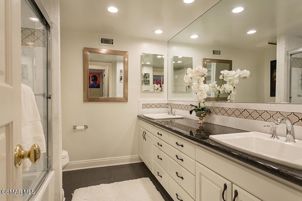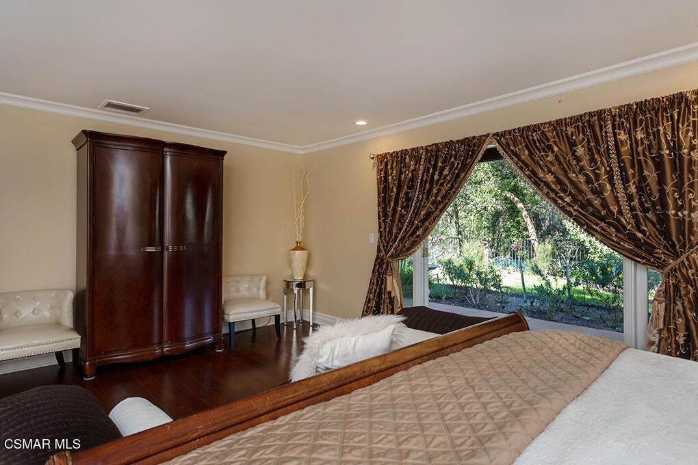 Paradise in North Ranch !!! This luxurious single story custom-built estate located right on the arroyo. Spanning over 3493 SqFt, the open floor plan encompasses five spacious bedrooms with Three bathrooms. Very large open Family room with fireplace that opens to open patio with pool and spa which overlooks peaceful arroyo. Tremendous Chef's Kitchen that flows through to the formal dining room, with view of rear yard and arroyo. Step down living room with massive stone fireplace, Divine master bedroom suite presents crown molding, massive windows, a open patio and an opulent en-suite bath with a soaking tub in marble, granite counter tops and separate glass shower. The carefully upgraded and remodeled interior is move in ready.
