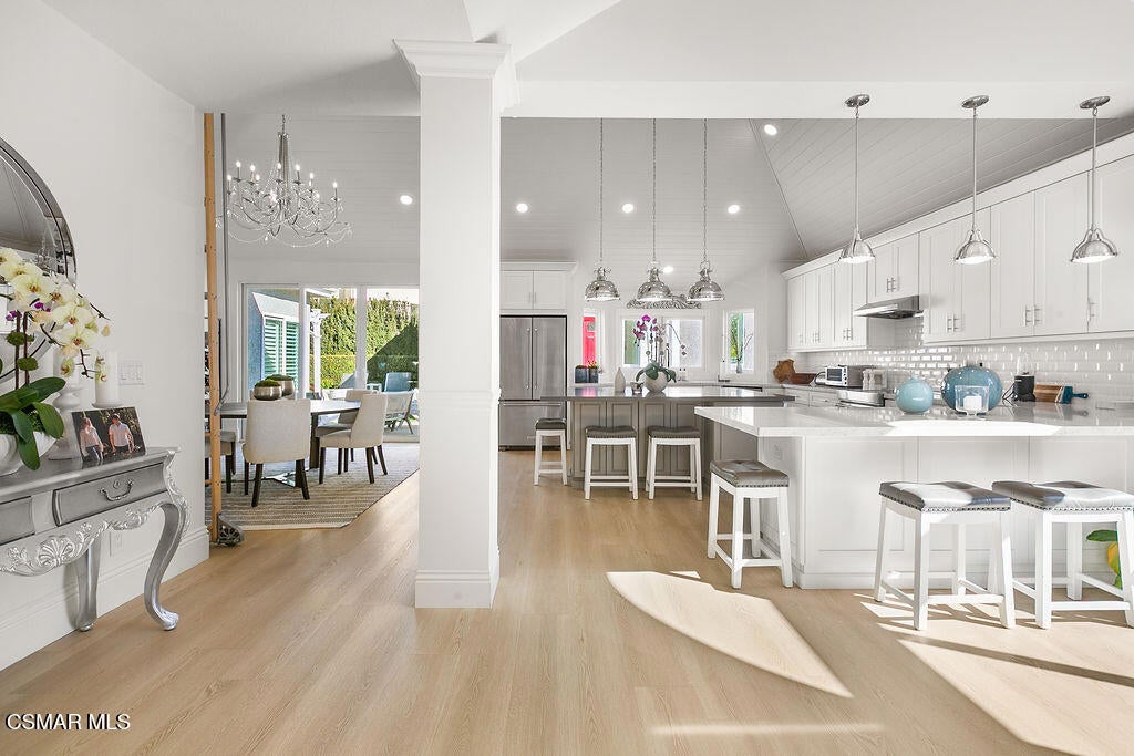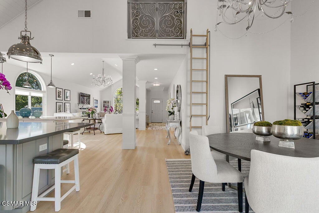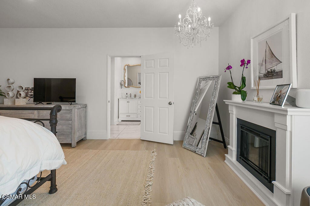Absolutely stunning Lang Ranch single-story home with matching ADU on a sweeping corner lot! Owner spared no expense in re-engineering the original floorplan and adding the highest quality fixtures and finishes. Enter to find light plank flooring, exquisite chandeliers, designer paint, cathedral ceilings, Milgard dual-paned windows, electric roll-up window covers, and recessed lighting throughout. Spectacular gourmet kitchen boasts quartz countertops, island with countertop seating, white shaker cabinets, pendant lighting, designer tile backsplash, pass-through serving window, and stainless-steel appliances, including induction oven. The light-n-bright Great Room features an electric fireplace and exquisite, custom leaded-glass window. Adjacent to the kitchen is also a dining area with a 190 sq ft custom loft for storage or reading nook, accessed by a charming sliding ladder. Exit through bi-fold retractable doors to entertain in the wrap-around yard, complete with large side lawn, patio with huge gazebo, and firepit. Large primary suite has quartz dual vanity, custom shower stall, large walk-in closet, and access to back patio. Two bedrooms with custom closets share a full bathroom with gorgeous walk-in shower, dual sinks, and separate soaking tub. A secluded fourth bedroom has an equally sophisticated full bathroom, electric fireplace, and can be closed off to make a private guest suite. Beautiful powder room and indoor laundry room, with ample storage and commercial-grade washer and dryer, complete the main house. The 624 sq ft ADU, built in 2023, is a dream! From its private, gated entrance off of Hilary Court, enter to museum ceilings and a cozy living room accented with an electric fireplace. The ADU's full kitchen has top-of-the-line appliances and built-in pantry. Two guest bedrooms share a gorgeous hall bathroom. Another standard-size washer and dryer is located at the end of the hall. This hilltop corner lot oozes curb appeal with cobblestone driveway & walkway and a front picket fence with Spring-blooming pink roses. The property has also been upgraded with owned solar panels, security lights & system, Starlink high-speed internet system, tankless water heaters, and heightened privacy walls in the backyard. Two-car finished garage with epoxy floors, shelving, and an additional 418 sq ft of attic storage - accessed by a pull-down ladder. Home is zoned for coveted and award-winning Lang Ranch Elementary and is close to the school, Pederson Park, hiking/biking trails, freeway access, and great shops and restaurants. No HOA. Unique and SPECTACULAR custom Lang Ranch home!