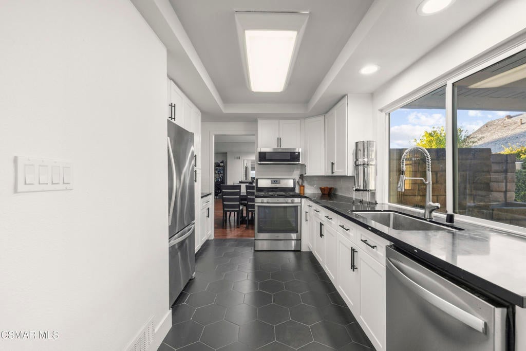 Located in the heart of Central Simi Valley, 2371 Larch St offers over 3,000 square feet of spacious living with a flexible floor plan designed for comfort and functionality. A dramatic two story entry opens to expansive living and dining areas filled with natural light, flowing seamlessly into the inviting family room and kitchen, creating an ideal setting for both everyday living and entertaining.The kitchen offers generous counter space, ample cabinetry, and a clear view of the backyard, making it the true center of the home. Upstairs, the oversized primary suite provides a private retreat with a walk in closet and an updated bath featuring dual vanities and modern finishes.A major highlight of this property is the expansive upstairs bonus room with a large closet that can easily function as a fifth bedroom. Whether you need additional sleeping space, a private office, gym, media room, or multi generational setup, this versatile room significantly enhances the home's functionality and long term value.Step outside to your private backyard oasis complete with a sparkling pool and patio area, perfect for summer gatherings, relaxing weekends, and enjoying Simi Valley's year round sunshine. The yard offers both usable space and privacy, creating a true indoor outdoor lifestyle.Situated in a quiet, established neighborhood close to parks, shopping, dining, and convenient freeway access, this home combines size, flexibility, and a resort style backyard in one of Central Simi Valley's most desirable locations.