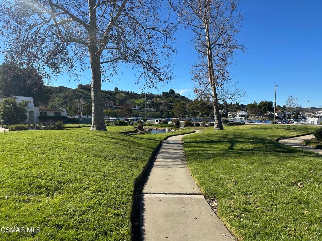 Light-n-bright 2 BD + 1.5 BA townhome ideally located in the picturesque Summershore community, adjacent to the Westlake Lake, The Landing restaurants & shops, and hiking trails. Ceramic stone tile entry, NEW laminate floors downstairs, recessed lighting, smooth ceilings, neutral paint. Neutral carpet on 2nd floor. This remodeled unit has a beautiful kitchen with stone tile counters, freshly-painted white cabinets, stainless steel refrigerator, range, & microwave. The dining area has 2 sets of sliding doors that open to a private patio. The large living room features a gas fireplace. The bathrooms are complete with custom vanities with new hardware, updated fixtures, and newer flooring. The primary bedroom features a charming balcony, mirrored closet doors, and recessed lighting. Second bedroom is also flooded with natural light. 2-car immaculate, attached garage. Rent includes water and trash services. Community pool & spa and greenbelts which lead to a charming waterfall and stream!
