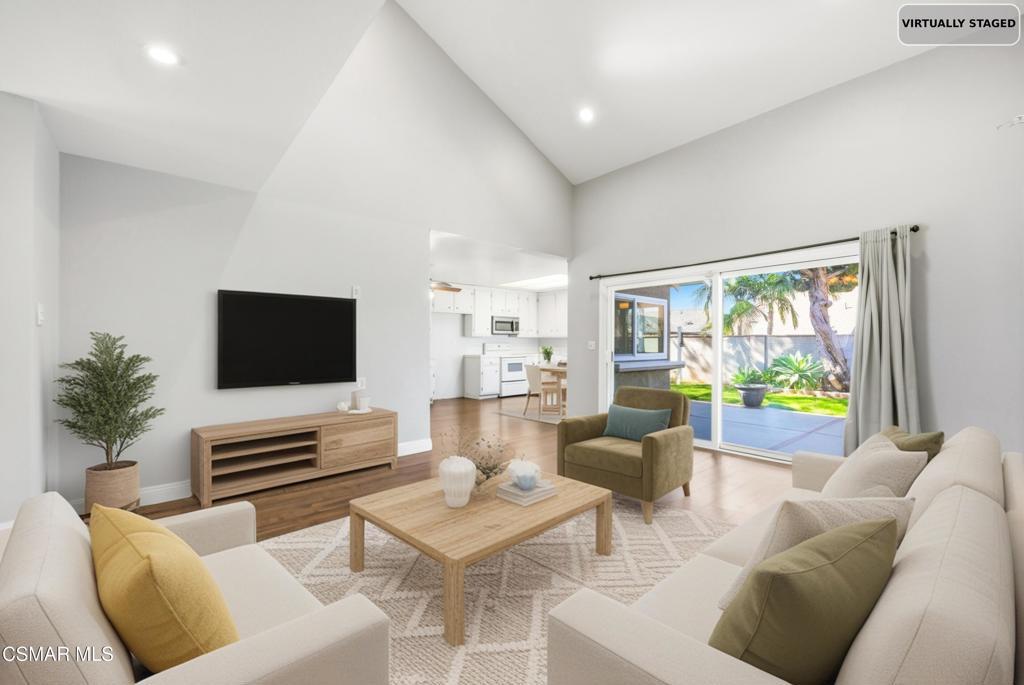 Clean, bright, updated, spacious, and ideally located, this home on the East end of Simi Valley, offers comfort with everyday convenience. Situated a short distance from the freeway, this property is perfect for the commuter. Other perks around where the house sits are nearby grocery stores, restaurants, parks, and fantastic schools. Once inside, the vaulted ceilings immediately stand out, enhancing the abundant natural light and creating a bright, inviting atmosphere. Currently, the kitchen offers ample cabinet and counter space, but it provides the perfect opportunity to personalize and make it your own. Both the living and family rooms offer spacious flexibility and plenty of room for entertainment. The primary bedroom also features vaulted ceilings, double closets, and a private sliding door leading to the backyard. Both bathroom showers have been remodeled with beautiful porcelain tile, including a striking stone-finished shower floor in the primary. The hallway bathroom has been fully remodeled. Additional highlights include wood-like flooring throughout, recessed lighting, dual-pane windows, insulated garage with ventilation, four total bedrooms, nearly 1,900 square feet of living space, and an approximate five year old HVAC system including a 4-ton condenser. The backyard strikes a great balance of being spacious enough to entertain and enjoy, yet manageable for easy maintenance. The above ground spa is approximately one-year-old and is perfect place to relax under the stars. Homes with these upgrades, in this area, with this much to offer do not come up often. Be sure to come see this one before it is too late!