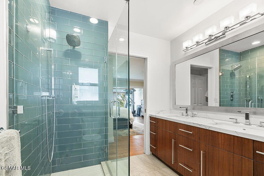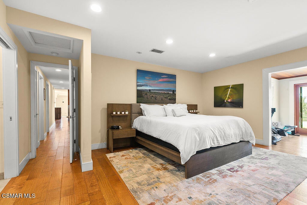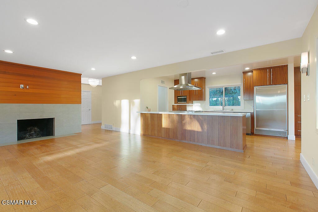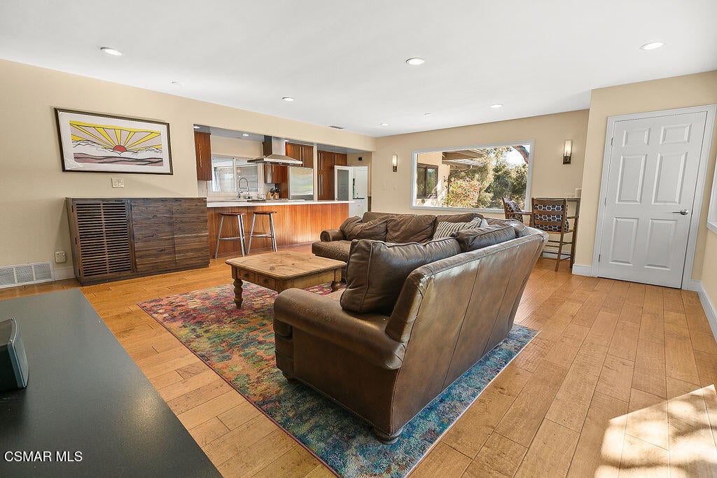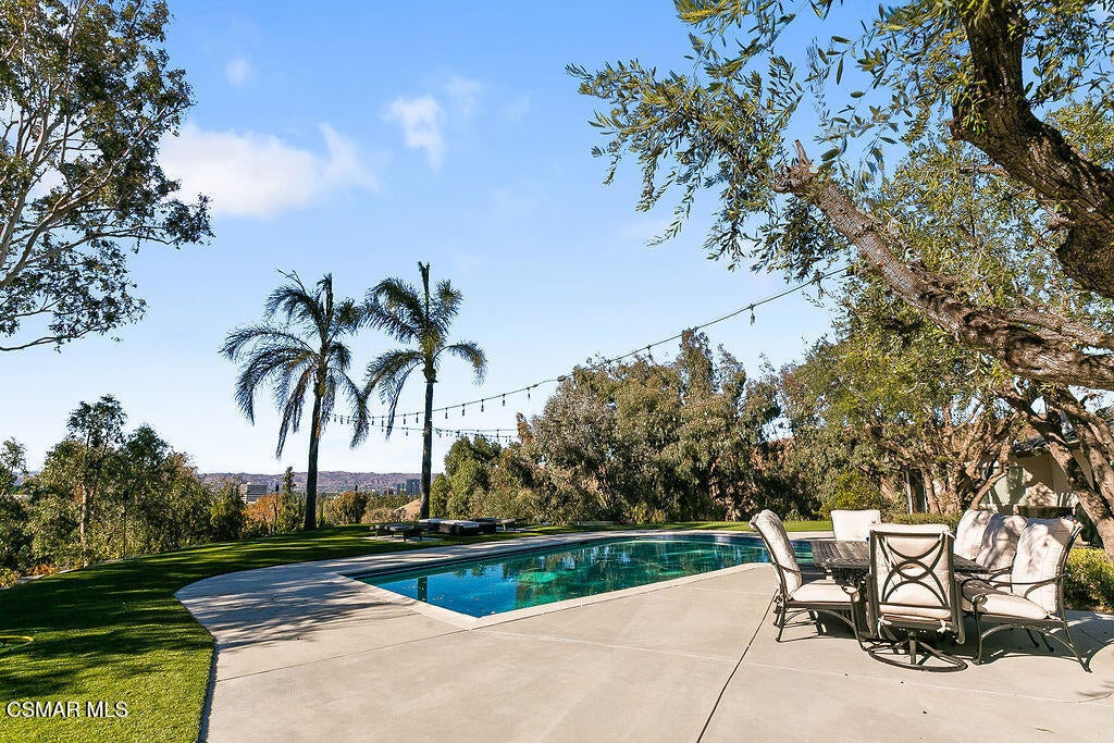 Discover your dream home with breathtaking views! Nestled in the heart of Woodland Hills, this meticulously updated mid-century modern residence sits on a private acre lot, offering stunning panoramic vistas of the San Fernando Valley. Located just South of the Blvd on a quiet, exclusive road, this single-story, gated property offers the perfect balance of seclusion and convenience, with top shopping and dining just minutes away.The home features an open-concept design that effortlessly blends indoor and outdoor living, making it ideal for entertaining. The chef's kitchen boasts elegant mahogany cabinetry, Caesarstone countertops, a Bluestar range, and a Subzero fridge, complemented by separate dining and breakfast areas. Dual fireplaces add warmth and charm to both the family and living rooms.The spacious master suite includes a luxurious en-suite bath with Carrara marble finishes and a bonus sunroom--perfect for use as an office or private retreat. Step outside into the expansive backyard, where you'll find mature trees, a cozy fire pit, and a sparkling pool, all framed by incredible sunset views that will take your breath away.Other highlights include gleaming maple floors, high-end fixtures throughout, brand new windows, and a full-sized laundry room. With easy access to shopping, restaurants, and beaches, this home truly offers the best of both worlds. A must-see to fully appreciate the lifestyle it offers--and of course, those views!