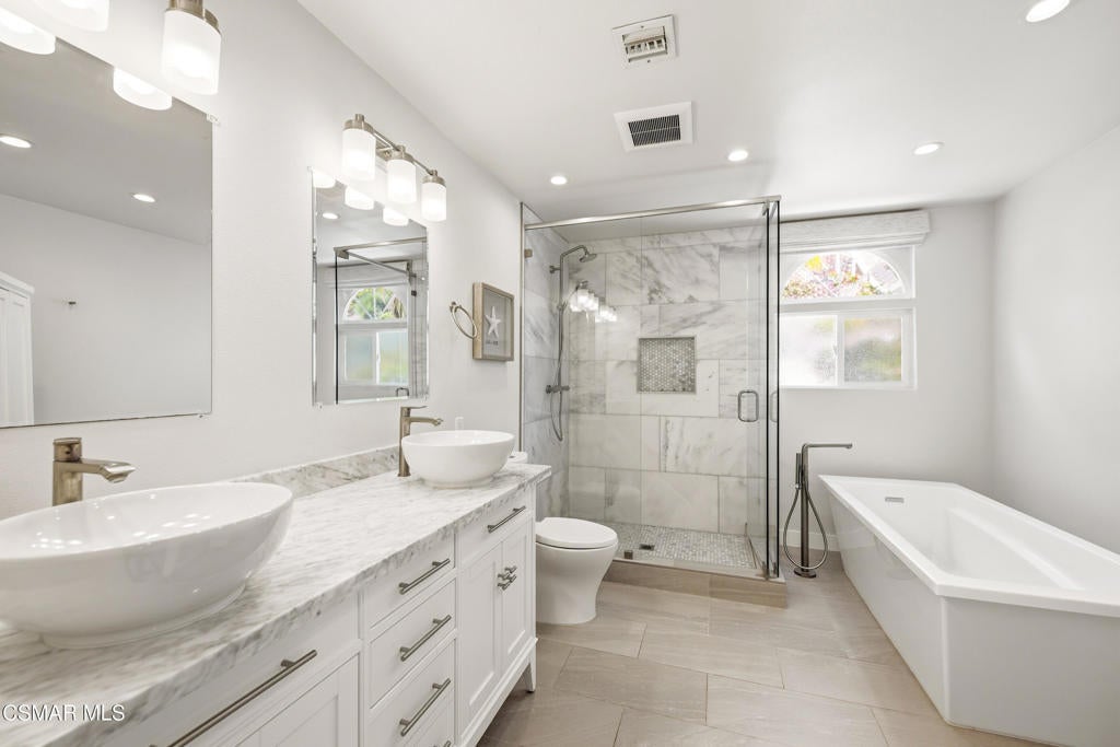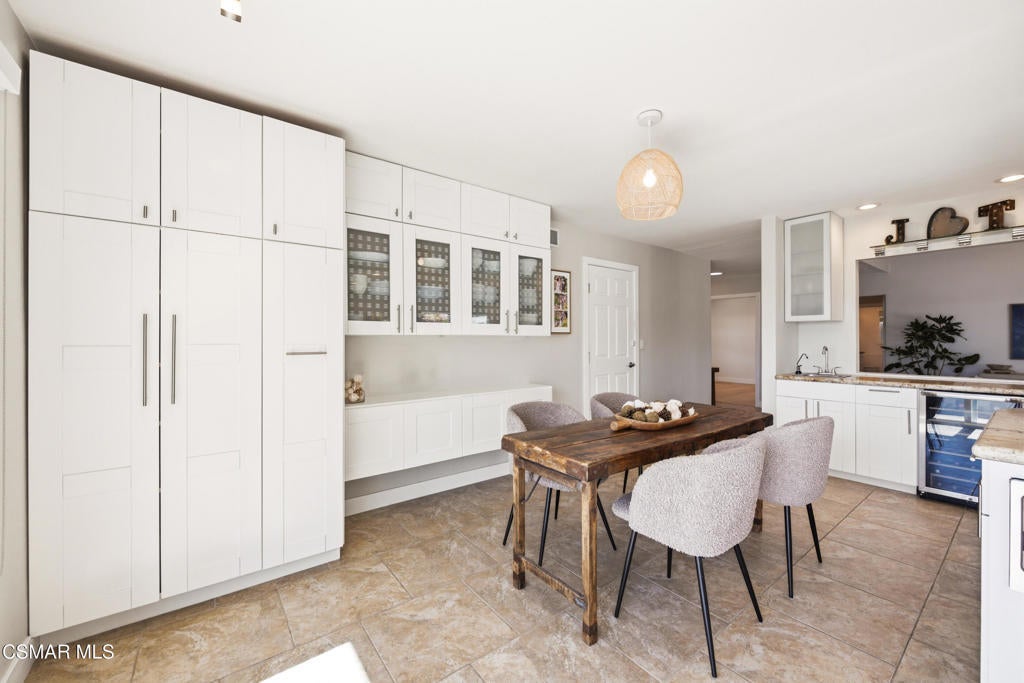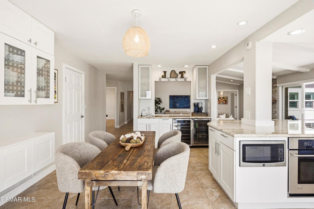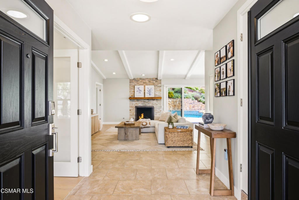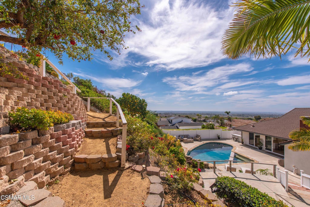 Located on a quiet cul-de-sac in Ventura's highly desirable Clearpoint neighborhood, this beautifully updated single-level 4-bedroom home captures sweeping panoramic ocean, coastline, and Channel Islands views from its elevated 16,552-square-foot lot. The setting blends privacy and convenience, positioned steps from the Harmon Canyon Preserve's premier hiking and biking trails and only minutes from Arroyo Verde Park, Ventura's beaches, and the shops and restaurants of downtown. A double-door entry opens to bright, airy interiors where vaulted ceilings, expansive windows, and recessed lighting enhance the natural light and frame the home's remarkable views. The living room centers around an updated stone-surround fireplace and connects directly to the backyard through wide sliding glass doors, creating an effortless indoor-outdoor flow ideal for coastal living. The kitchen is filled with natural light and features granite countertops, crisp white cabinetry, stainless steel appliances, and a generous workspace oriented toward the view corridor. The adjacent dining area offers comfortable everyday living and ease for entertaining. A well-appointed wet bar, complete with a refreshment refrigerator and wine fridge, enhances the home's hosting capabilities. Wood flooring in select areas, custom window treatments, and thoughtful built-ins contribute to the home's turnkey appeal. The primary suite provides a peaceful retreat with an elegantly updated bathroom showcasing a freestanding soaking tub, dual vessel sinks with marble countertops, and a beautifully tiled walk-in shower with a glass enclosure. The additional bedrooms offer flexibility for family, guests, office space, or creative use, complemented by a cedar-paneled closet and practical storage solutions throughout. Upgraded systems further elevate the property, including an owned reverse osmosis drinking water system, an owned whole-house water softening system, 200 amp electrical panel, EV charging station, and a dual tankless water heater setup designed for efficiency and comfort. Outside, the home expands into a private resort-style oasis with a large pebble-finished pool and spa that takes full advantage of the ocean views. Recently updated pool equipment includes a variable-speed pump, cartridge filter, ozone generator, and an upgraded controller that allows remote monitoring and operation from a phone or web browser. Multiple patio areas offer inviting spaces for lounging and entertaining, while an elevated viewing pavilion provides a stunning vantage point for sunsets over the Pacific. The terraced yard includes an herb garden and a diverse assortment of mature fruit trees--lemon, orange, pomegranate, grapefruit, avocado, peach, apple, plum, plumcot, and passion fruit vines--creating both beauty and abundance throughout the seasons. Low-water landscaping, a thoughtful irrigation and drainage system, vinyl fencing, a cabana shed, and a separate storage shed with shelving add ease and functionality. Within the boundaries of desirable Ventura schools and surrounded by natural open space while remaining minutes from the coastline, this single-level 4-bedroom home represents a rare opportunity in Clearpoint. With panoramic ocean and island views, an expansive lot, upgraded systems, and a true indoor-outdoor lifestyle, it stands out as one of Ventura's most compelling coastal offerings.