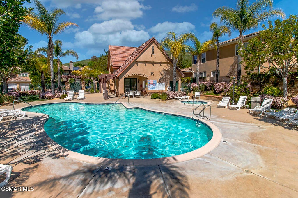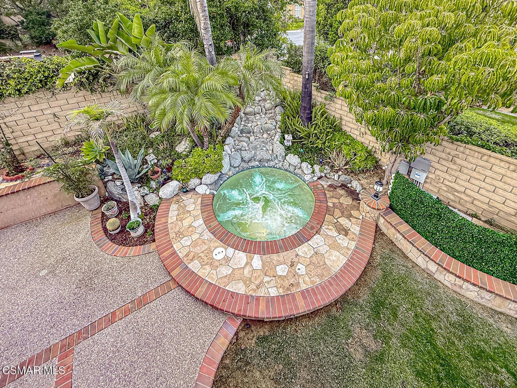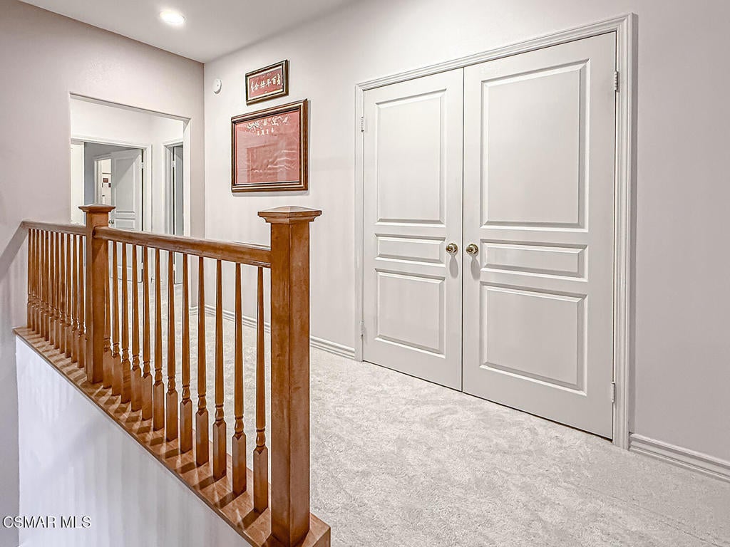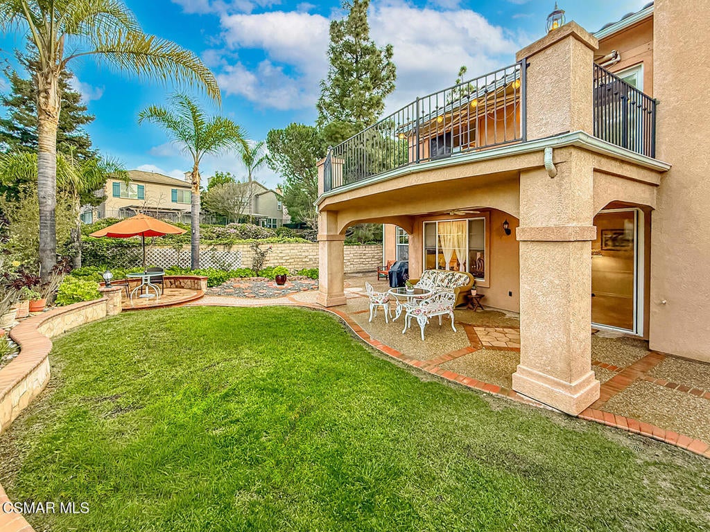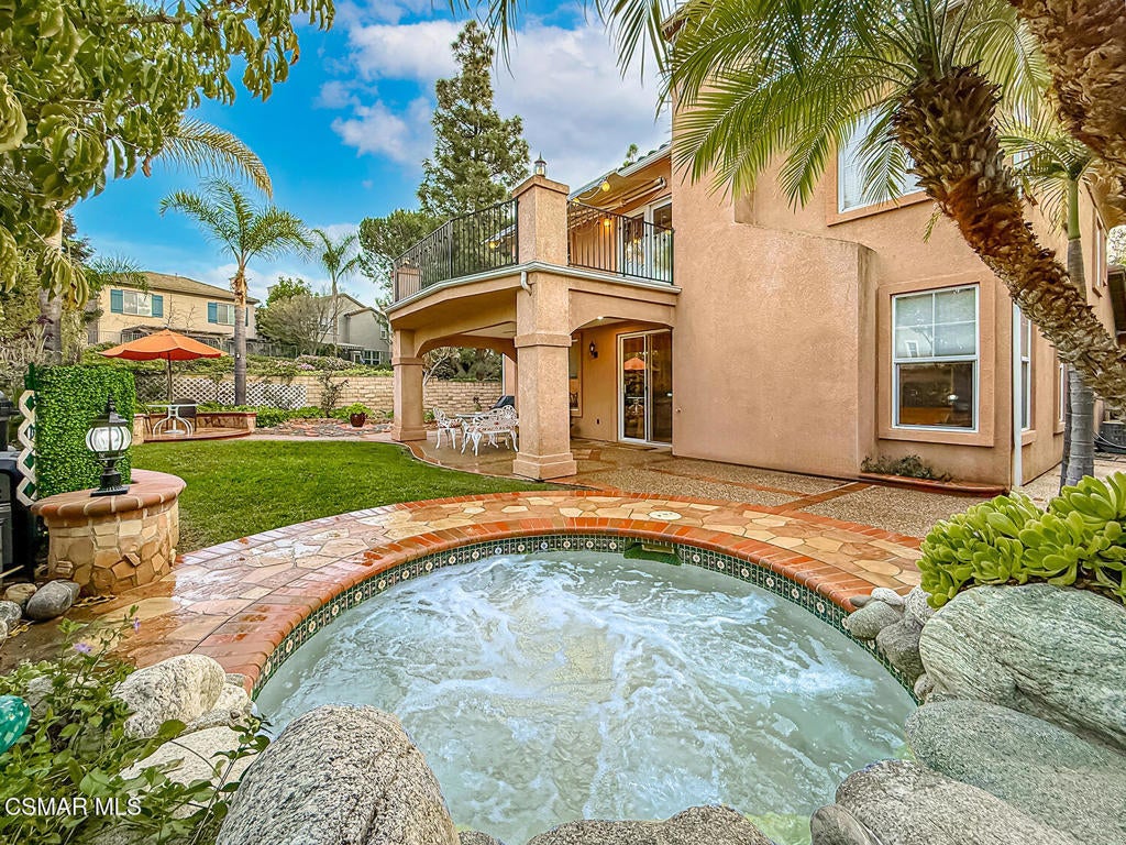 Located in the highly sought-after gated community of Long Canyon, this rarely available model sits on a quiet cul-de-sac adjacent to a scenic greenbelt and offers beautiful park and hillside views. Residents enjoy resort-style amenities including community pools, three recreation rooms, and a fully equipped gym, all included through the HOA.This spacious five-bedroom, four-and-a-half-bath residence features two bedrooms and two-and-a-half baths conveniently located on the main level, making it ideal for guests or multi-generational living.A grand entry welcomes you with a custom-designed ceiling detail and upgraded light fixture, leading into elegant living spaces that include a formal dining room and a chef's kitchen overlooking the expansive family room. The kitchen showcases custom tile flooring, a designer backsplash, under-sink water filtration, and high-quality finishes throughout. Travertine flooring enhances the warmth of the family room, while new carpet, upgraded semi-gloss paint, custom draperies, upgraded baseboards, and LED lighting throughout the home add a fresh and refined feel.Upstairs offers three spacious bedrooms, including a luxurious primary suite featuring gold fixtures, upgraded lighting, extra-large mirrors in the primary bathroom, and a double-sided mirrored closet door. A custom-designed window enhances one of the upstairs bedrooms, bringing in beautiful natural light. Additional interior upgrades include a tankless water heater with recirculating pump (only two years old), cabinets in the laundry room, an upgraded ceiling fan in the study, a downstairs bathroom with sliding door enclosure, and built-in cabinetry in the garage for added storage.The outdoor living spaces are equally impressive and designed for both relaxation and entertaining. The backyard features a custom low-maintenance landscape design, a private in-ground spa with waterfall fully controlled via internet, and brand-new spa equipment including filter, heater, controls, blower, and hedge covering. A round seating area provides the perfect gathering spot, while the concrete patio includes a ceiling fan, built-in LED lighting, and a freshly painted patio cover.One of the home's standout features is the custom-designed oversized balcony overlooking the park, complete with elegant pilasters, lighting, and electrical outlets. The balcony includes a Pella sliding door with built-in retractable blinds and was recently upgraded with beautiful wood-simulated porcelain tile flooring just one year ago.Additional exterior highlights include a block fence surrounding the property for privacy and a custom-designed side gate.This exceptional property combines thoughtful custom upgrades, functional living space, and a premier location within the highly desirable Long Canyon community.