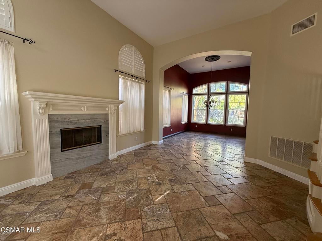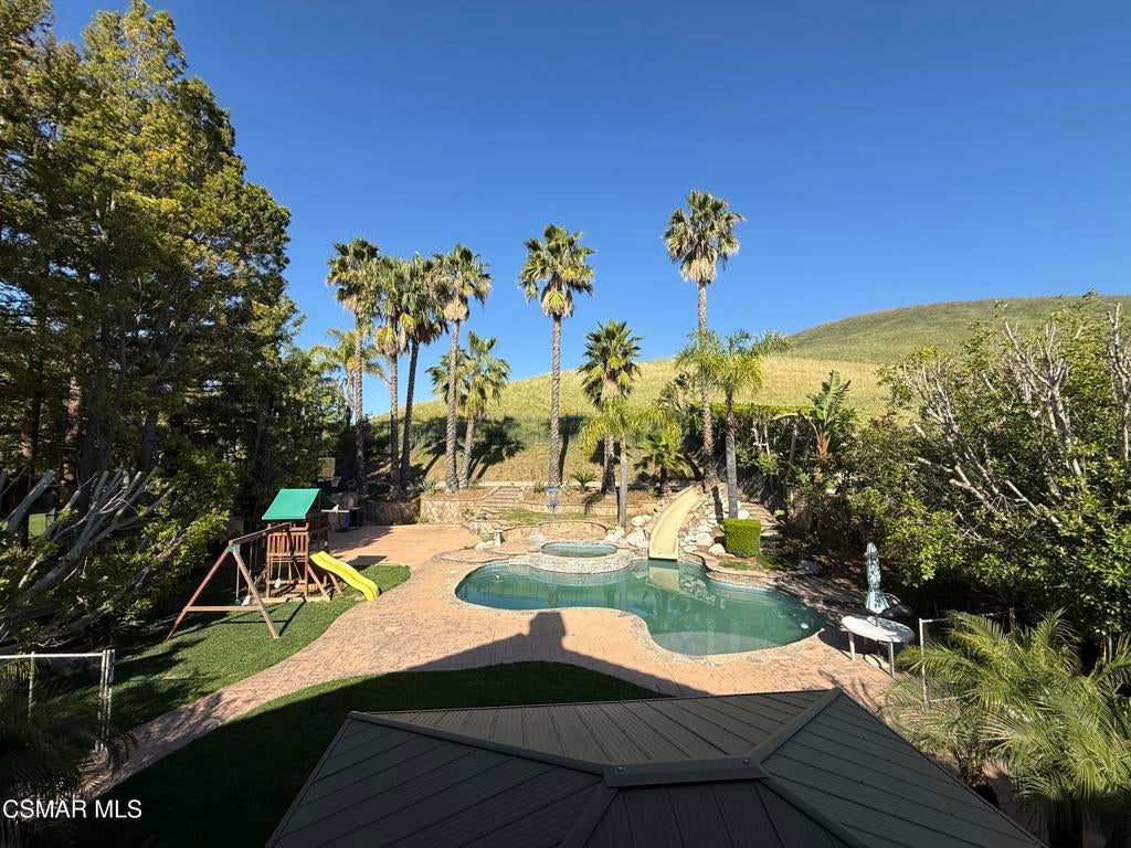 Located behind the gates of The Oaks at Wood Ranch, this spacious home offers 5 bedrooms, 4.5 bathrooms, and 4,103 sqft! A welcoming entry with high ceilings leads to the kitchen with granite countertops, travertine flooring, an oversized island, large pantry, and plenty of cabinet space. Just off the kitchen, the large family room features a modern fireplace. Downstairs, there's a flexible game room, office, or bedroom with its own private entrance and ensuite bathroom. Upstairs, the primary suite is like a retreat with a dual-sided fireplace, private balcony, and space for a sitting area or working from home. The primary bathroom includes an extra large shower, soaking tub, and two closets. The remaining bedrooms are set apart in their own wing, with one ensuite bedroom and two others sharing a dual-access bathroom. An upstairs laundry room adds extra convenience. The backyard is built for fun and entertaining, featuring a built-in BBQ, covered pergola, play set, amazing pool with a water slide, spa, basketball area, and plenty of room to enjoy the outdoors. The home also offers a long private driveway, a single-car garage, and a separate two-car garage. Gardening and pool services included in rent. Well behaved pet will be considered with increased deposit. No smoking please. Available now.