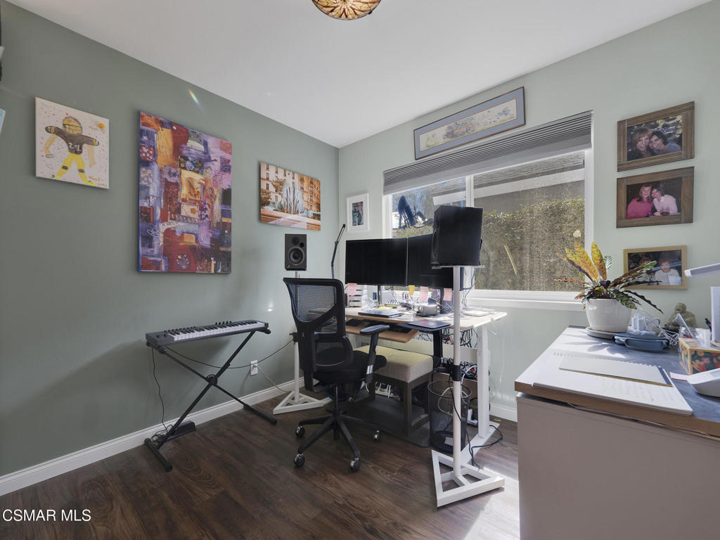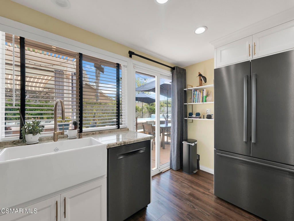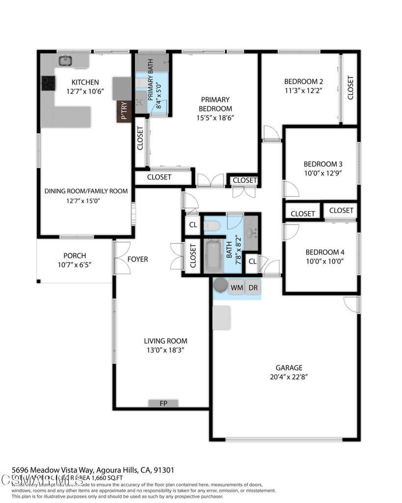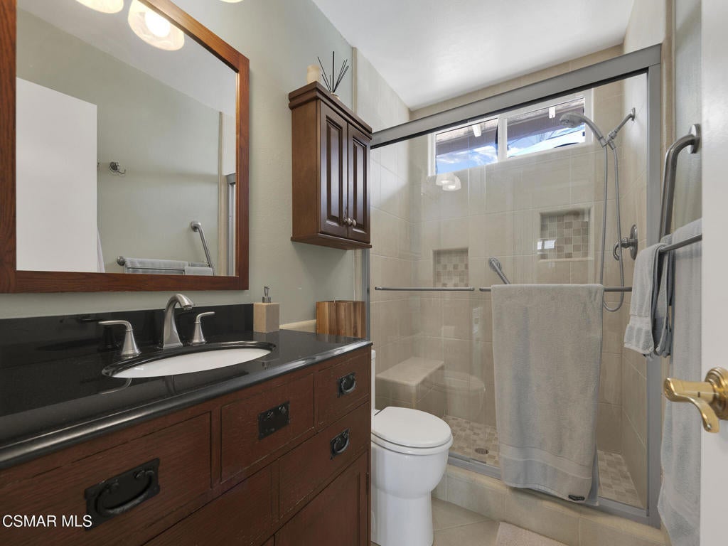 Fall in love with this Gorgeous 4 Bedroom, 2 Bath single story home! It is located on a cul de sac in the highly desirable Hillrise Neighborhood of Agoura Hills. A charming courtyard entry with double doors welcomes you to this special home! The front yard features a rock river bed, drought tolerant plants, a drip system & a decorative wooden fence. With an open, light-filled floor plan, this wonderful home has thoughtfully designed living spaces for entertaining and relaxation. The elegant living room features a vaulted ceiling and a fireplace with custom tile & a remote-controlled gas insert. The beautifully remodeled kitchen features granite counters, custom cabinets, upgraded stainless steel Bosch appliances, a custom backsplash, a farm sink, an upgraded faucet, and a breakfast bar. The spacious dining area & family room adjoin the kitchen. The primary bedroom has two spacious closets with mirrored doors and sliding doors to to a private backyard oasis with a large patio. The remodeled primary bath has an upgraded vanity with granite counter and a double shower with custom tile. Three other spacious bedrooms provide flexibility for family, guests, or a home office. The updated guest bathroom features a soaking tub with a custom tile surround & an upgraded whisper quiet exhaust fan. Extensive upgrades include Luxury Vinyl flooring throughout, smooth ceilings, recessed lighting, updated electrical outlets throughout, an additional electric outlet installed in the utility closet, and audiovisual wiring for satellite TV & Ethernet throughout the house (indoor & outdoor). The air conditioner, furnace, hot water heater, windows and roof have been replaced. The two car direct access garage is drywalled and features an upgraded roll-up door, an automatic door opener, a recently replaced side door, added electrical lights & outlets, and a car charger. The inviting backyard is designed for low-maintenance living and effortless entertaining, with an Endless Pool Swim Spa, a custom-colored concrete patio, a pergola with a spa, drought-tolerant landscaping, a drip system installed, and added rain gutters connected to the upgraded yard drainage system. The side yard has Pear, Loquat, Mango, Lemon, Tangerine, Nectarine and White Peach trees. Solar panels with three batteries for home storage and whole house electrical backup were installed for energy savings, and continuous electrical service during electric blackouts. Enjoy Awesome Views of Lady Face Mountain from the backyard! Located in the Award Winning Las Virgenes School District. There is easy access to parks, restaurants, shopping, Malibu beaches and the freeway! Don't miss out on this one-of-a-kind opportunity! This home offers everything you've been looking for and more. It is an Incredible Value, so see it today!