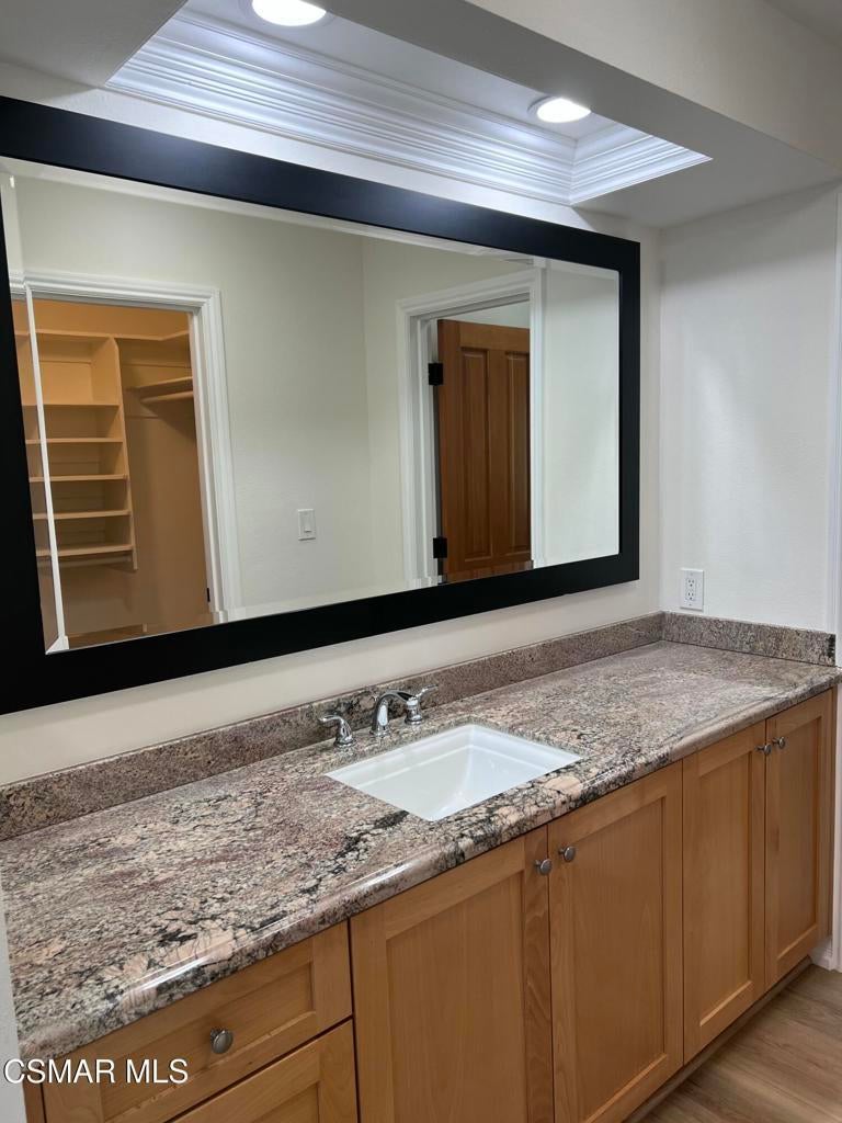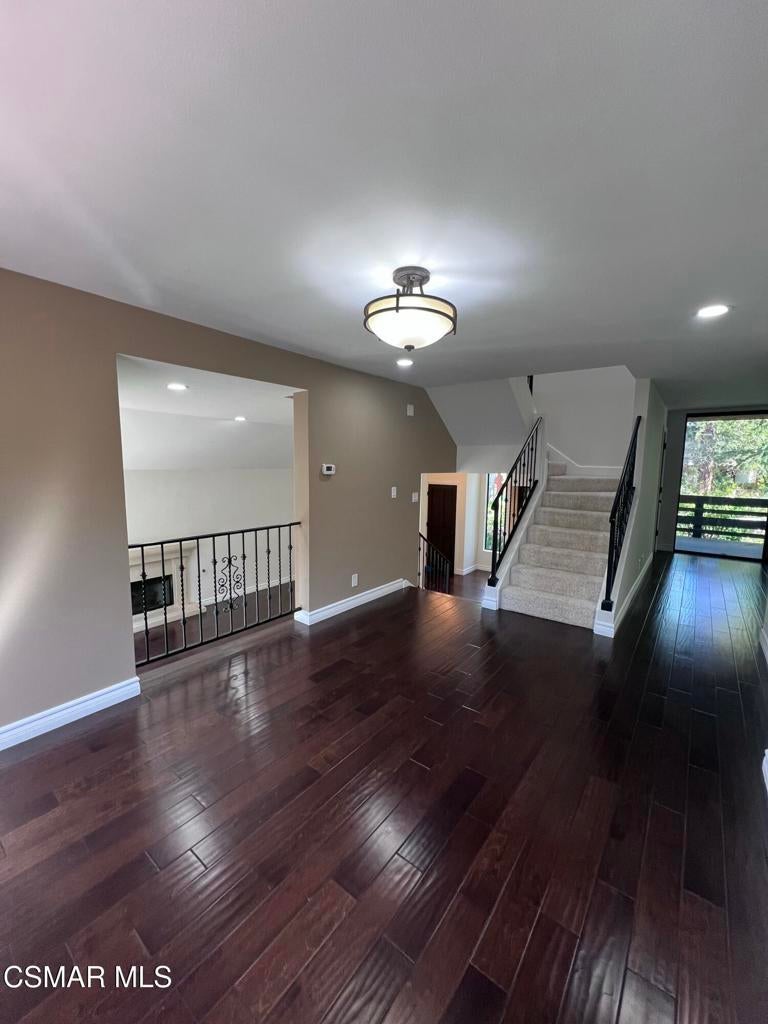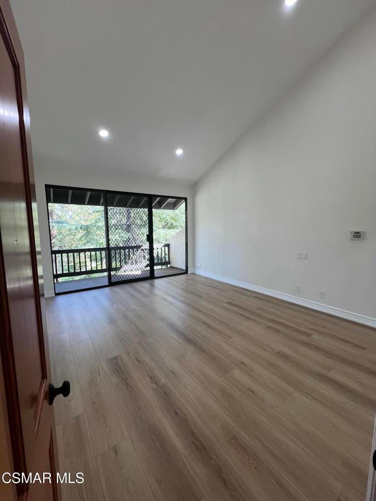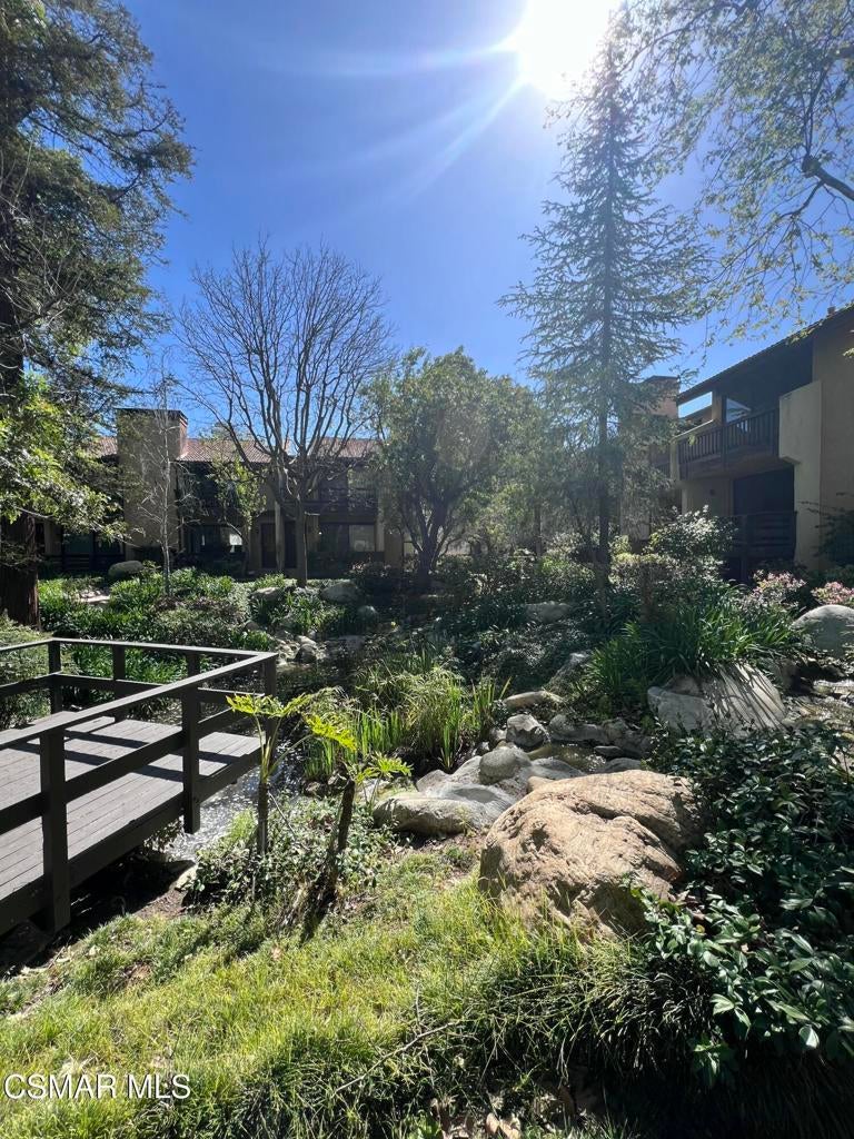 Nestled in the heart of desirable Woodland Hills, this pristinely maintained 2,200-square-foot townhome offers a refined living experience filled with natural light, thoughtful updates, and an enviable community setting. Boasting a coveted corner-unit position with only one shared wall, a desirable interior location, and the largest floor plan available in the community, this home stands out from the moment you arrive. Upon arrival, you will be greeted by the resort-like, meticulously manicured HOA grounds and a sense of tranquility that sets the tone for what awaits inside. Step through the door to discover rich engineered hardwood floors on the main level and quality vinyl plank flooring upstairs, complemented by large windows on every level that bathe the interiors in abundant natural sunlight and frame picturesque views of the lush community landscaping. The updated kitchen is a true highlight, showcasing elegant granite countertops and beautifully appointed dark cabinetry that create a warm and inviting space for preparing meals and gathering with loved ones. The primary suite serves as a serene retreat, complete with generous walk-in closets providing ample storage and captivating views overlooking a tranquil fountain-fed pond surrounded by ducks and verdant greenery -- a peaceful scene to wake up to each morning. The living room shares this same enchanting outlook, allowing you to enjoy the scenery while cooking or sipping your morning coffee. A versatile bonus room on the lower level presents endless possibilities -- ideal for a home office, private gym, entertainment space, or additional bedroom to suit your lifestyle. Recessed lighting with a convenient night mode is featured throughout the home, enhancing both ambiance and modern functionality. Practicalities are readily addressed with an attached two-car garage offering direct interior access and an included washer and dryer for everyday convenience. The resort-like community amenities elevate the lifestyle with three sparkling pools and spas, a tennis court, a recreation room available for private use, and the added peace of mind provided by security patrol. Exceptional added value includes complimentary premium cable TV and high-speed internet/wifi through Spectrum, along with water and sewer -- all included in the HOA. Just minutes from premier shopping, dining, and business centers, this Woodland Hills townhome delivers a seamless blend of comfort, convenience, and community living. Truly a residence for the curated Southern California lifestyle!