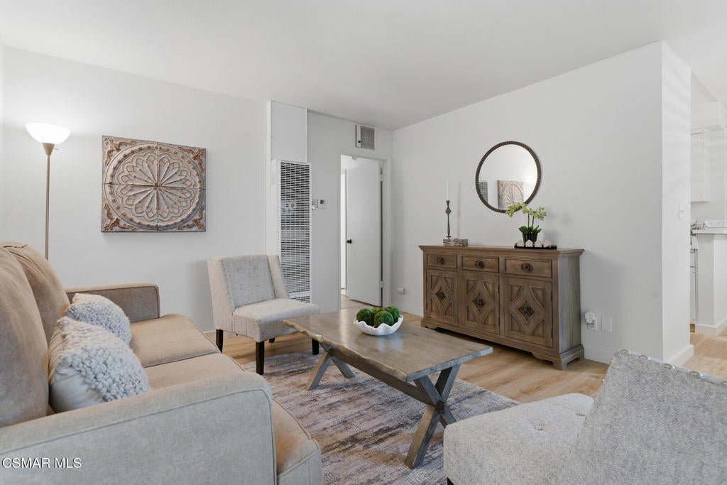 Step into modern comfort at its best--this bright, airy 2-bed, 1-bath home in Fountain Park's gated community feels brand-new. Fresh wood-look flooring runs wall-to-wall, new lighting, window treatments, and paint keep everything crisp. Kitchen: New gas range, sleek faucet, tons of cabinets. Bath's updated too--clean, spa-like. Best part: your own huge covered patio, right off the living room. First-floor, single-level living--no stairs from your dedicated carport to the door. HOA covers taxes, insurance, trash, water, sewer, pest control, and maintenance--zero surprises. Pools, sport court, putting green, BBQ, playground--all yours. Walk to The Village, Topanga Plaza, Warner Park, concerts in the park. This one's going fast.