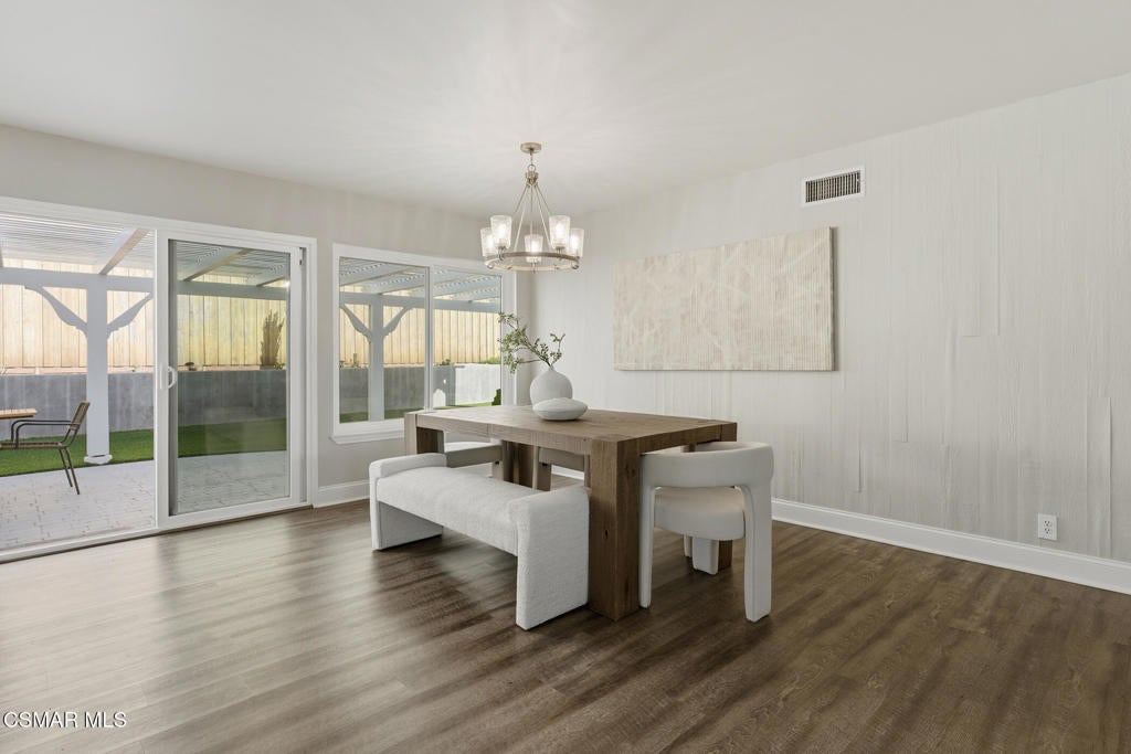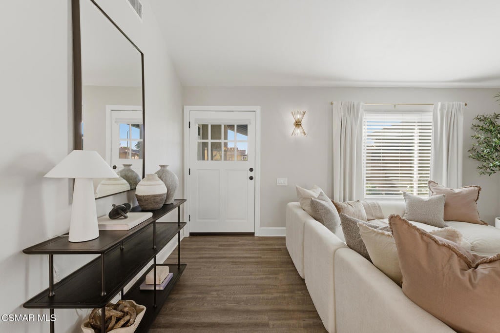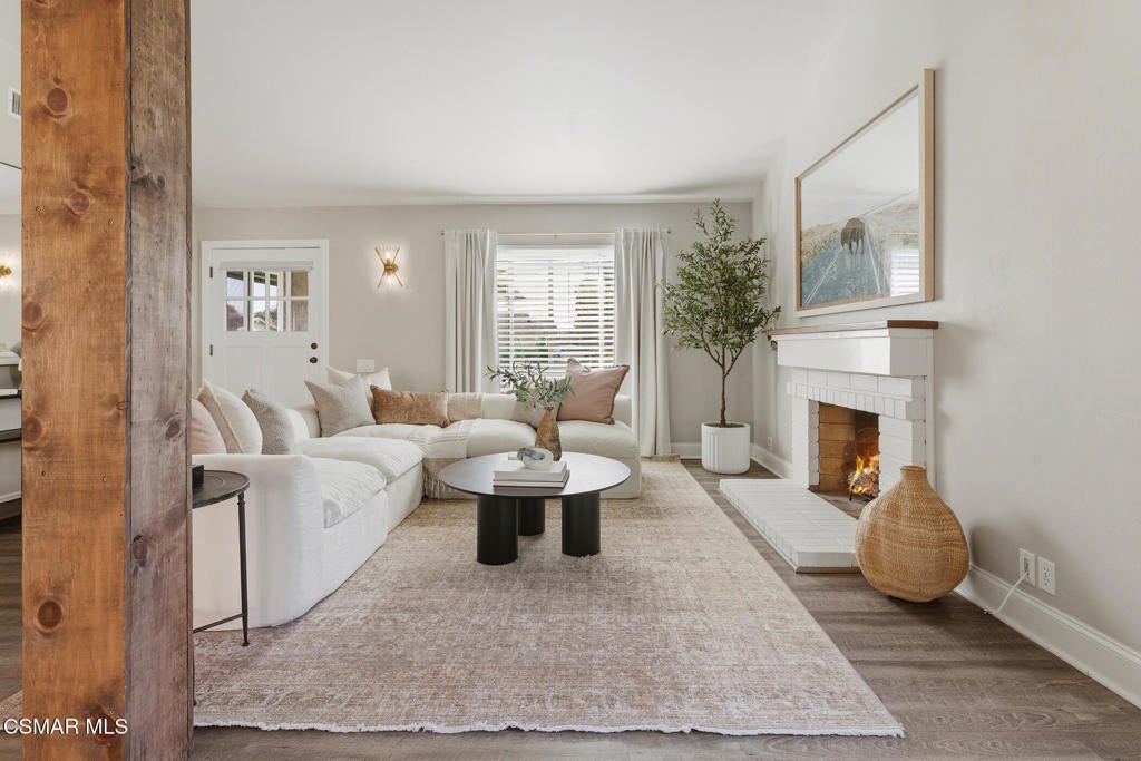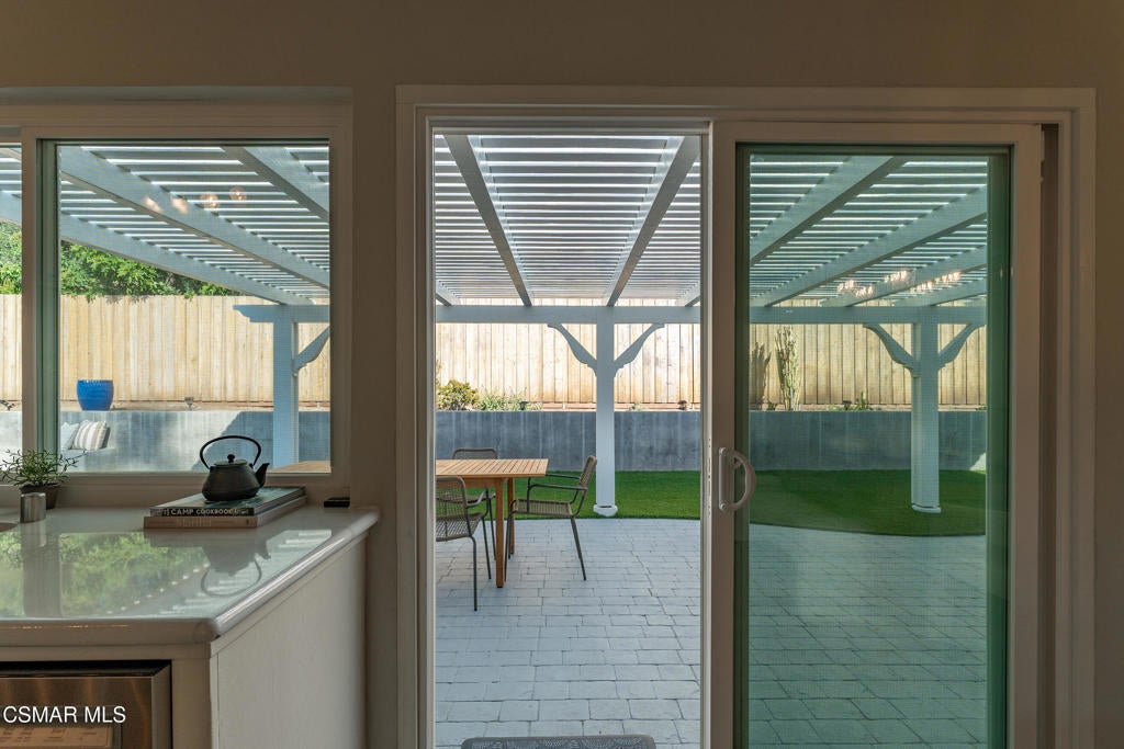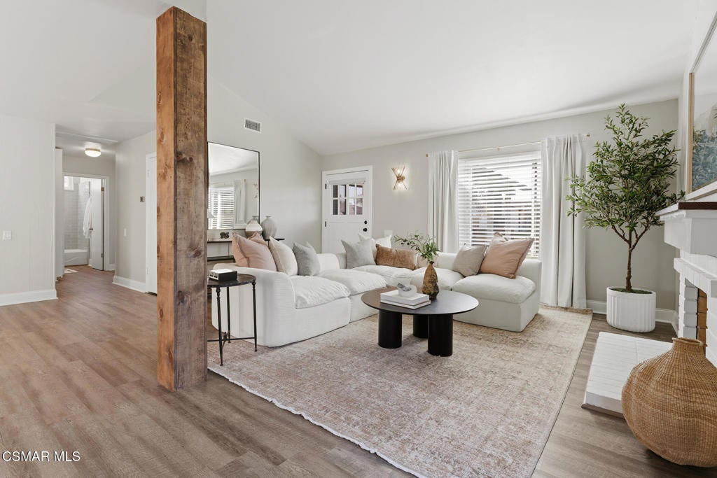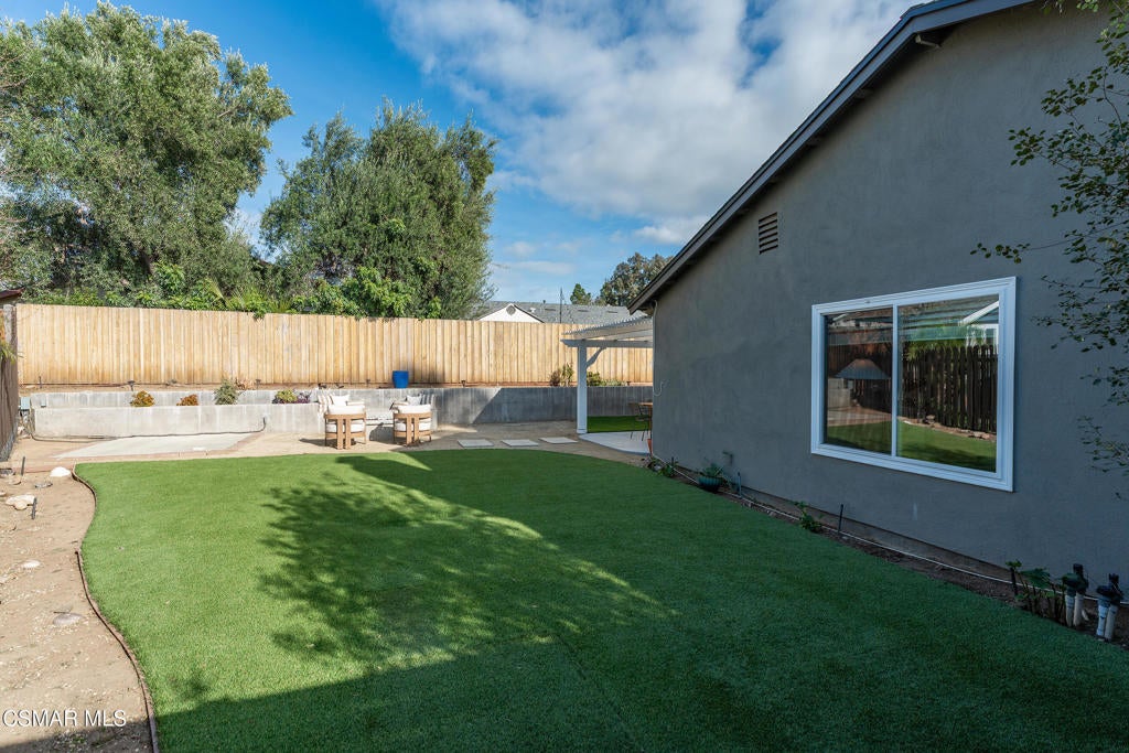 Welcome to this beautifully updated and move-in ready home located at 1860 Wychoff Ave in Simi Valley. Featuring 3 bedrooms, 2 bathrooms, and 1,350 sq ft, of living space, this home offers stylish upgrades inside and out along with a spacious and private outdoor setting.A gated front entry opens to a charming private grassy courtyard that leads to an inviting front door. Inside, soaring ceilings and abundant natural light create an open and welcoming atmosphere. The picturesque living room is centered around a cozy fireplace, while a natural wood-wrapped beam complements the gorgeous flooring and adds warmth and modern character to the space.The oversized dining area is filled with natural light and features a chic wood-paneled accent wall, creating a stylish setting for everyday living and entertaining. The modern kitchen is both functional and elegant, offering stainless steel appliances and beautiful views of the backyard and patio.The primary suite features high ceilings, ample closet space, and a beautifully updated private bathroom. Down the hallway you'll find a custom linen cabinet, two additional bedrooms, and a tastefully remodeled bathroom highlighted by custom tile work and elegant brushed-gold finishes.Step outside to an entertainer's paradise. The backyard showcases a huge covered patio perfect for summer gatherings. The pie-shaped lot is a major bonus, creating an expansive backyard with plenty of room to run, play, or customize. Upgraded artificial turf adds beauty and low maintenance, while the yard still offers ample space to add a pool. Electricity has already been run for a future jacuzzi, outdoor kitchen, or entertainment area. Thoughtful landscaping with decomposed granite and smooth stucco accents completes the modern outdoor aesthetic.This home offers the perfect blend of style, comfort, and outdoor living in a fantastic Simi Valley location.
