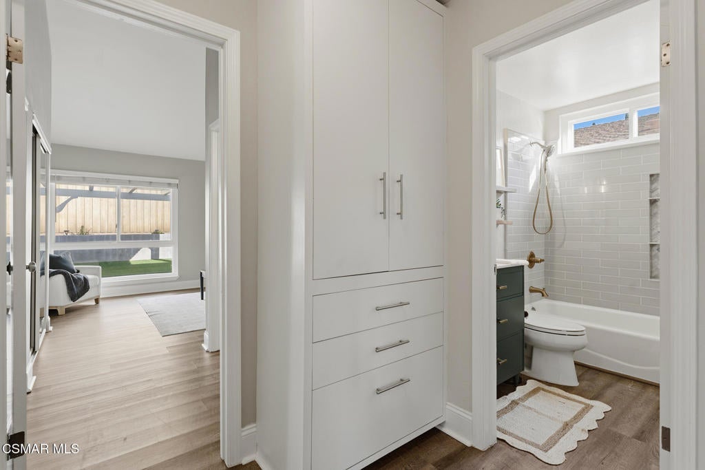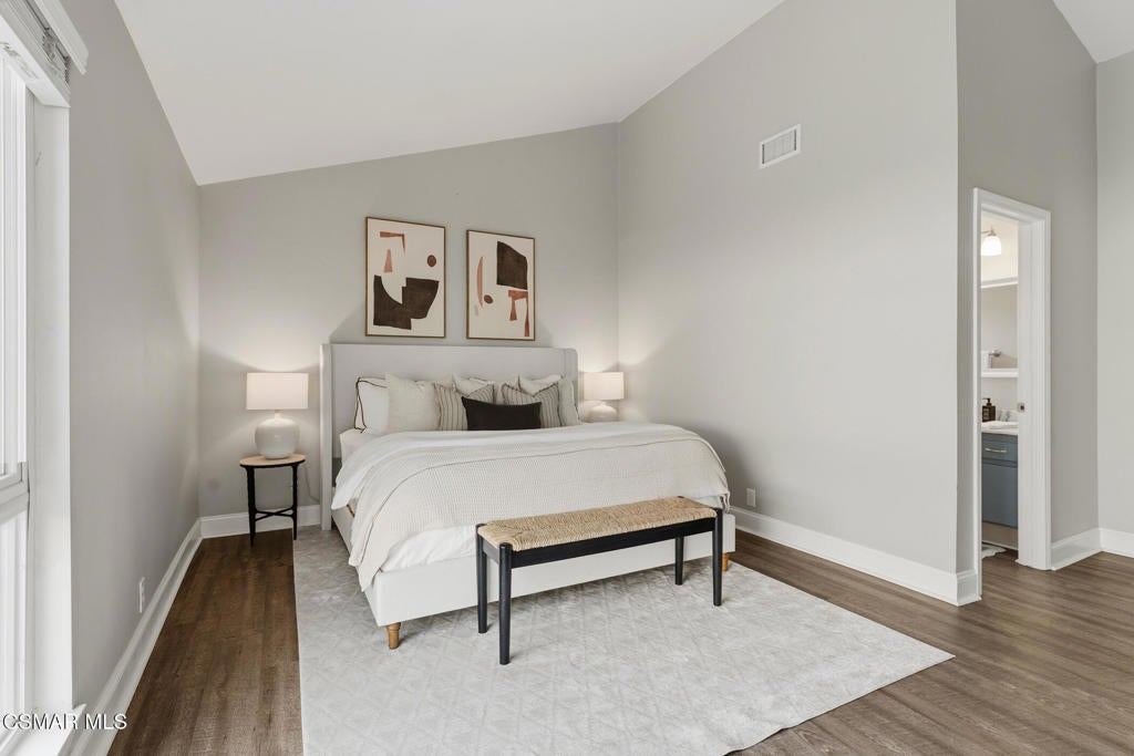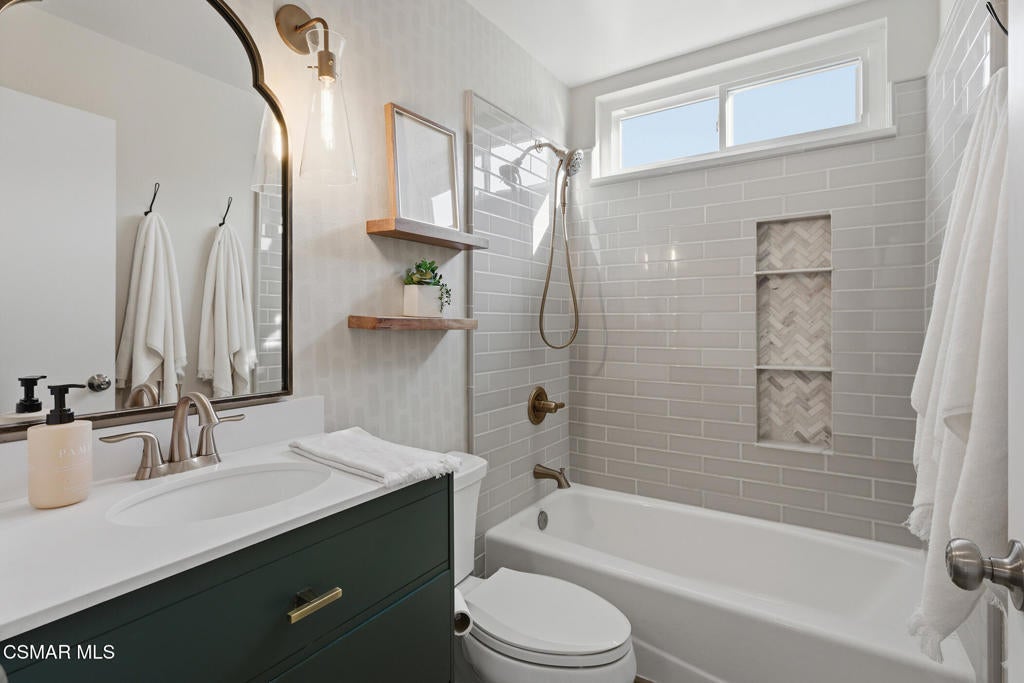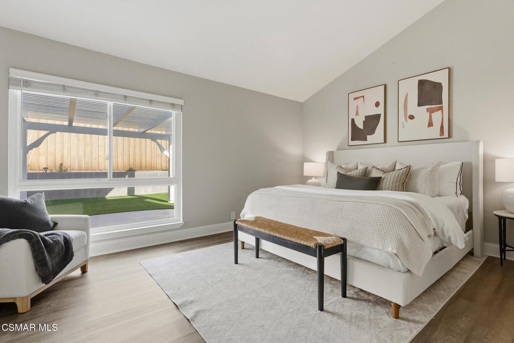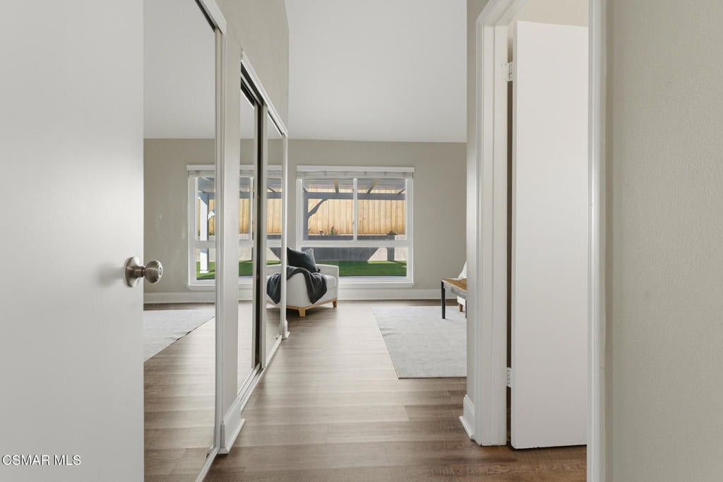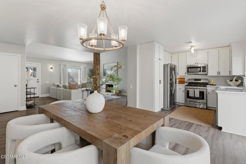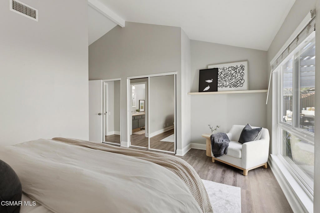 Welcome to this beautifully updated and move-in ready home located at 1860 Wychoff Ave in Simi Valley. Featuring 3 bedrooms, 2 bathrooms, and 1,350 sq ft, of living space, this home offers stylish upgrades inside and out along with a spacious and private outdoor setting.A gated front entry opens to a charming private grassy courtyard that leads to an inviting front door. Inside, soaring ceilings and abundant natural light create an open and welcoming atmosphere. The picturesque living room is centered around a cozy fireplace, while a natural wood-wrapped beam complements the gorgeous flooring and adds warmth and modern character to the space.The oversized dining area is filled with natural light and features a chic wood-paneled accent wall, creating a stylish setting for everyday living and entertaining. The modern kitchen is both functional and elegant, offering stainless steel appliances and beautiful views of the backyard and patio.The primary suite features high ceilings, ample closet space, and a beautifully updated private bathroom. Down the hallway you'll find a custom linen cabinet, two additional bedrooms, and a tastefully remodeled bathroom highlighted by custom tile work and elegant brushed-gold finishes.Step outside to an entertainer's paradise. The backyard showcases a huge covered patio perfect for summer gatherings. The pie-shaped lot is a major bonus, creating an expansive backyard with plenty of room to run, play, or customize. Upgraded artificial turf adds beauty and low maintenance, while the yard still offers ample space to add a pool. Electricity has already been run for a future jacuzzi, outdoor kitchen, or entertainment area. Thoughtful landscaping with decomposed granite and smooth stucco accents completes the modern outdoor aesthetic.This home offers the perfect blend of style, comfort, and outdoor living in a fantastic Simi Valley location.