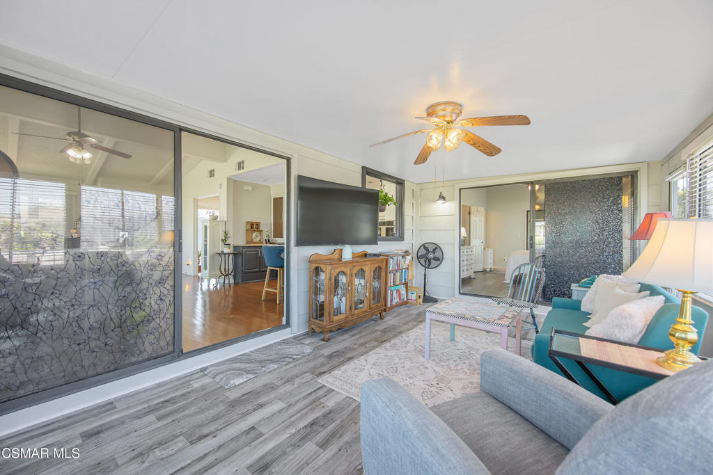 Peaceful Retreat Surrounded by Nature. This beautiful residence offers a rare blend of privacy, scenic views, and exceptional functionality. The main living areas are designed to capture natural light and outdoor beauty. The contemporary kitchen features Corian and granite countertops, stainless steel appliances and ample cabinetry. Just off the kitchen, the California room style family room provides the perfect place to relax while taking in calming pond views. Soak up the scenery on the outdoor patio just off the living room. The spacious primary bedroom includes vaulted ceiling, generous closet and spa style bathroom. The formal dining room was converted from the secondary bedroom. The updated secondary bathroom has dual shower heads and stone shower floor. A rare three-car tandem garage offers workshop potential, or hobby space, along with an attached flex space ideal for guest room / den or office. Other outstanding features are dual-paned windows and hard surface flooring throughout, central A/C and abundant storage. Residents in this 55+ community have low HOA fees which includes water, sewer, trash, a clubhouse, indoor lap pool and spa, fitness center, and club house. Enjoy a lifestyle with peace and tranquility.
