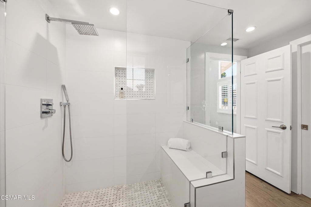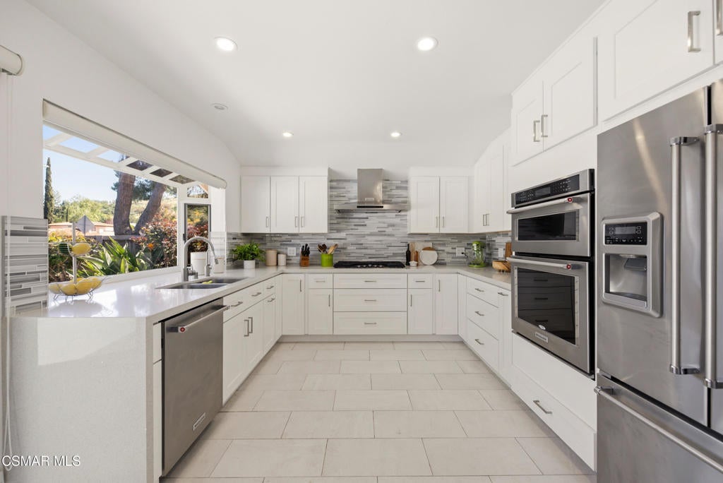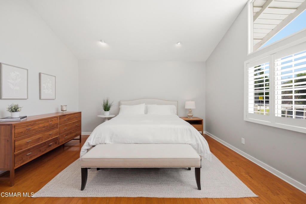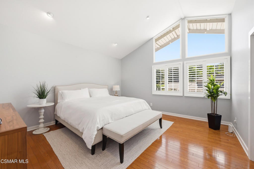 Welcome to this beautifully updated 4-bedroom, 3-bathroom home in the highly desirable Foxmoor community of Westlake Village, where comfort, style, and location come together. Just minutes from top-rated Westlake Elementary School, this move-in ready home offers the ideal blend of space, upgrades, and a functional family-friendly layout. A grand entry with vaulted ceilings opens to light-filled living and dining spaces, while the updated kitchen with dual-pane windows flows seamlessly to a private patio--perfect for everyday living and effortless entertaining. The spacious family room features hardwood floors, a wet bar, and dual sliding doors leading to a private backyard with a sparkling pool and spa, creating the ultimate indoor-outdoor lifestyle. With a downstairs bedroom and full bath, flexible living options are built in--ideal for guests, a home office, or multi-generational needs. Upstairs offers three additional bedrooms with custom closets and hardwood flooring, including a generous primary suite designed for comfort and retreat. The upgraded 3-car garage adds exceptional functionality with built-in storage, workspace, TV hookups, and a durable epoxy-polyurethane floor. Enjoy recent upgrades including a newer roof and HVAC system. Ideally located close to Foxmoor's sought-after amenities--community pool, clubhouse, playground, greenbelt walking paths, as well as the elementary school. Homes like this in Foxmoor don't come up often--don't miss your opportunity to own in one of Westlake Village's most coveted neighborhoods.
