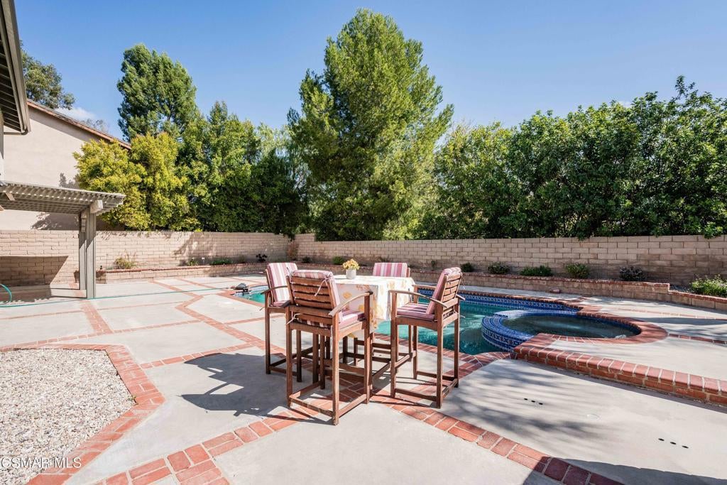 Light and bright home with some mountain views. Large living room and Dining area. Dining area has French doors that open onto one of the two patio areas. Gourmet kitchen with granite, movable Island, lots of storage, counter space, and breakfast bar. Miele stove and oven. Kitchen overlooking family room with bay windows, fireplace, wet bar and beveled glass sliders to an additional side patio area. Downstairs bedroom is currently used as an office offering versatility for remote work or guest use. Large Primary suite has two closets. Secondary bedrooms are good size. Beautiful wood like flooring throughout. Smooth ceilings, Plantation shutters. Most windows are dual pane. Outside, enjoy a sparkling pool and spa framed by mountain scenery. Perfect for relaxing or entertaining. Freshly painted trim and low maintenance landscape. Three car garage. The third car garage is currently a workstation. Home is in a Cul de sac. The park is just steps away. Close to shopping, restaurants, tennis, pickleball and hiking trails.